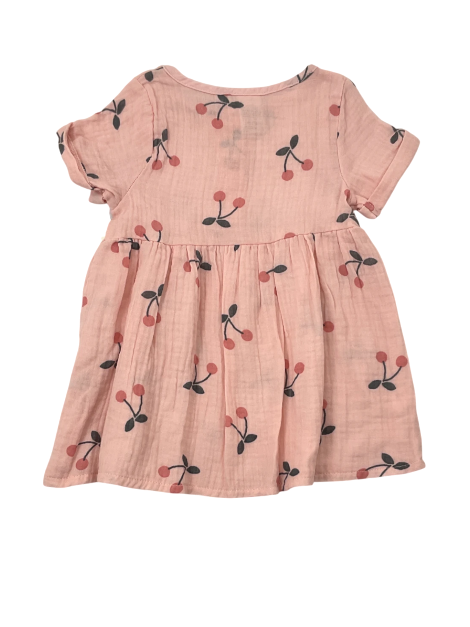 This is a modern short-sleeve gauze dress for toddler girls made by Gerber.