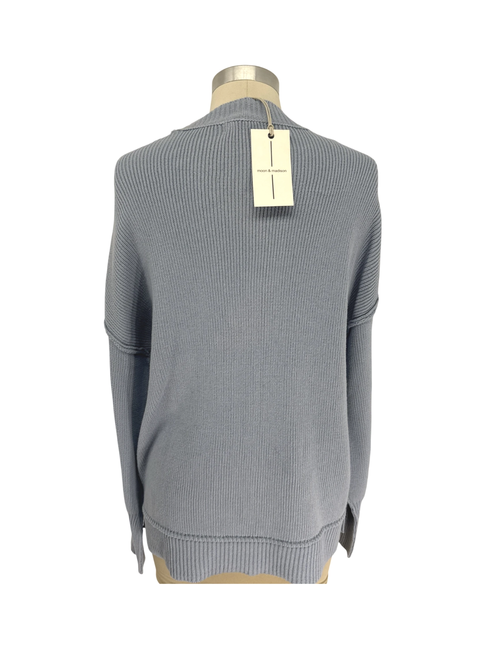 This pre-owned Moon & Madison sweater is a stylish and comfortable addition to any wardrobe. This blue, ribbed-knit pullover sweater offers a classic, casual design, perfect for layering in various seasons. The sweater is crafted from a soft cotton and acrylic blend, providing both comfort and durability. The versatile design makes it suitable for both casual and semi-formal occasions.