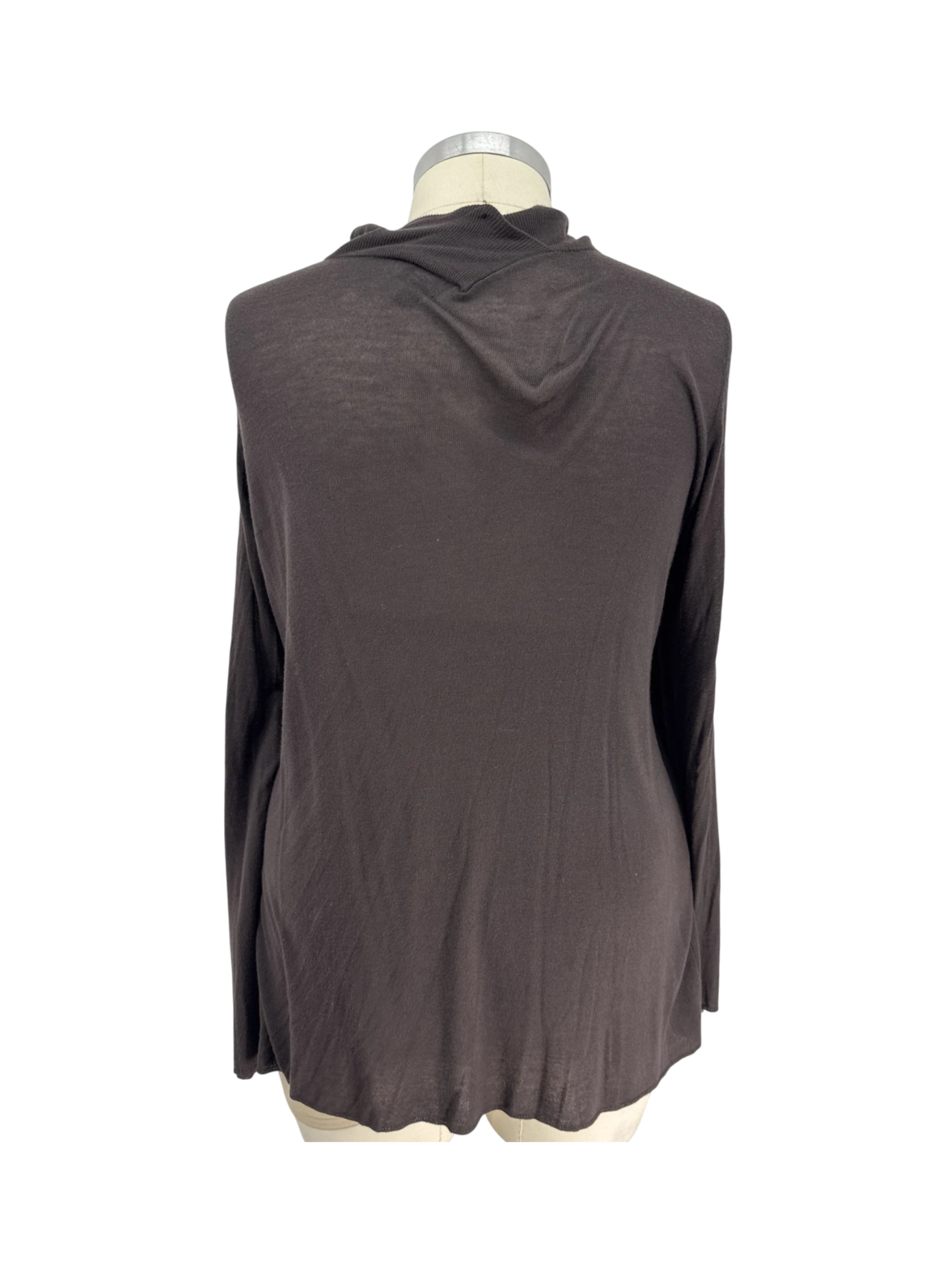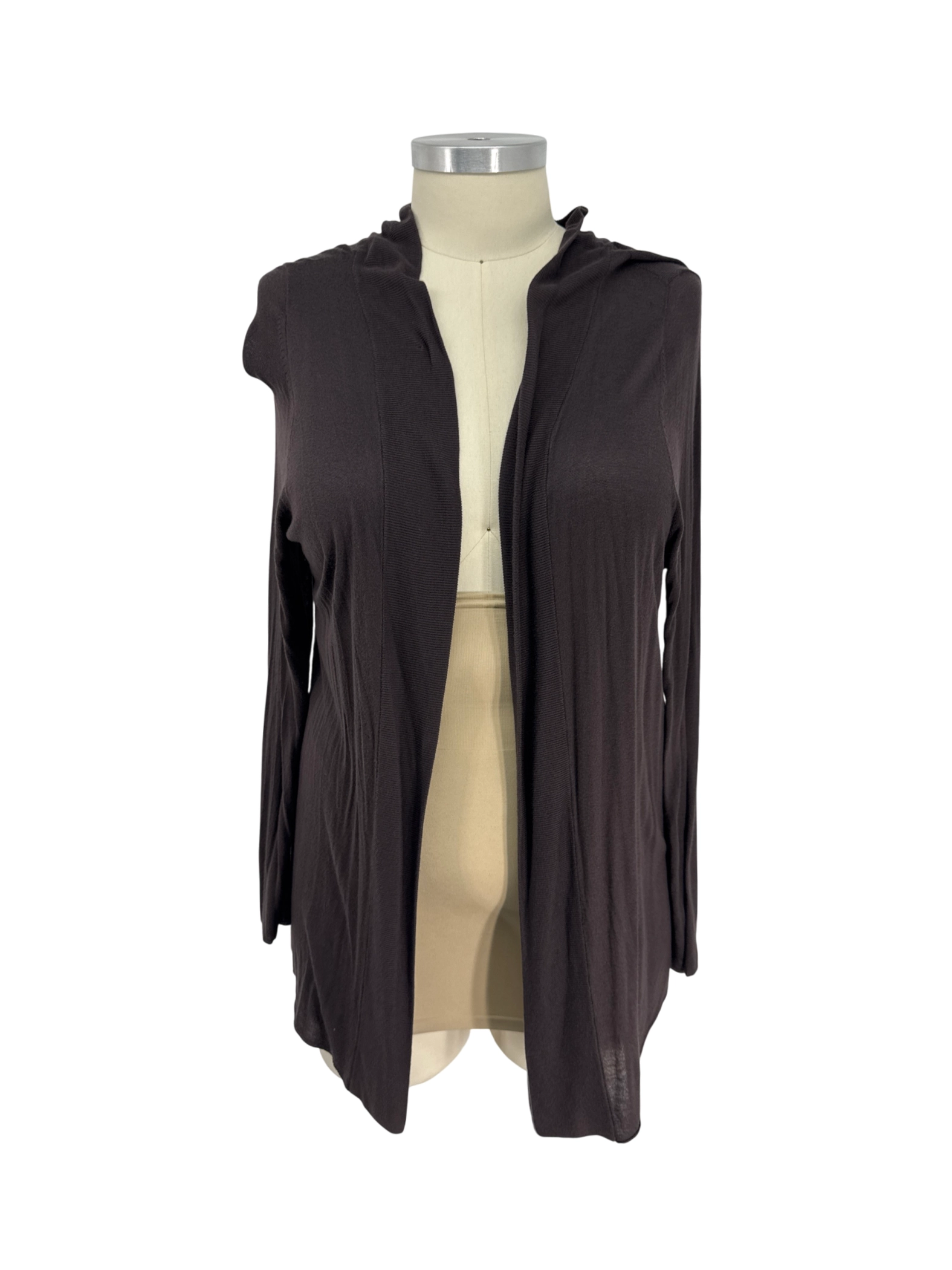 Embrace effortless style with this pre-owned Mossimo cardigan. Crafted from soft rayon, this open-front cardigan offers a comfortable and flattering fit. The rich brown color makes it a versatile piece, perfect for layering during the fall season. With its long sleeves and relaxed silhouette, it provides both warmth and a touch of casual elegance. A stylish choice for everyday wear, this cardigan is a must-have addition to any wardrobe.