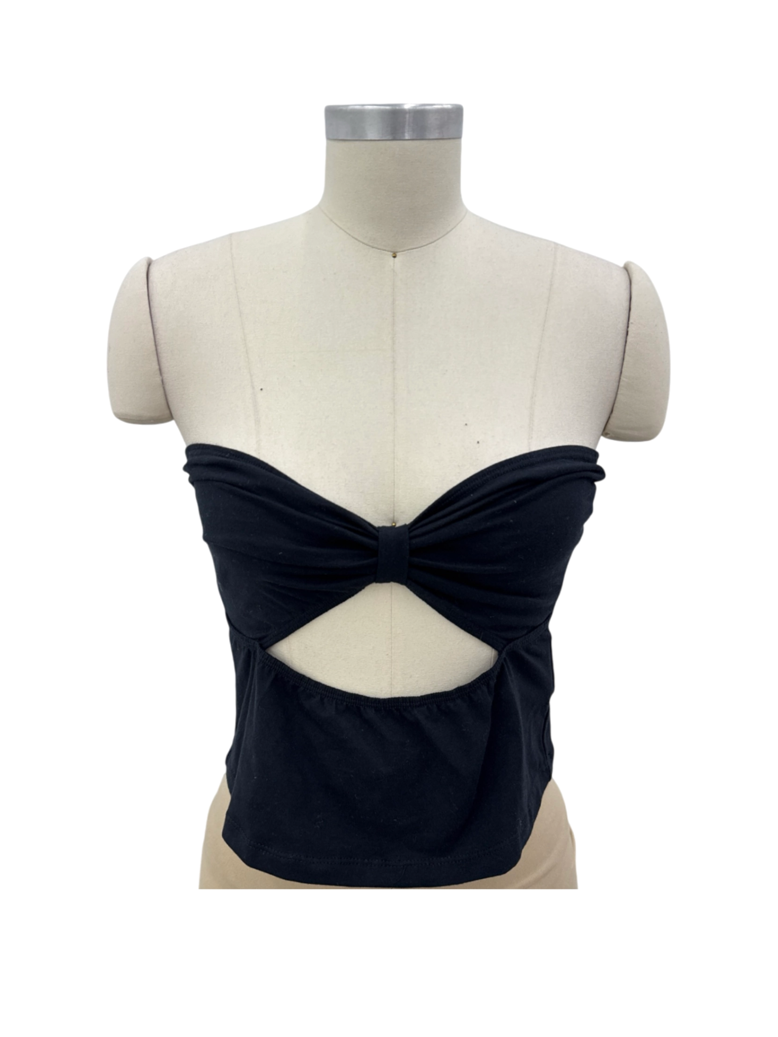 This chic and edgy Motel cutout top is the perfect addition to your summer wardrobe. Crafted from a comfortable cotton and spandex blend, this strapless top features a flattering cutout detail. The classic black color makes it easy to pair with any outfit, and its versatile design allows it to be dressed up or down. Whether you're hitting the beach or going out for a night on the town, this top is sure to turn heads. Excellent condition, pre-owned.