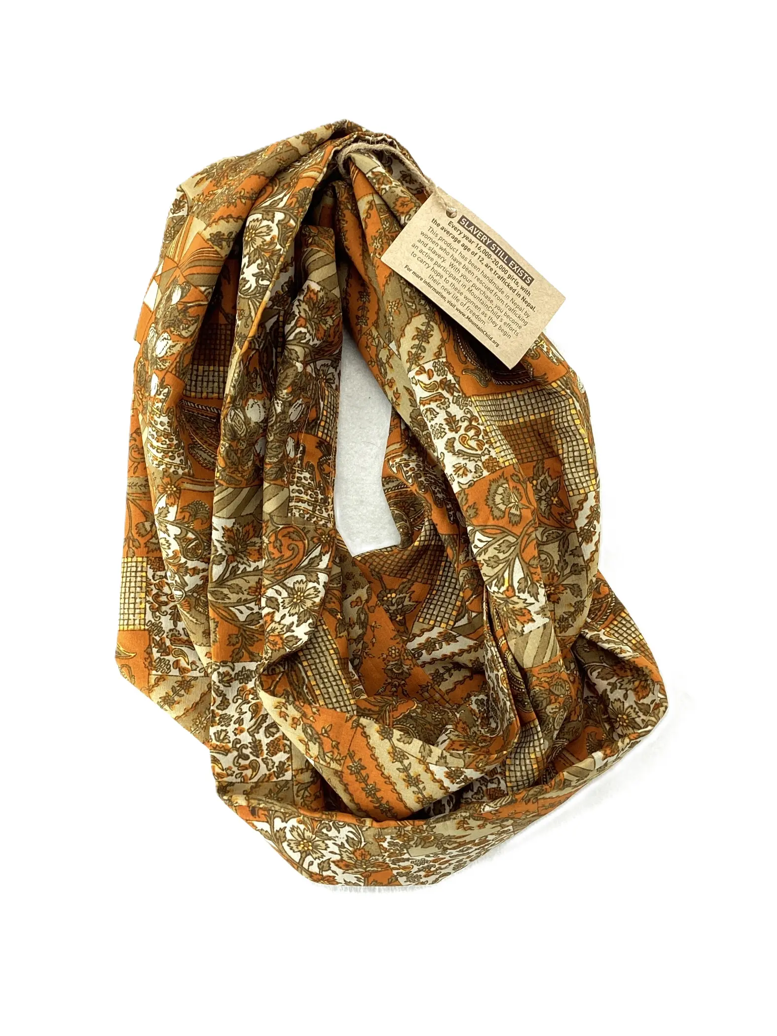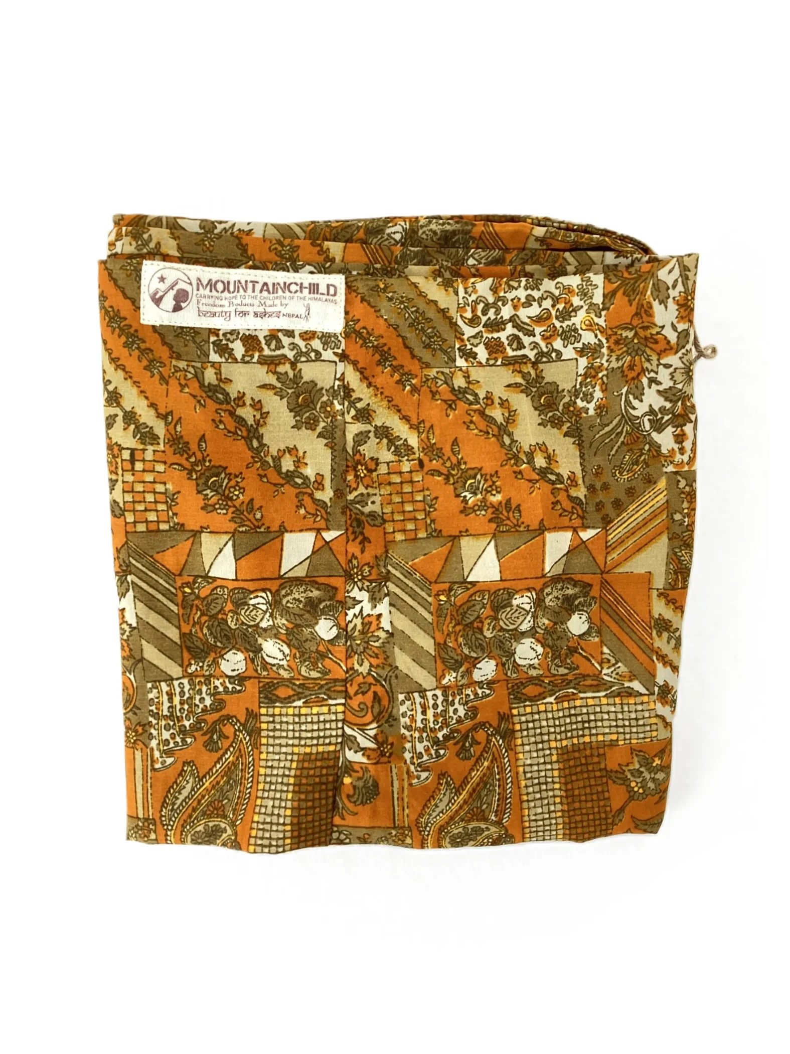This scarf is orange and brown and was made by Beauty for Ashes Nepal.