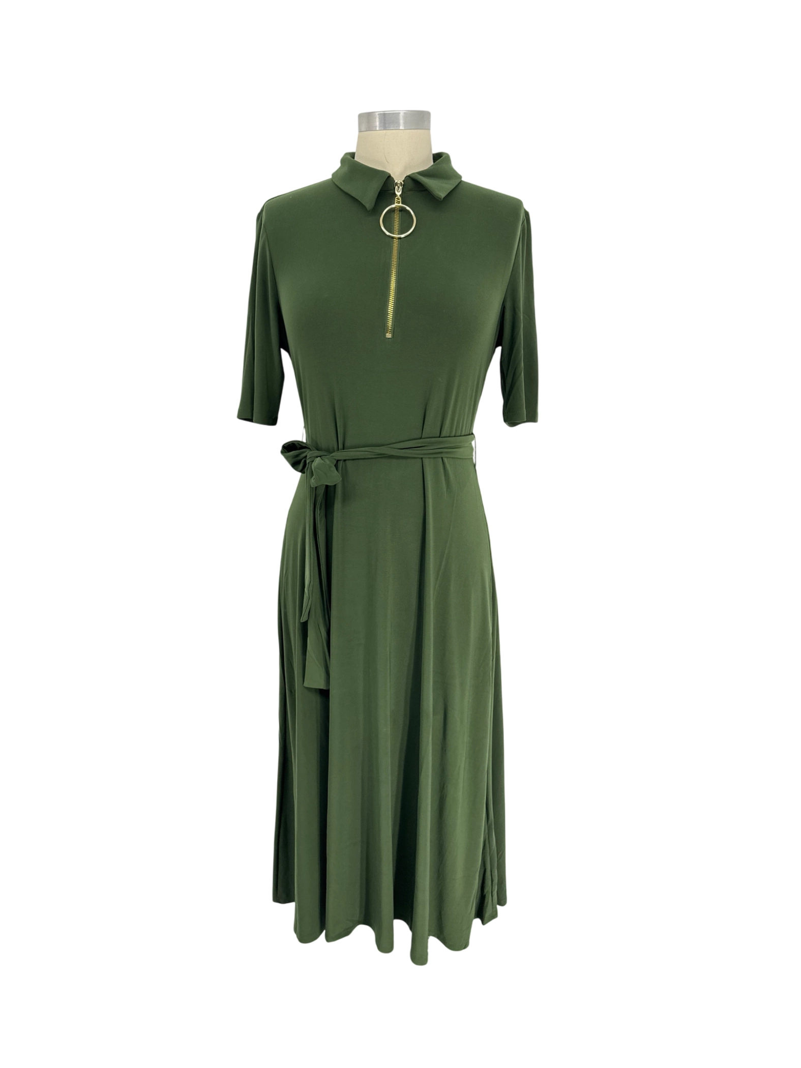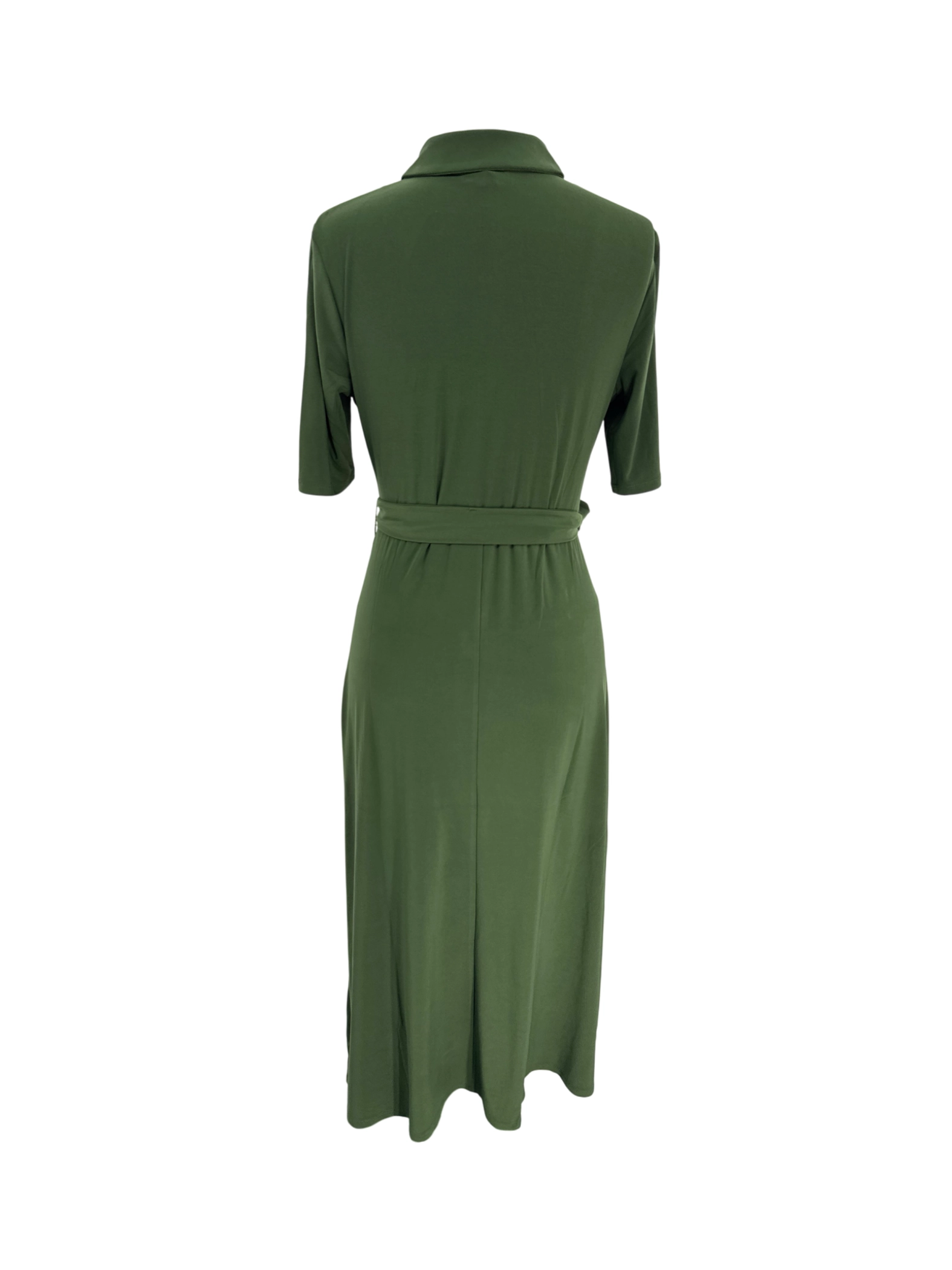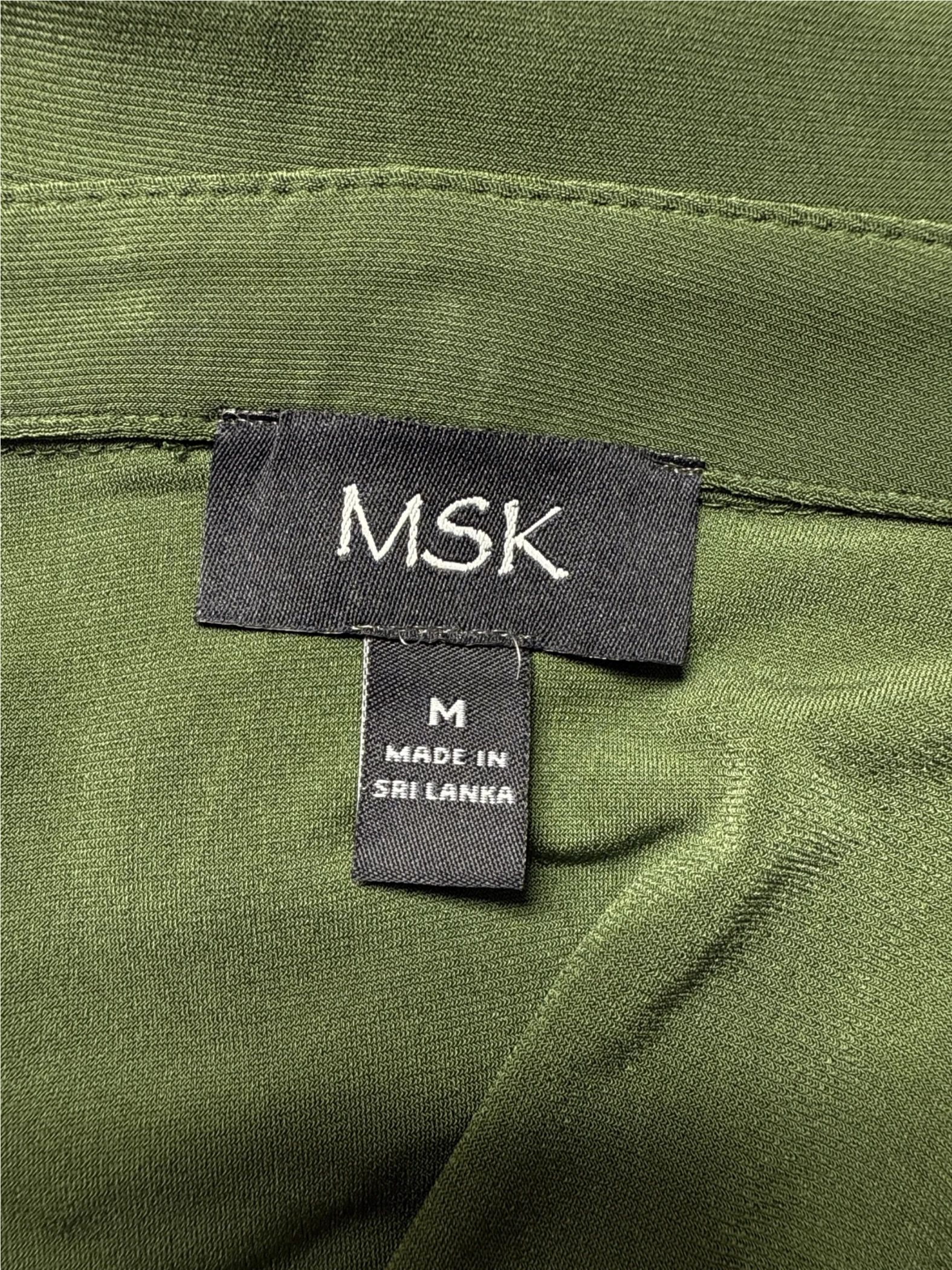 This pre-owned MSK dress is a stylish choice for any occasion. Featuring a flattering A-line silhouette and a comfortable midi length, it's perfect for warm weather or transitioning into fall. The dress showcases a classic green hue, a round neckline and a collar. Made from a blend of polyester and spandex, offering a comfortable, flattering fit. This dress is a timeless addition to your wardrobe, combining elegance and ease.