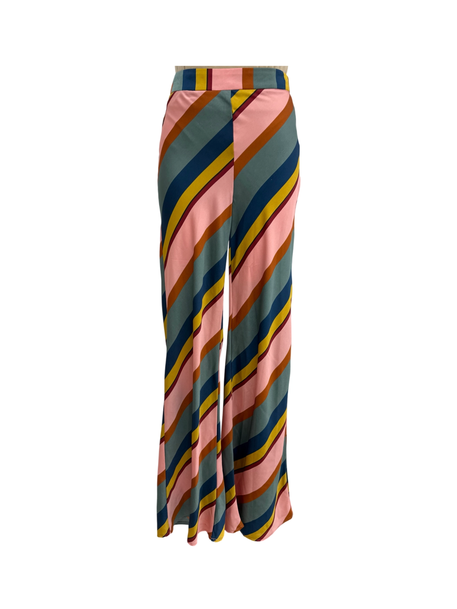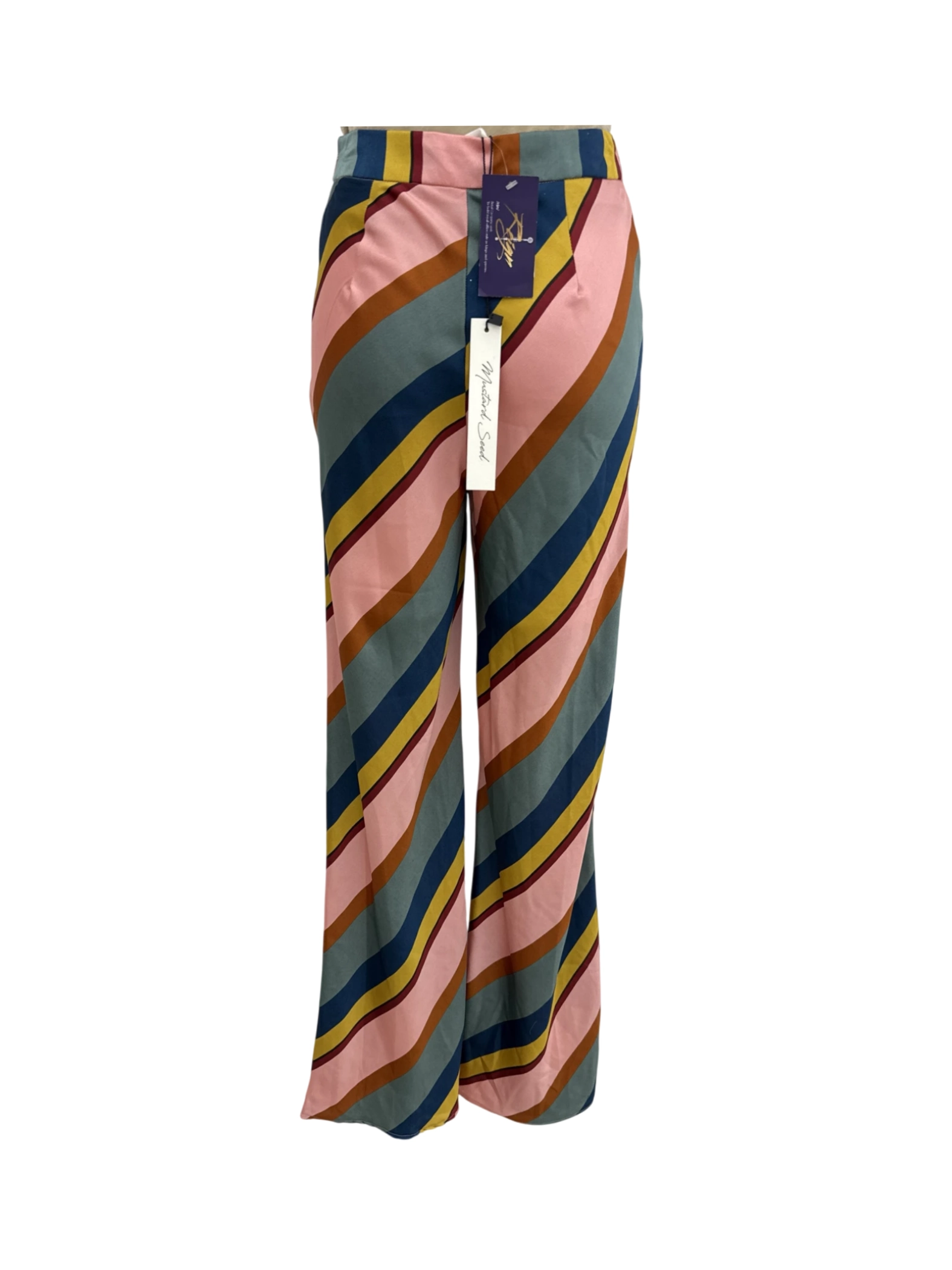 Elevate your wardrobe with these stylish Mustard Seed palazzo pants. Featuring a vibrant striped pattern and wide-leg design, these pants are perfect for a chic and comfortable summer or spring look. Made from 100% Polyester for a lightweight feel, these second-hand pants are in excellent condition. Ideal for creating a statement outfit, these pants are a versatile addition to any fashion-forward closet.