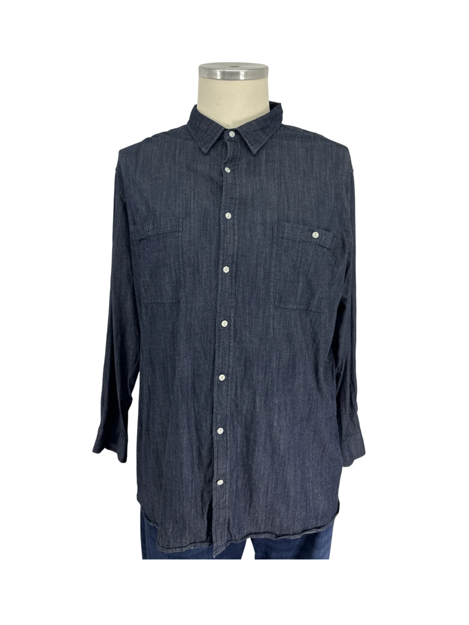 Elevate your casual wardrobe with this stylish pre-owned long sleeve button-up shirt from mutual weave. Crafted from a comfortable cotton blend, this shirt offers a classic look suitable for any occasion. The versatile denim hue makes it easy to pair with various outfits. Perfect for a laid-back yet put-together style. The shirt is in excellent condition, making it a great value. A perfect addition to your wardrobe for a smart casual look. Excellent for layering or wearing on its own. Durable and stylish. Shop now!