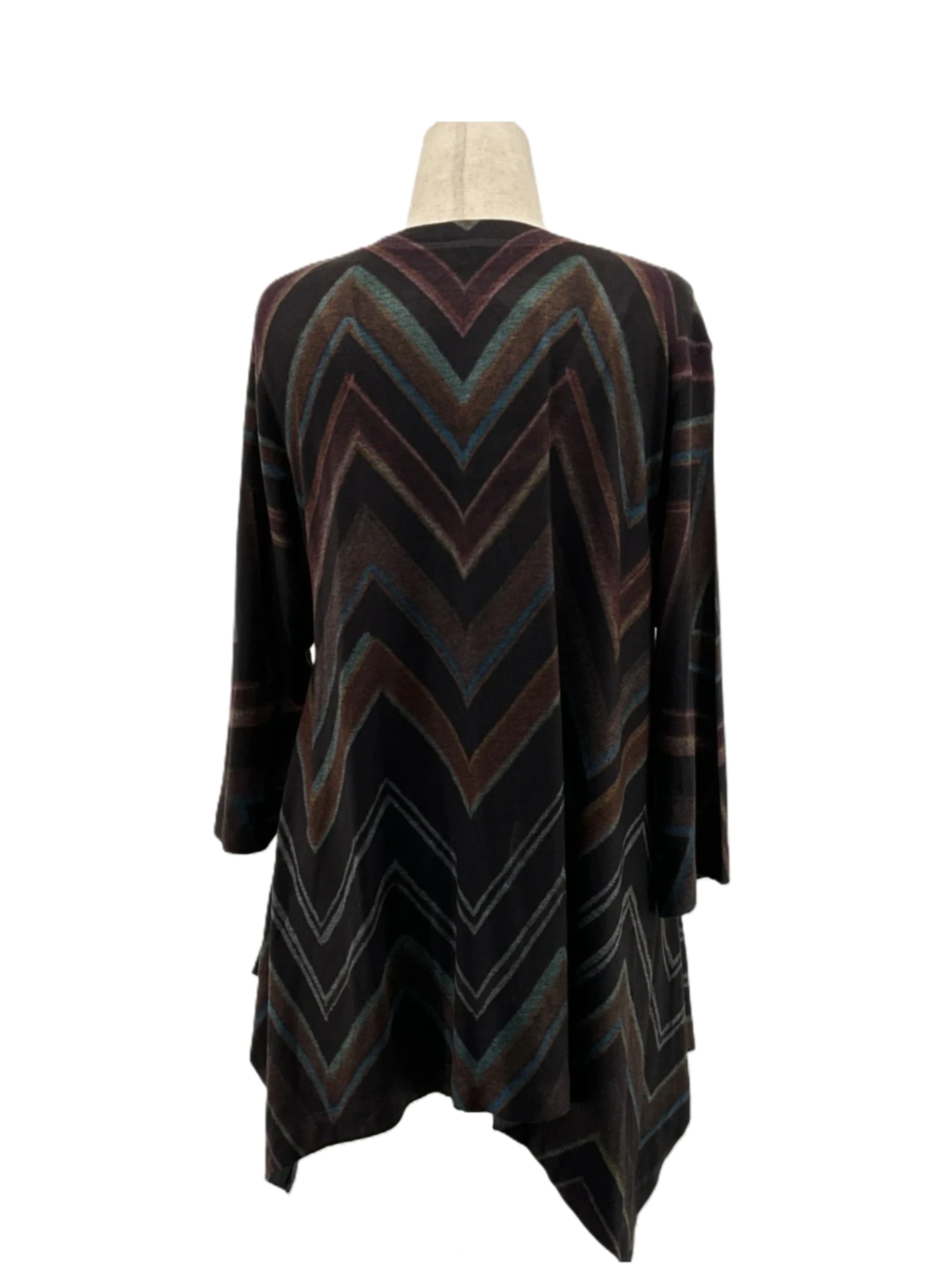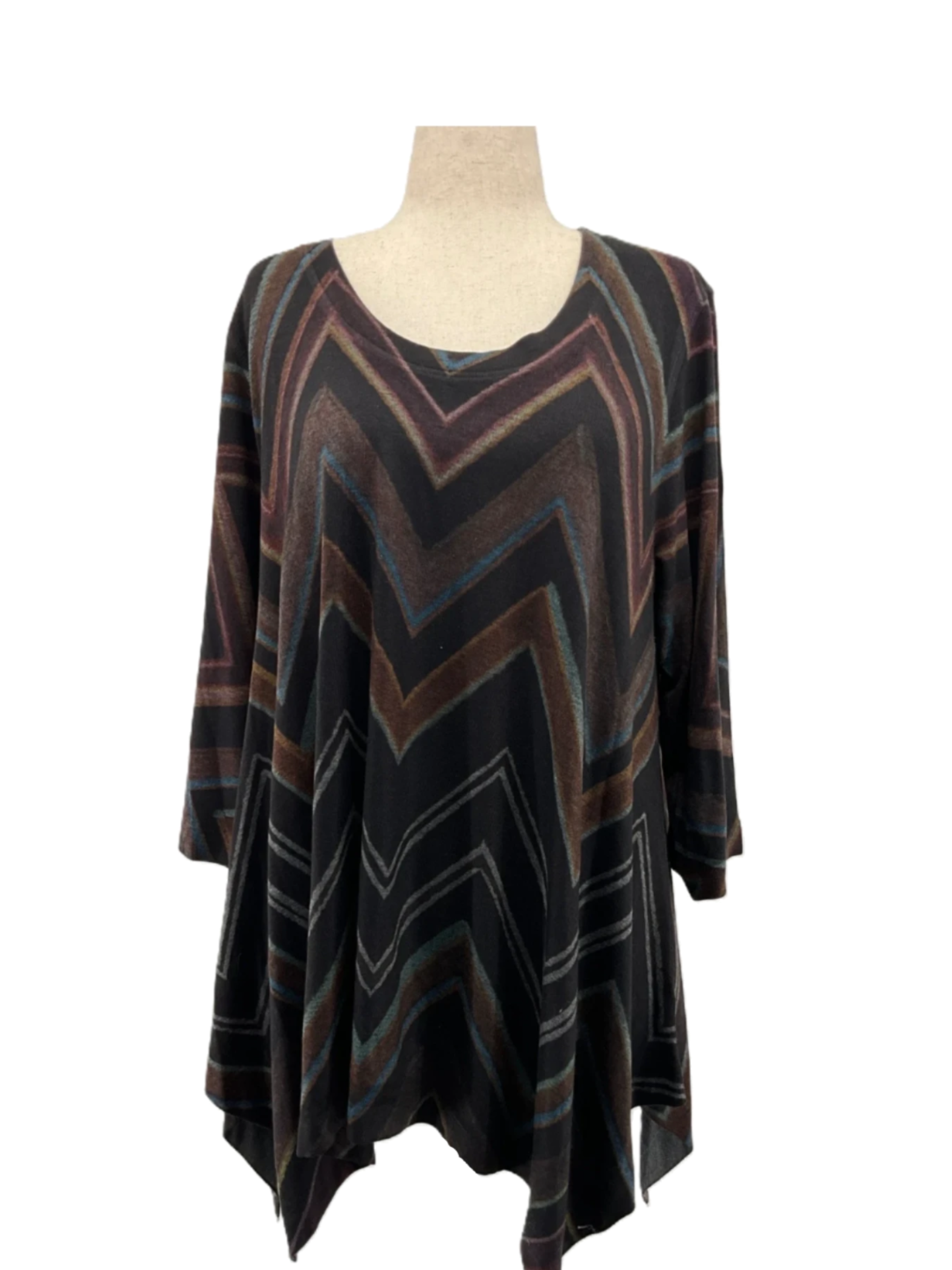 This is a Nally & Millie grey top with a multi-color abstract print.