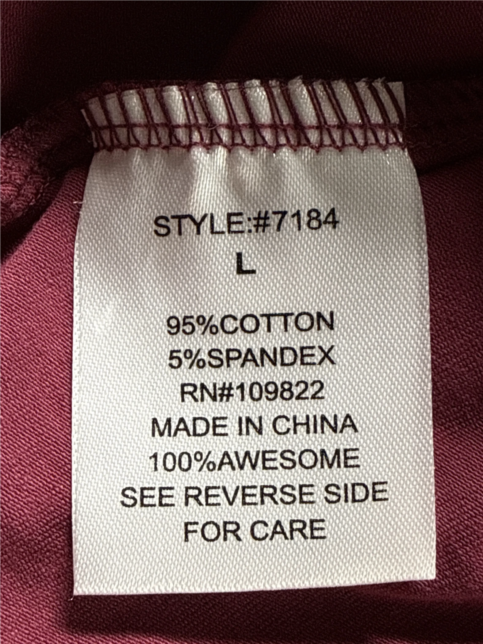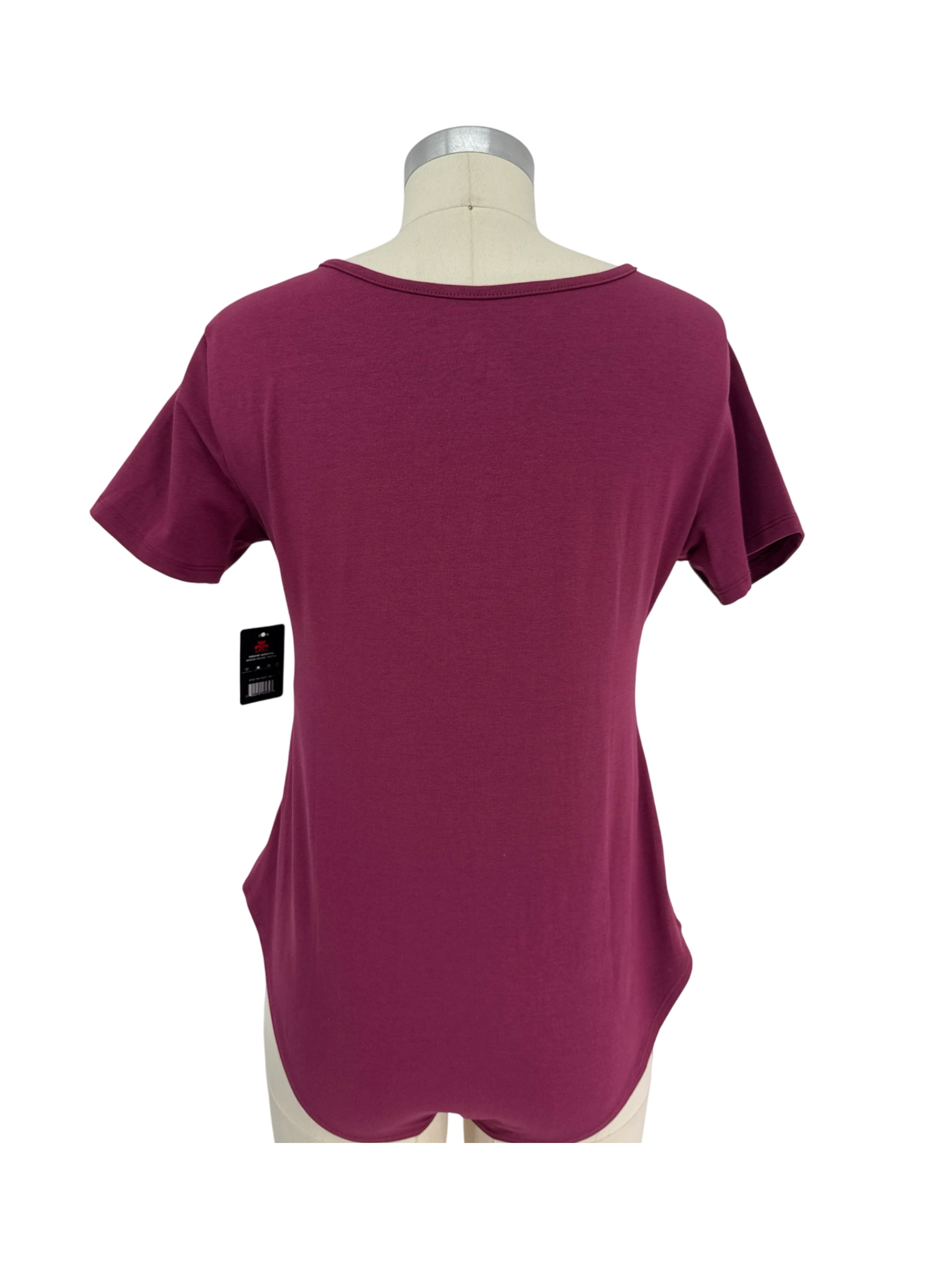 This Natural Uniforms bodysuit is a stylish and comfortable choice. Featuring a flattering scoop neck and short sleeves, this bodysuit is perfect for layering or wearing on its own. Made with a blend of cotton and spandex, it offers a comfortable and stretchy fit. The deep wine color adds a touch of sophistication. It's a pre-owned piece, offering great value for a versatile wardrobe essential.