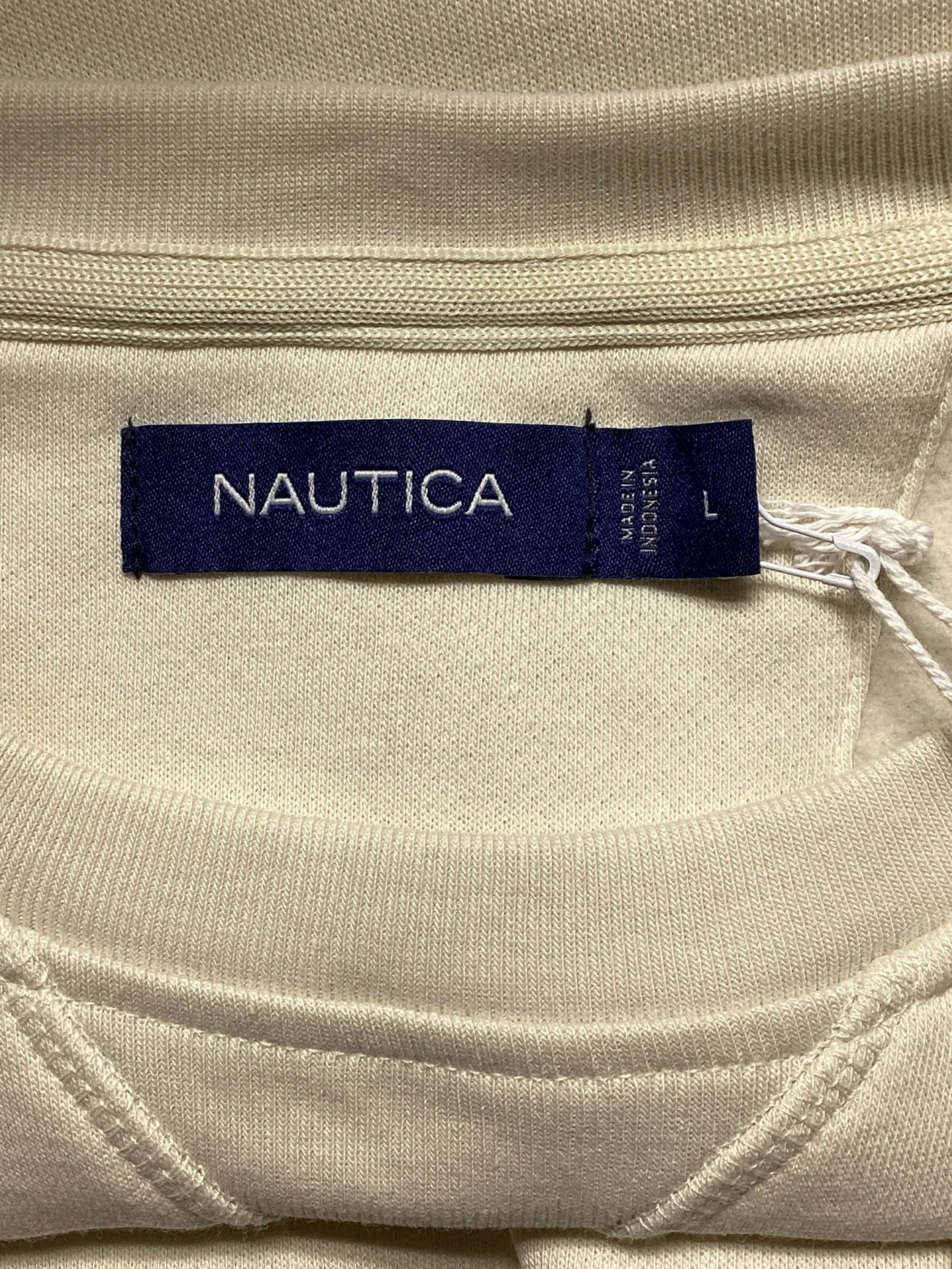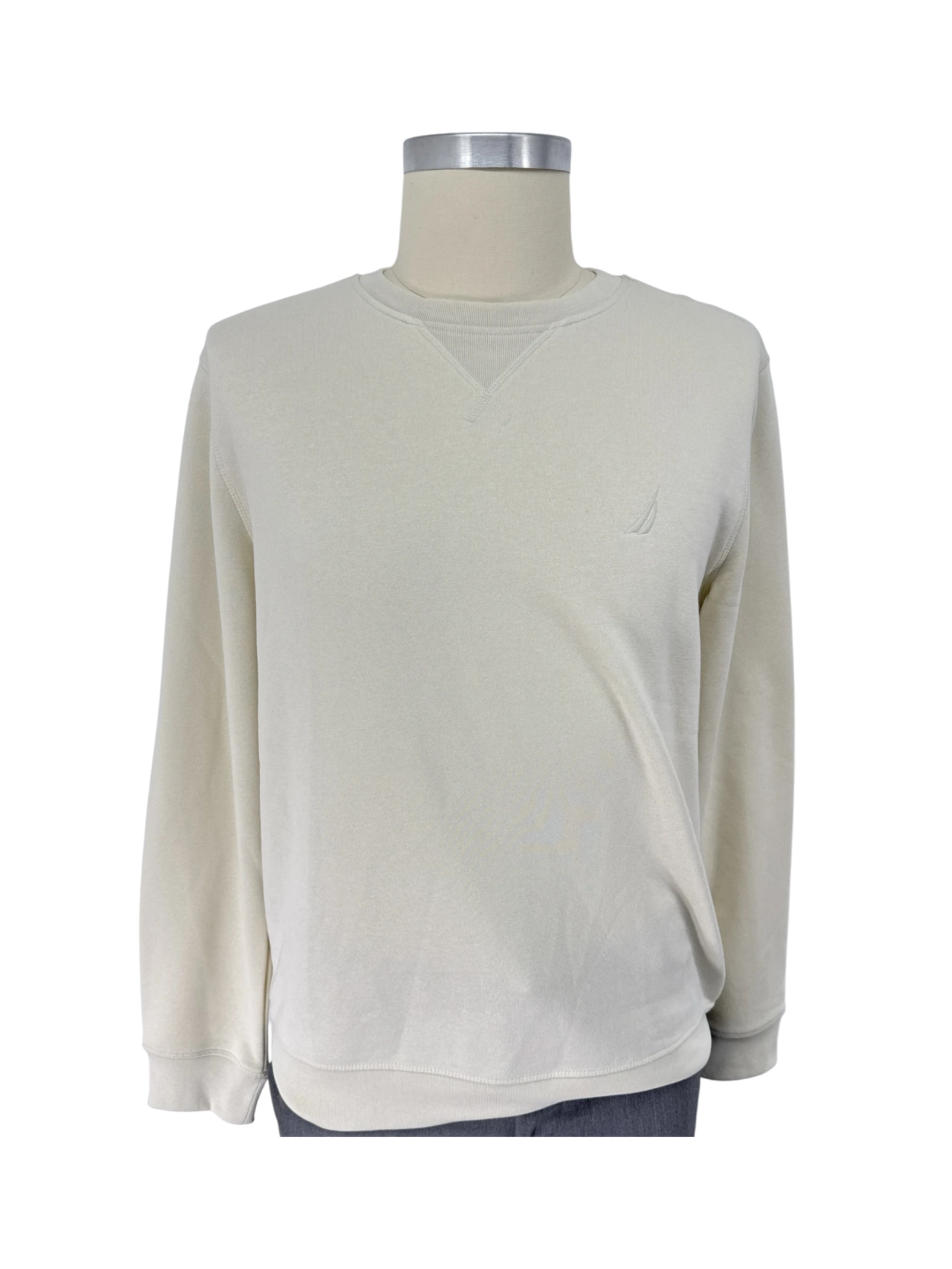 This pre-owned Nautica sweater is a classic addition to any wardrobe. Crafted from a soft cotton and polyester blend, this ivory-colored pullover offers comfort and style. Featuring a crew neck and long sleeves, it's ideal for layering during cooler months. The Nautica logo adds a touch of brand recognition. Perfect for casual outings or relaxed days, this sweater is a versatile and timeless piece.