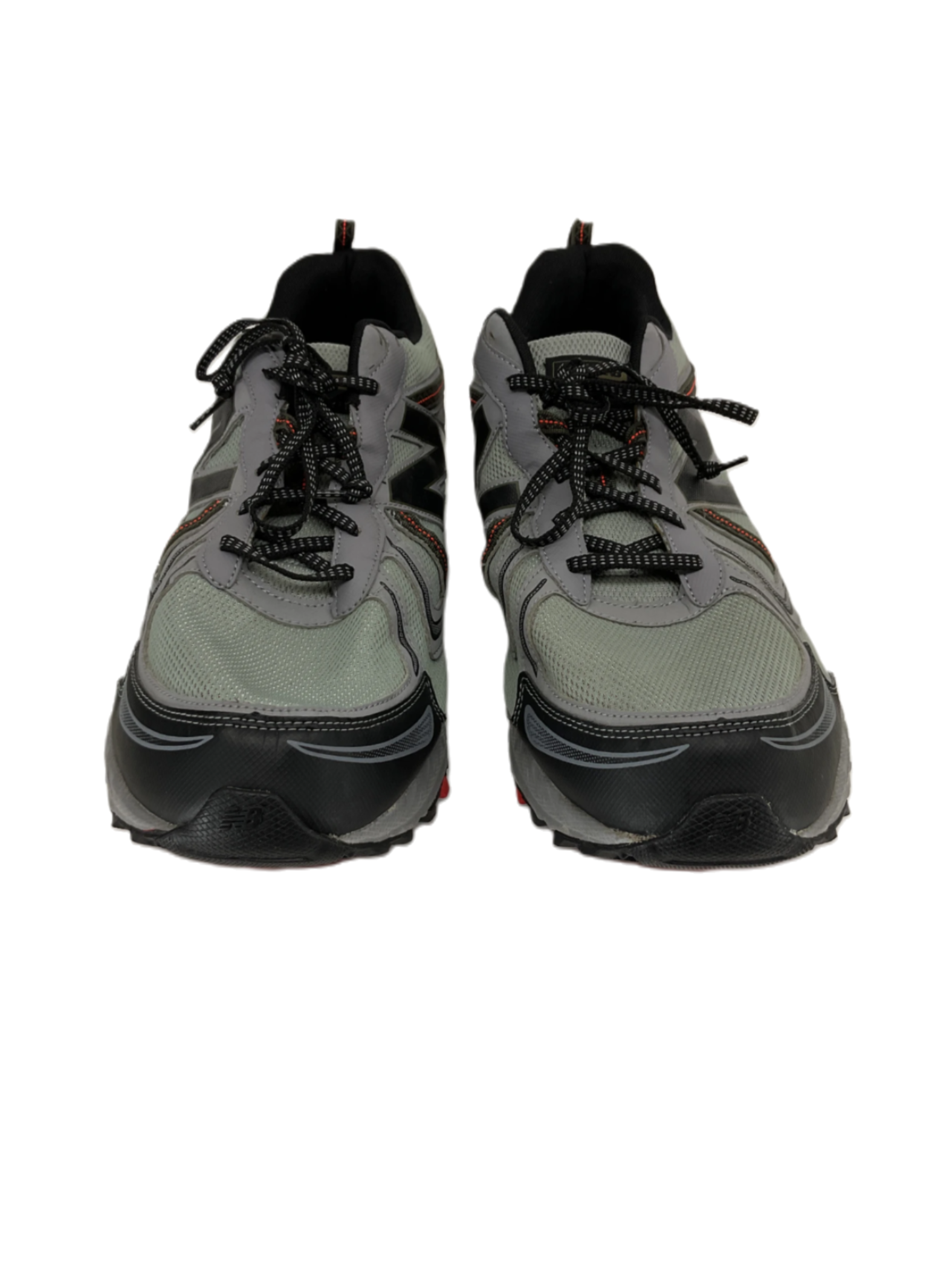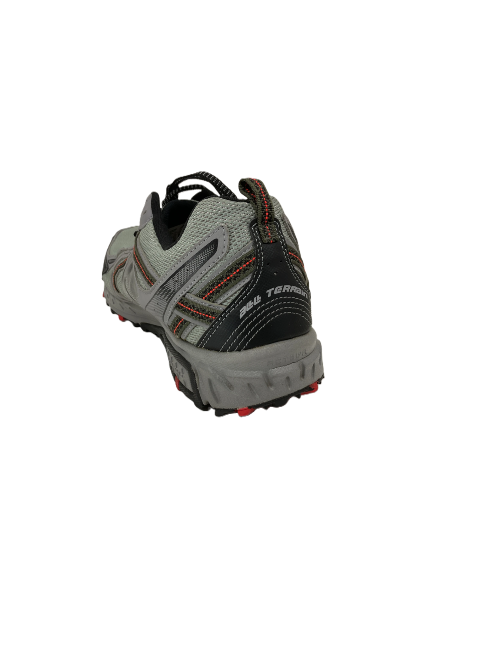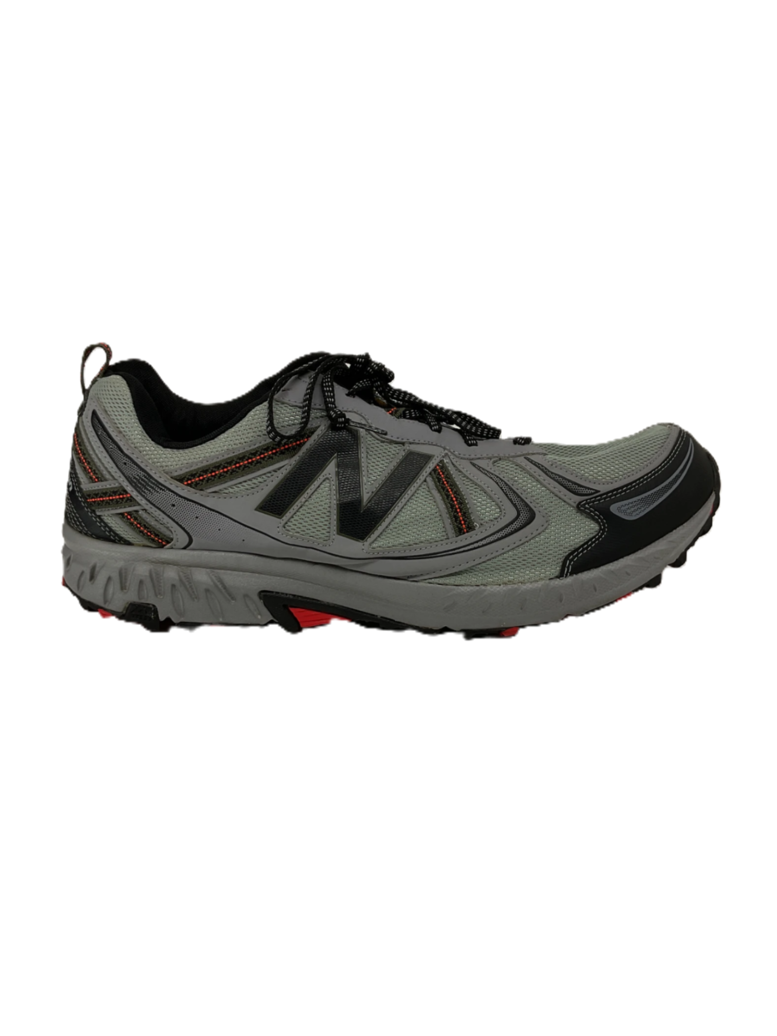 The New Balance 410 v5 All Terrain sneakers are available in gray, red, and black color combination for men in size 18.