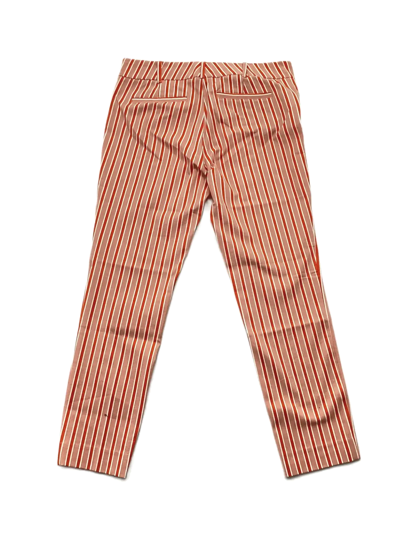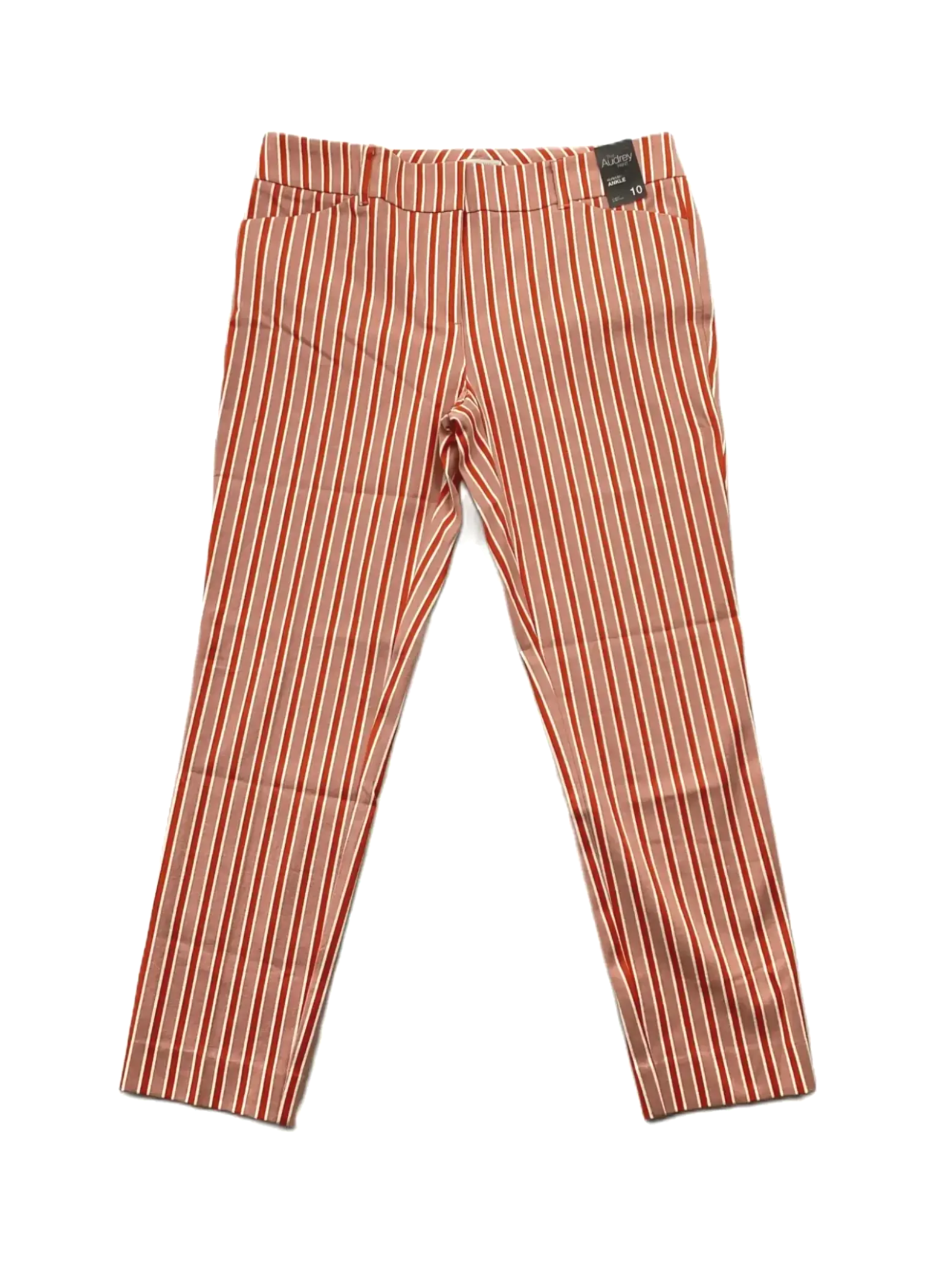 These stylish New York & Company Audrey striped pants are perfect for any occasion. Designed with a slim leg and ankle cut, they offer a flattering fit. Crafted from a comfortable cotton blend with a touch of spandex for stretch, these pants are both fashionable and easy to wear. Featuring a vibrant stripe pattern, they add a pop of color to your wardrobe. Ideal for summer and versatile enough to be dressed up or down.