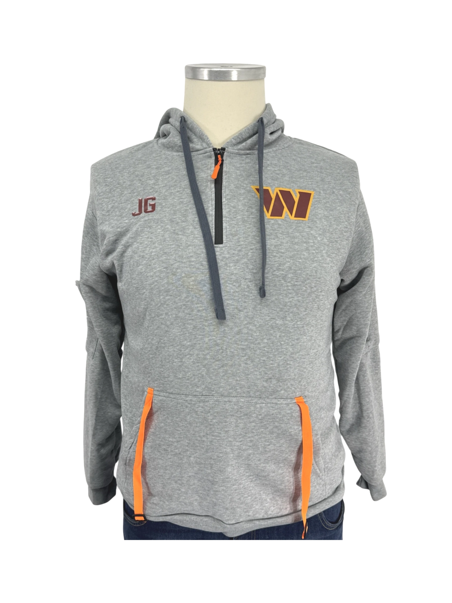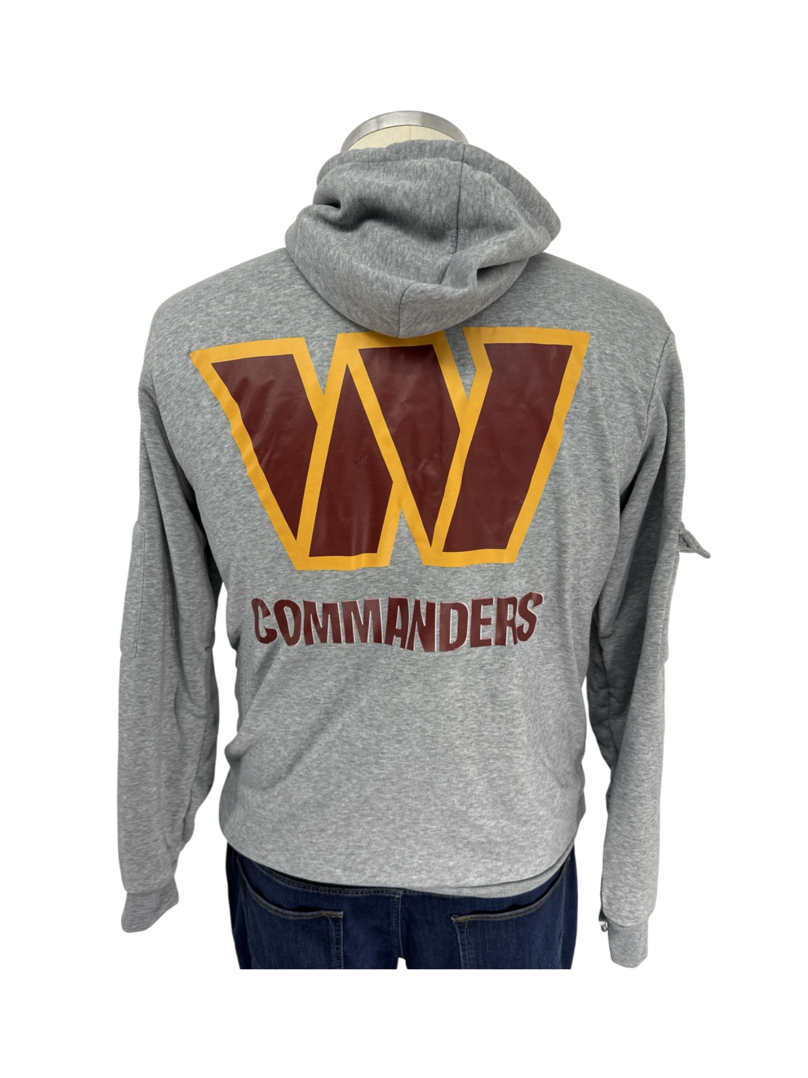 Show your support for the Commanders with this stylish NFL hoodie. This pre-owned sweatshirt features a comfortable cotton blend and a convenient zip-up design. Perfect for game days or casual wear, the hoodie showcases the team's logo prominently. Available in a versatile gray color, this hoodie combines comfort and team spirit, making it a great addition to any fan's wardrobe. Get yours today!