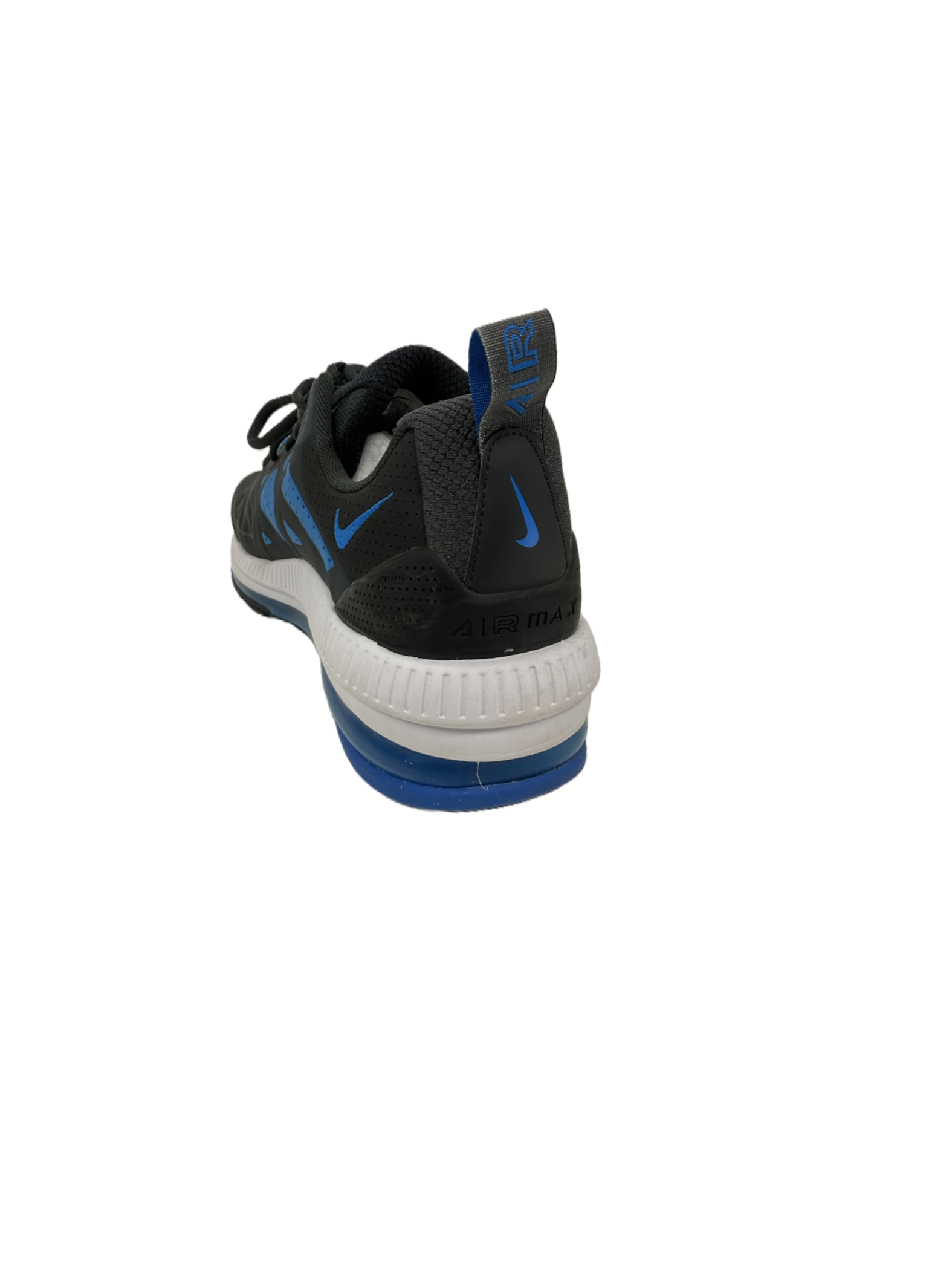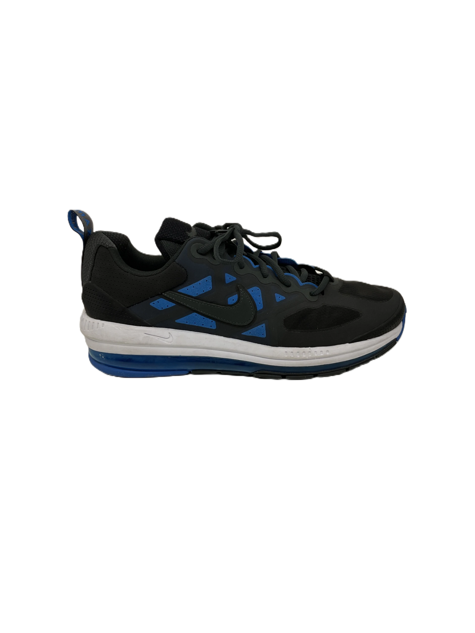 The men's Nike Air Max Genome in Black Signal Blue is available in size 11.5. There is a minor blemish on the shoes - please refer to the photos for more details.
