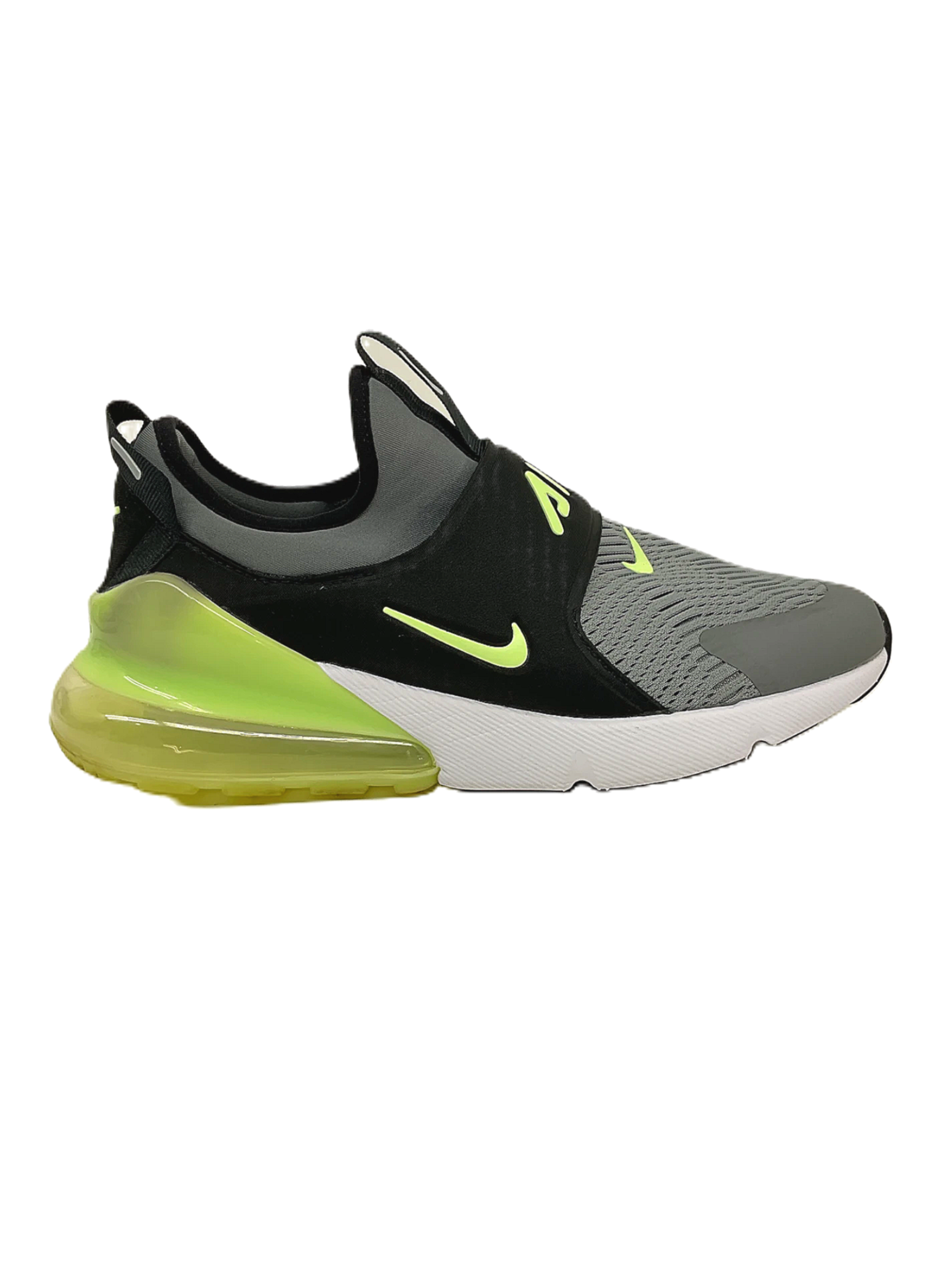 The Nike Air Max 270 Extreme shoes in kids 10 are available in Volt Grey/Black. Please note that these shoes do not come with insoles and may have some missing details and light blemishes. Kindly refer to the photos for more details.