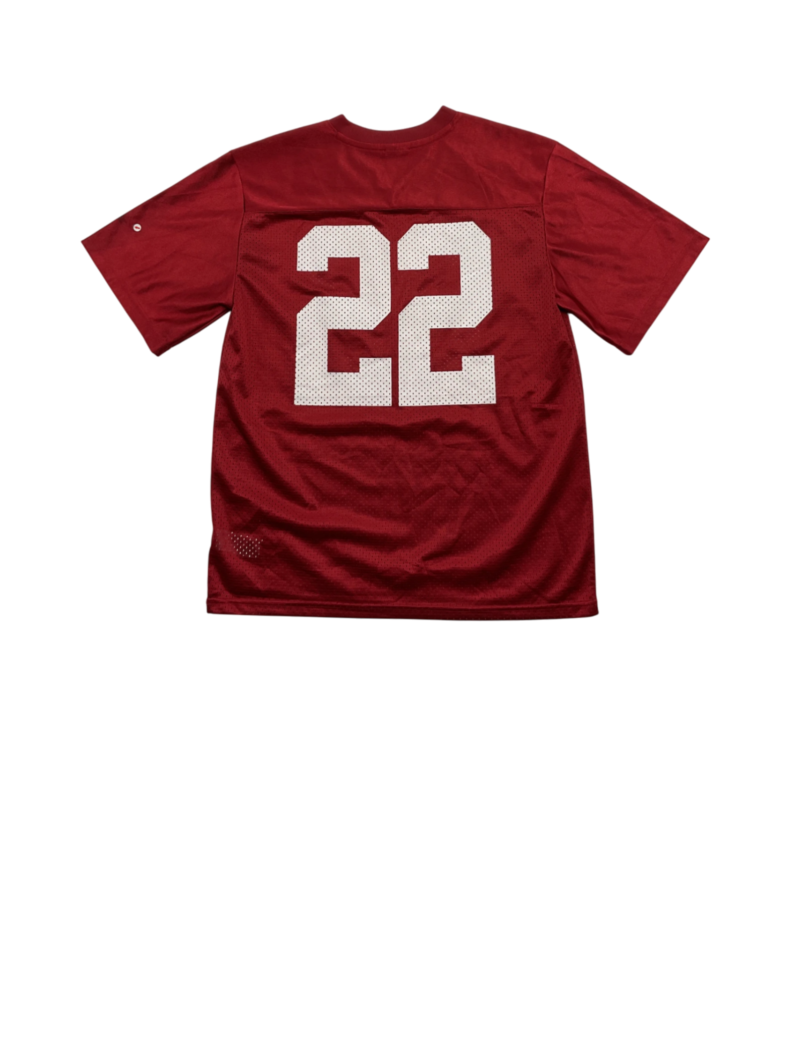 Show your team spirit with this pre-owned Nike football jersey in a vibrant red. Featuring the number 22, this jersey is made from 100% polyester, making it durable and easy to care for. It's perfect for young football fans or anyone who loves athletic wear. The jersey is in excellent condition, ready to wear, and a great addition to any activewear collection. This jersey is a great value for any youth or adult.