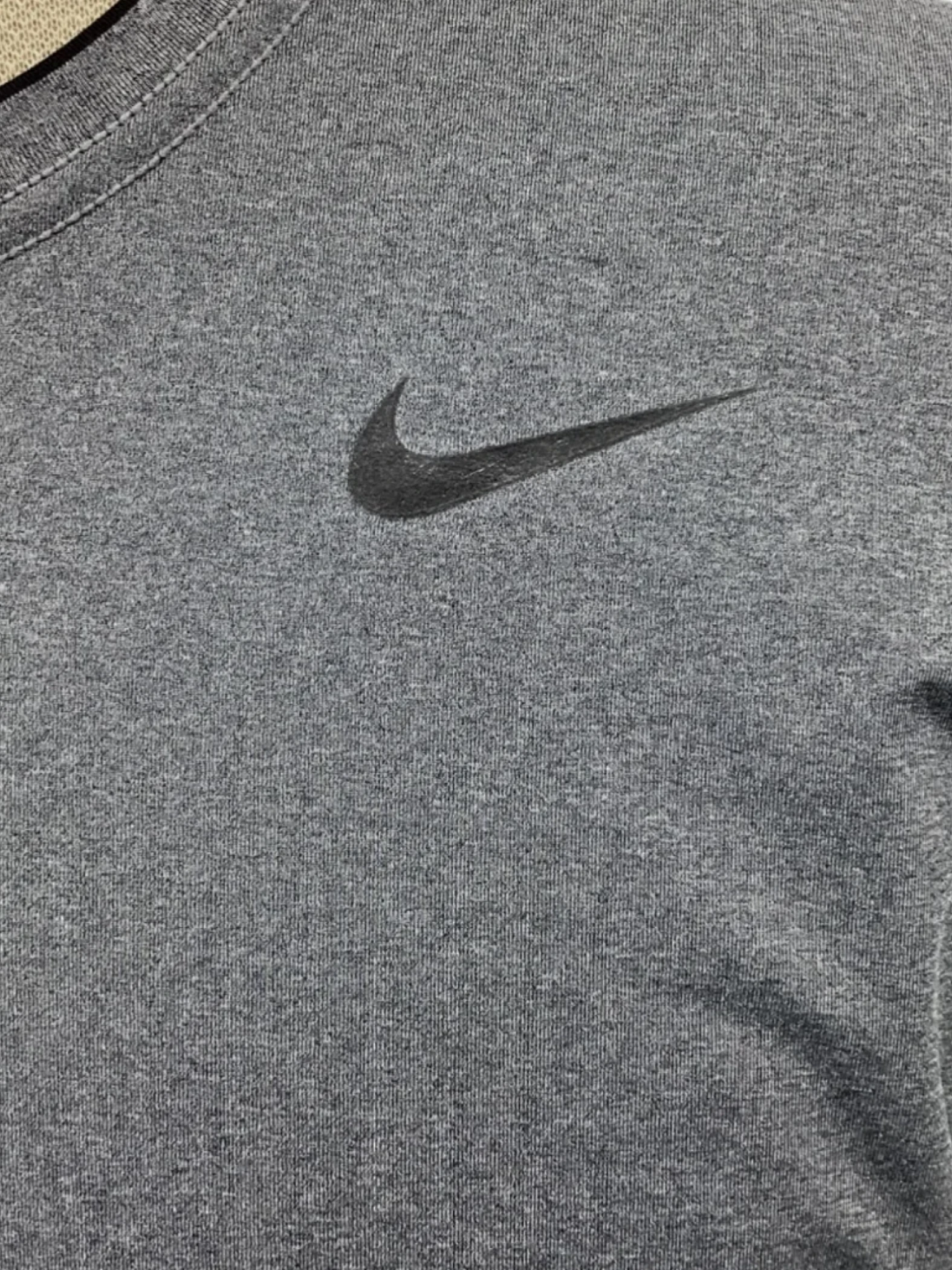Men's short-sleeved gray athletic shirt in size Large.