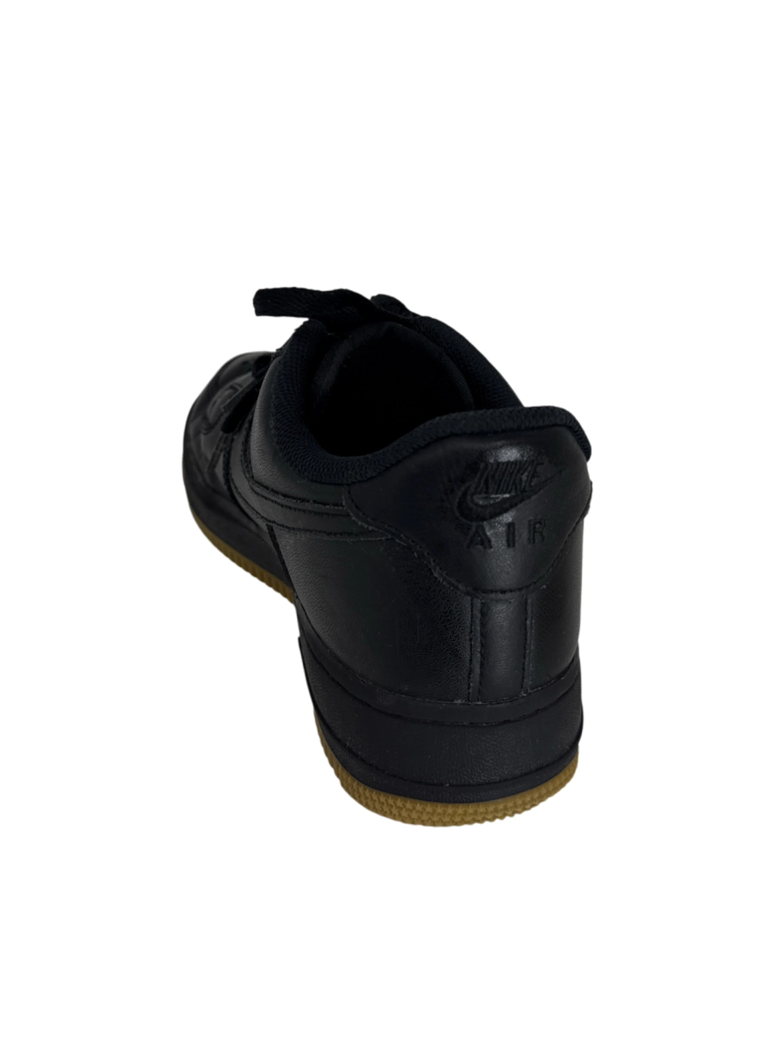These pre-owned Nike Air Force 1 sneakers are a classic choice for any wardrobe. Featuring a sleek black leather upper paired with a durable brown sole, they offer both style and comfort. The iconic design is instantly recognizable, making them a versatile option for casual wear. These shoes have been well-maintained and are in good condition, showing minimal signs of wear. A perfect blend of timeless design and everyday practicality, making them a great addition to any shoe collection.