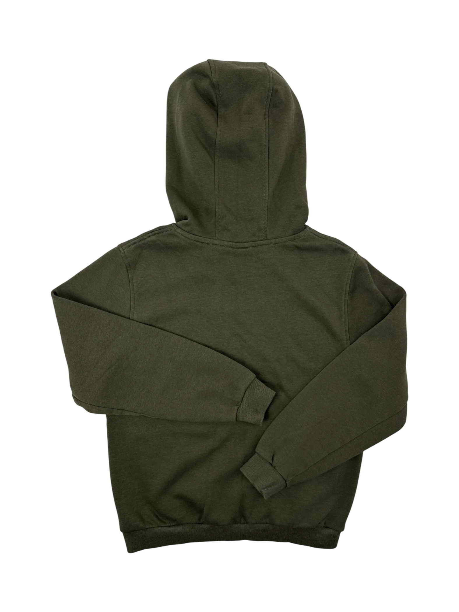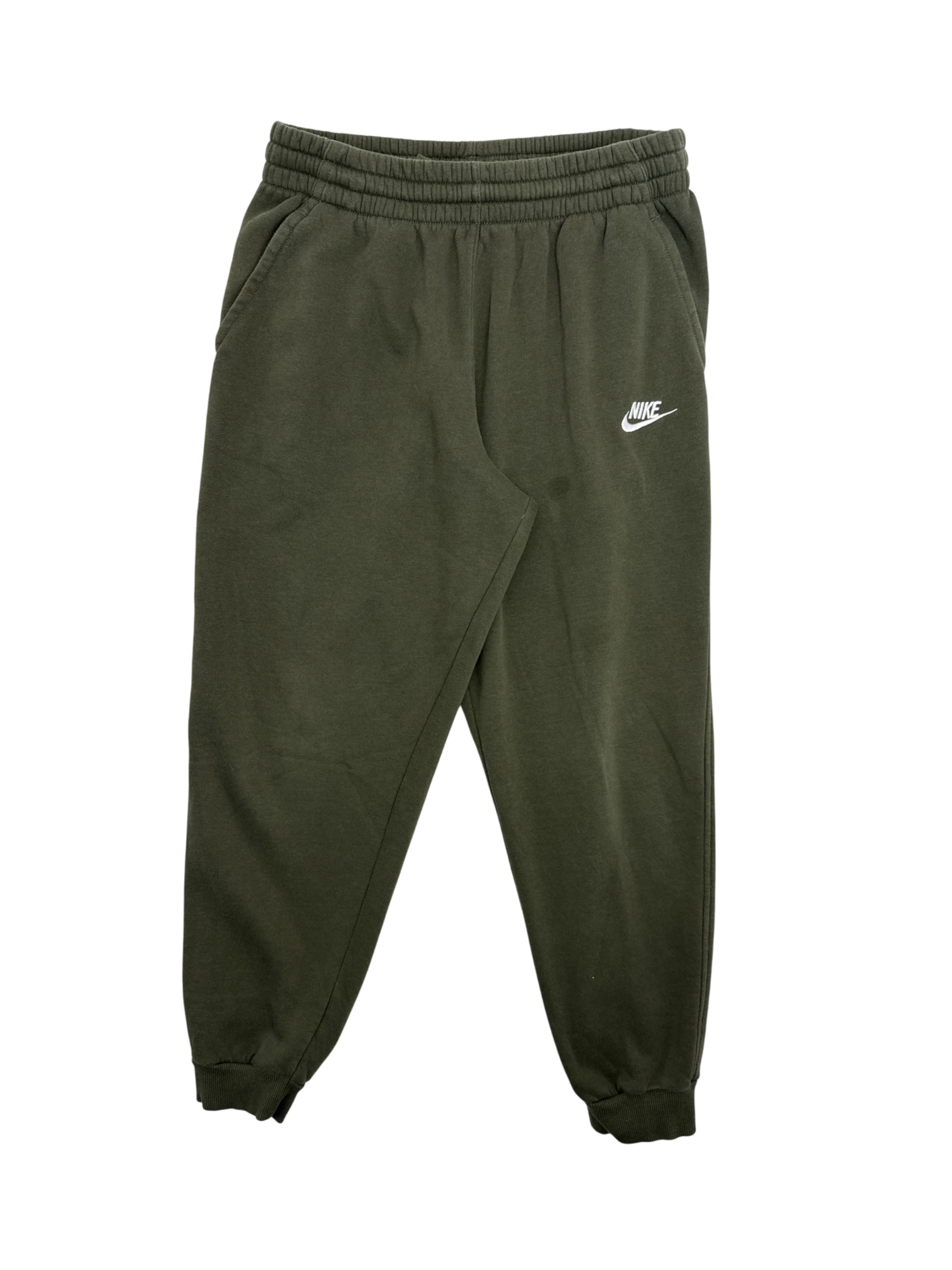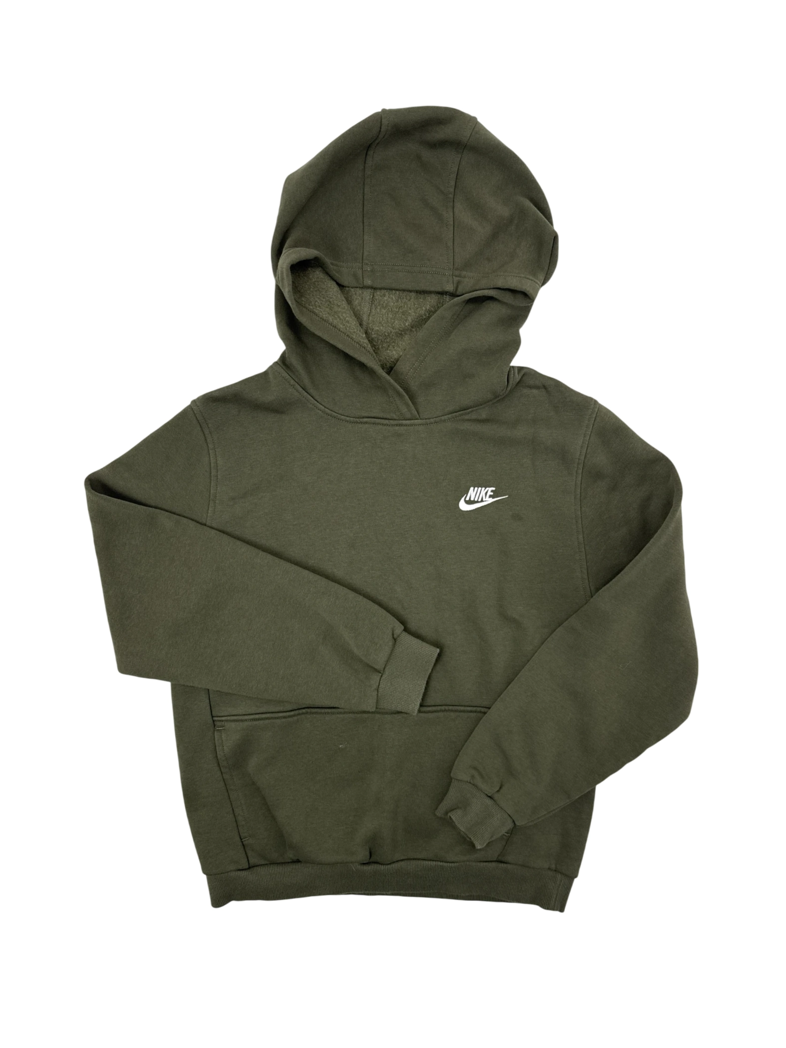 This pre-owned Nike sweatsuit is perfect for a casual, comfortable look. The set includes a hooded sweatshirt and matching sweatpants, both in a versatile olive green color. Made from a soft cotton blend, this set is ideal for cooler weather. The classic Nike logo adds a touch of sporty style. A great addition to any wardrobe, offering both comfort and iconic branding. This is an affordable choice for someone looking for a stylish and comfortable set.