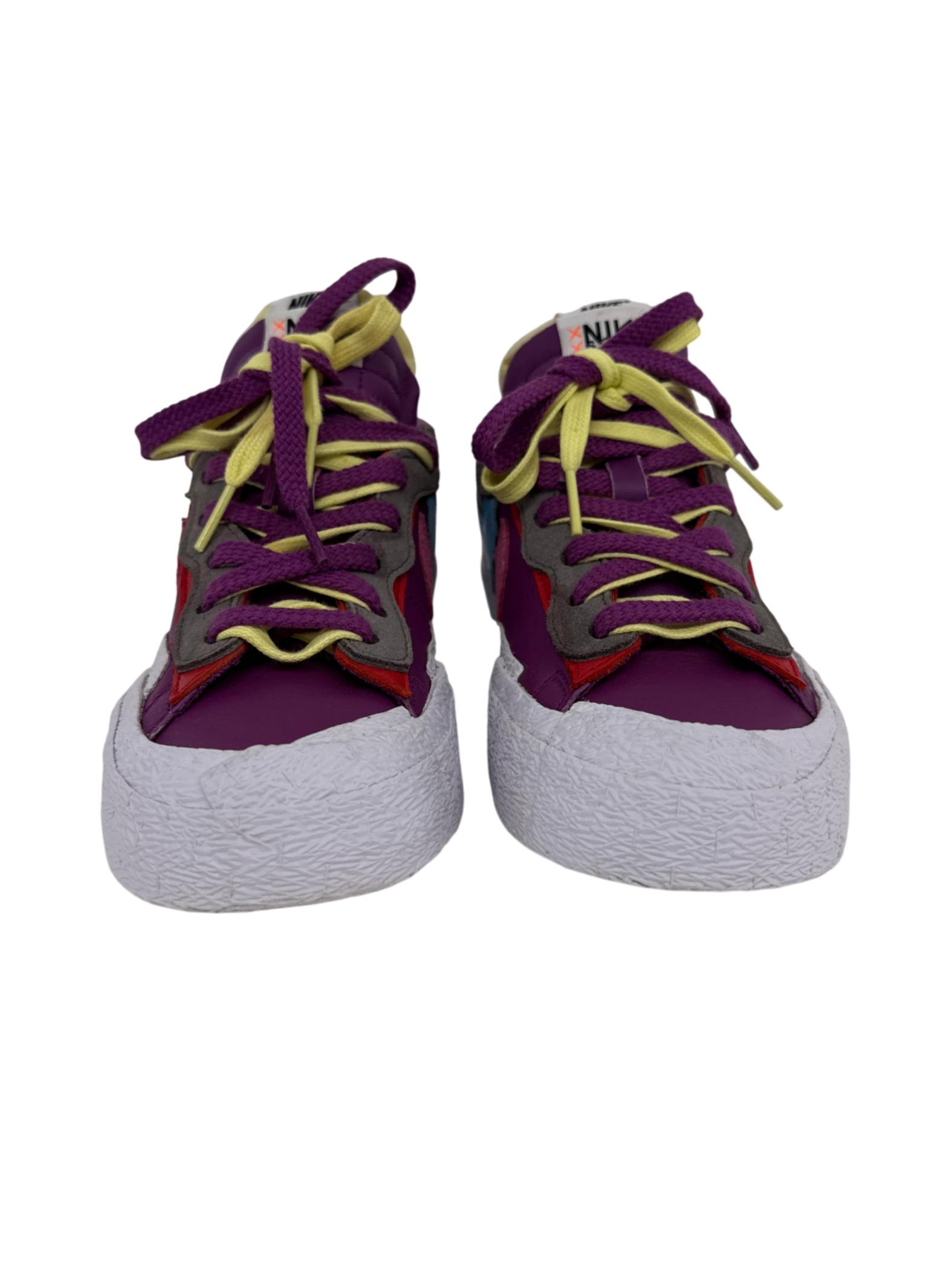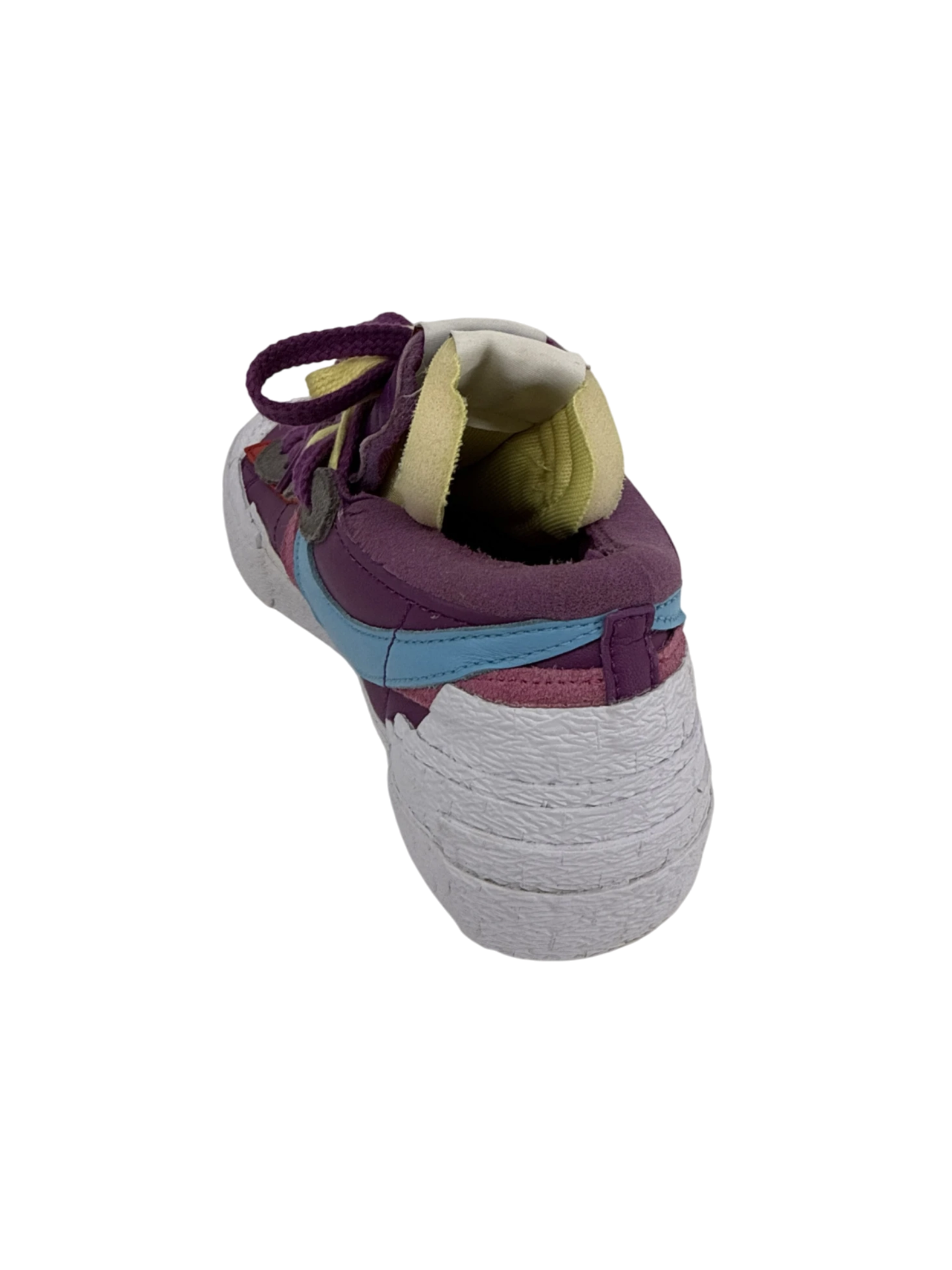 Step up your sneaker game with these pre-owned Nike sneakers. These women's shoes feature a vibrant color palette of purple, blue, and pink, making them a stylish statement piece. Designed with a unique, deconstructed aesthetic, these sneakers offer both comfort and a fashion-forward look. Perfect for everyday wear, these shoes are a versatile addition to any wardrobe. Get ready to turn heads with these eye-catching Nike sneakers.