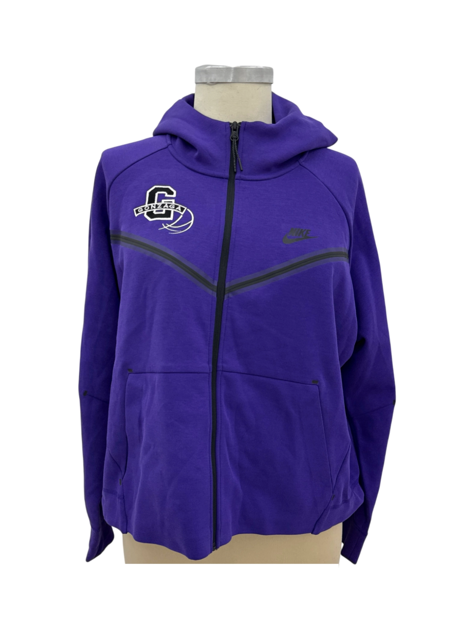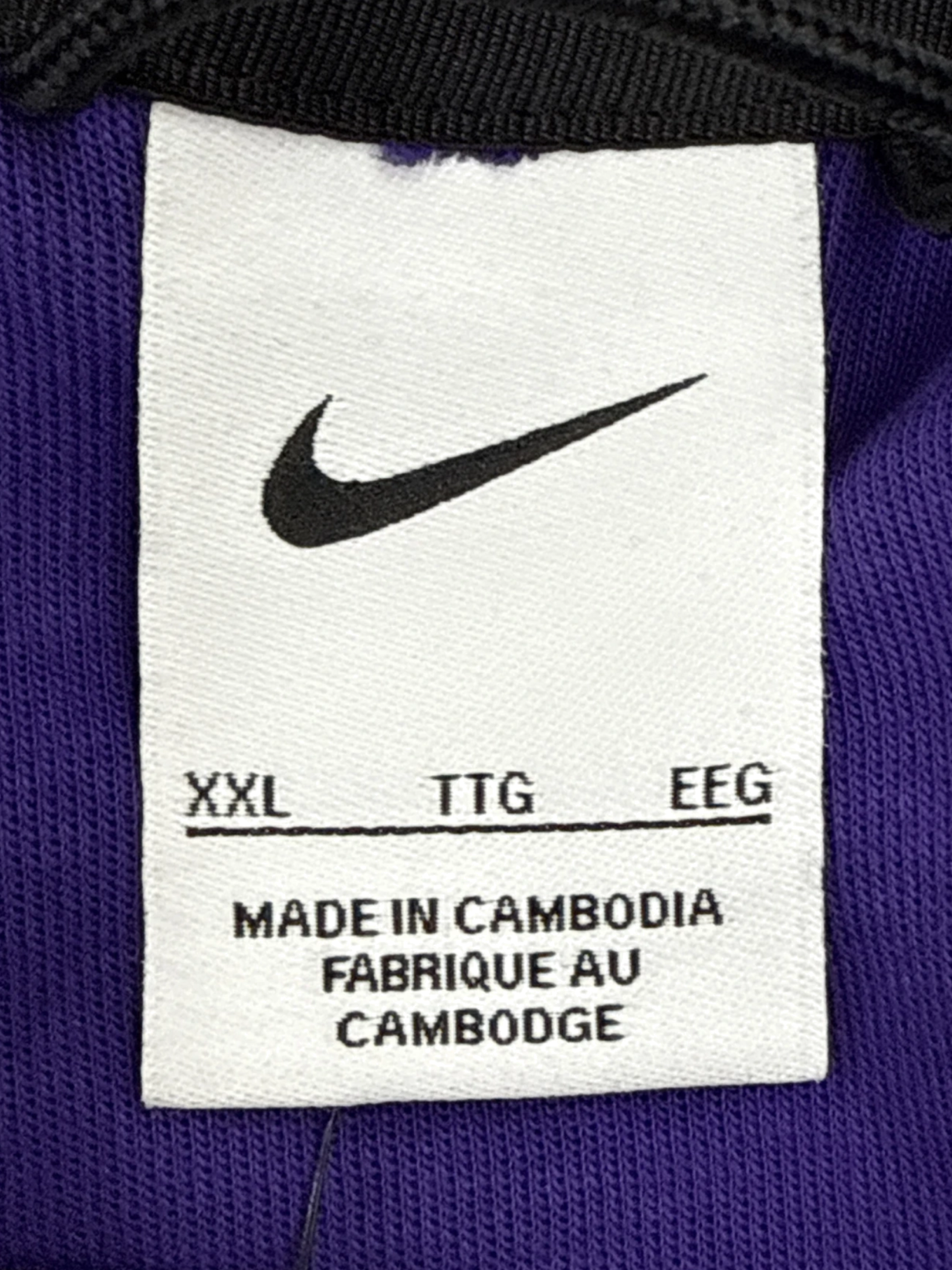 Elevate your casual wear with this pre-owned Nike hoodie. This athletic-inspired zip-up offers a comfortable fit and stylish design. Featuring a vibrant purple color, the hoodie is perfect for staying warm during the fall and winter seasons. The product is made from a blend of cotton and polyester. The hoodie features a team logo on the chest, a hooded neckline and a full zip. This versatile piece combines comfort and style, perfect for everyday wear or active pursuits.