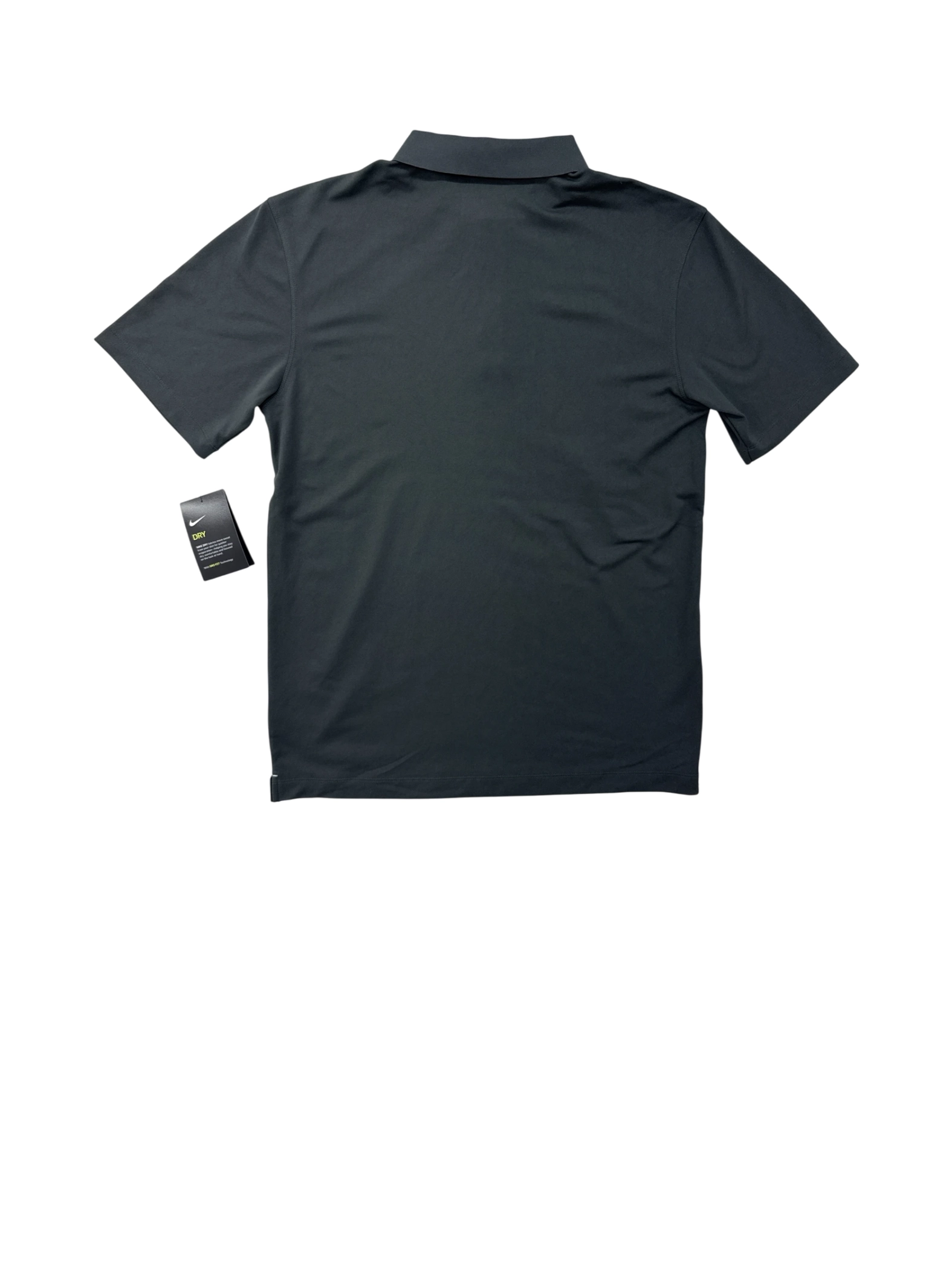 Elevate your activewear collection with this pre-owned Nike Dri-FIT polo shirt. Designed for ultimate comfort and performance, this shirt is perfect for workouts, golf, or casual wear. Made from 100% polyester, it offers excellent moisture-wicking properties to keep you dry. The classic black color and iconic Nike logo make it a versatile addition to any wardrobe. Size Medium. Great for a stylish and comfortable fit.