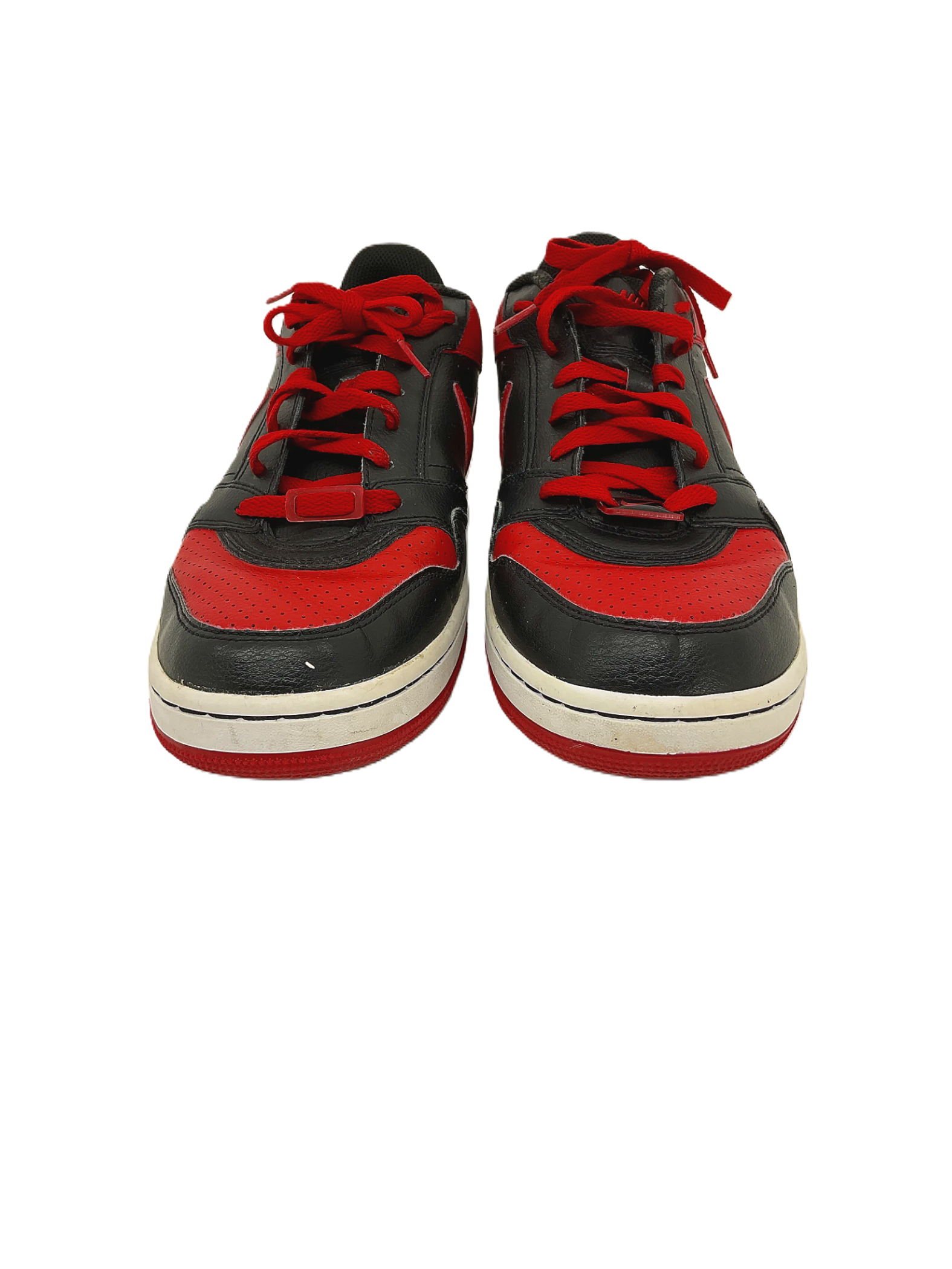 Nike men's black and red sneakers in size 9.5 with minor blemishes. Please refer to the photos for details.