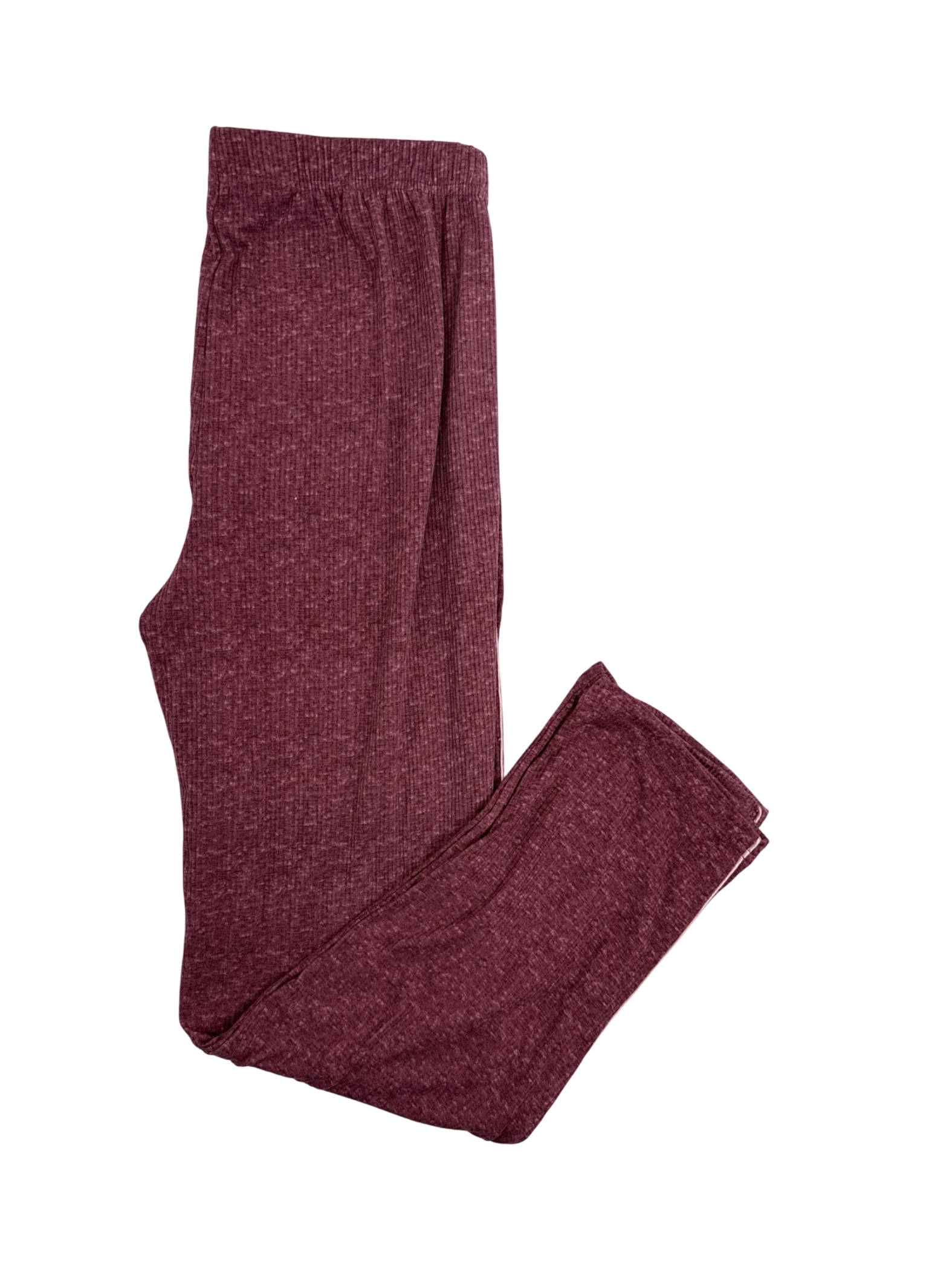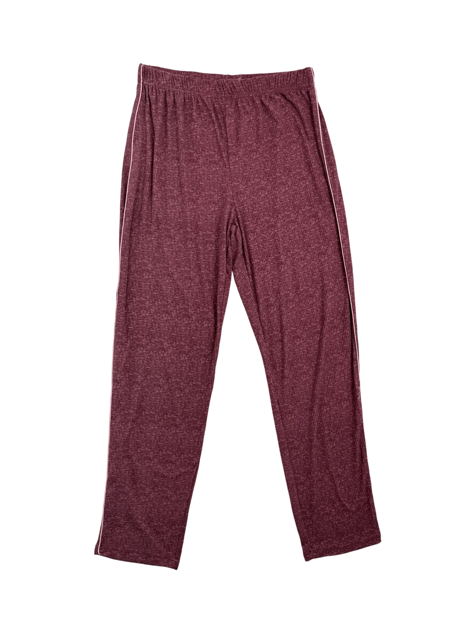 These pre-owned Nine West pajama pants are the epitome of comfort and style. Crafted from a soft blend of polyester and elastane, these burgundy pants offer a cozy fit. The ribbed texture and classic design makes them perfect for lounging. These pajama pants are ideal for cooler seasons. Elevate your sleepwear collection with these high-quality and fashionable Nine West pajama pants.