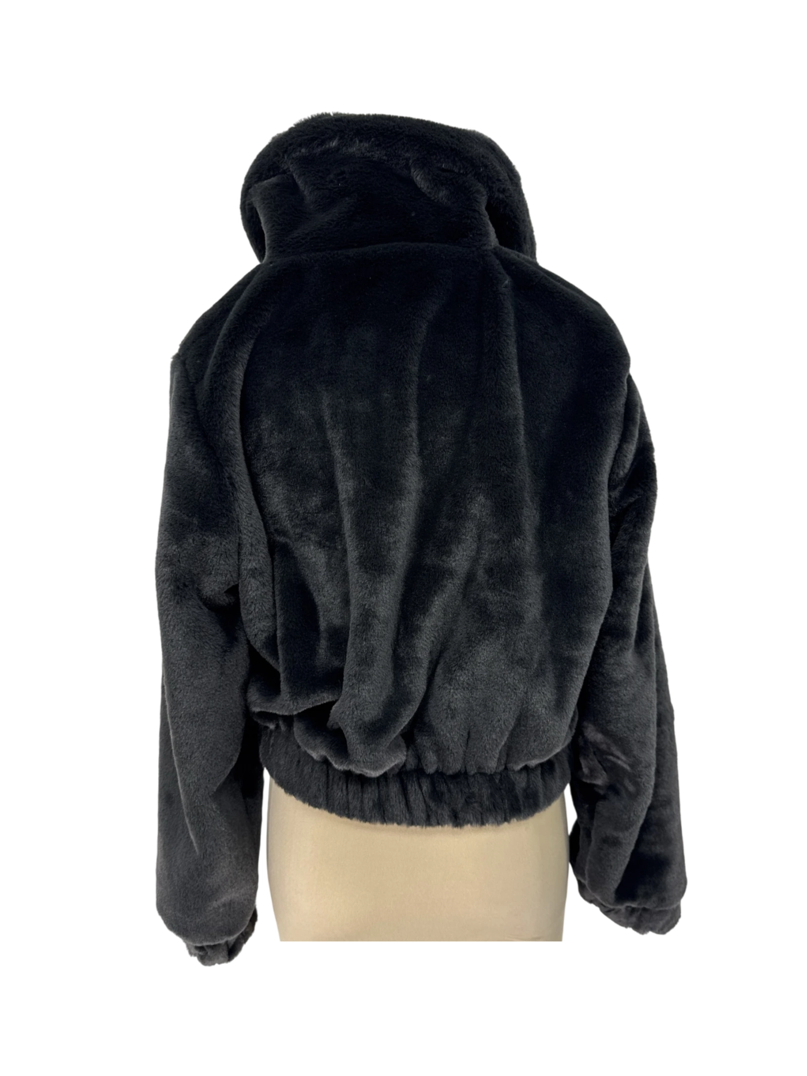 This pre-owned No Boundaries jacket is a stylish and cozy addition to your wardrobe. Crafted from luxurious faux fur in classic black, this jacket offers both warmth and fashion. Featuring a hood and a secure zip-up front, it's perfect for chilly days. The jacket is a size Small, ideal for a comfortable fit. Embrace the plush texture and timeless design. A great choice for those seeking a versatile winter or fall outer layer.
