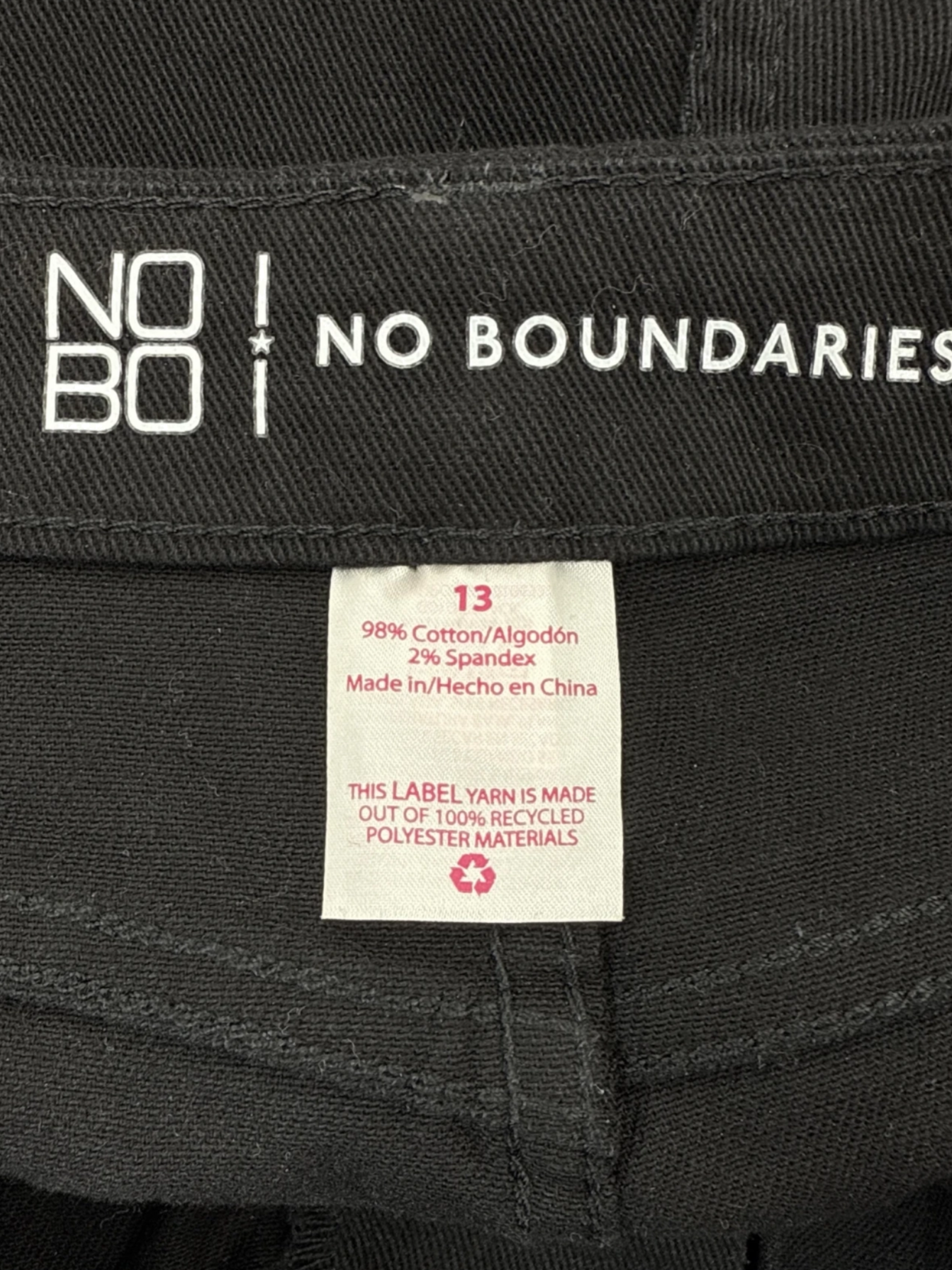 Stylish and comfortable pre-owned No Boundaries denim shorts in classic black. These high-waisted shorts are perfect for summer, offering a flattering fit and versatile style. Crafted from a blend of cotton and spandex for a comfortable stretch, these shorts are perfect for casual wear. A must-have for any wardrobe, offering both comfort and a trendy look.