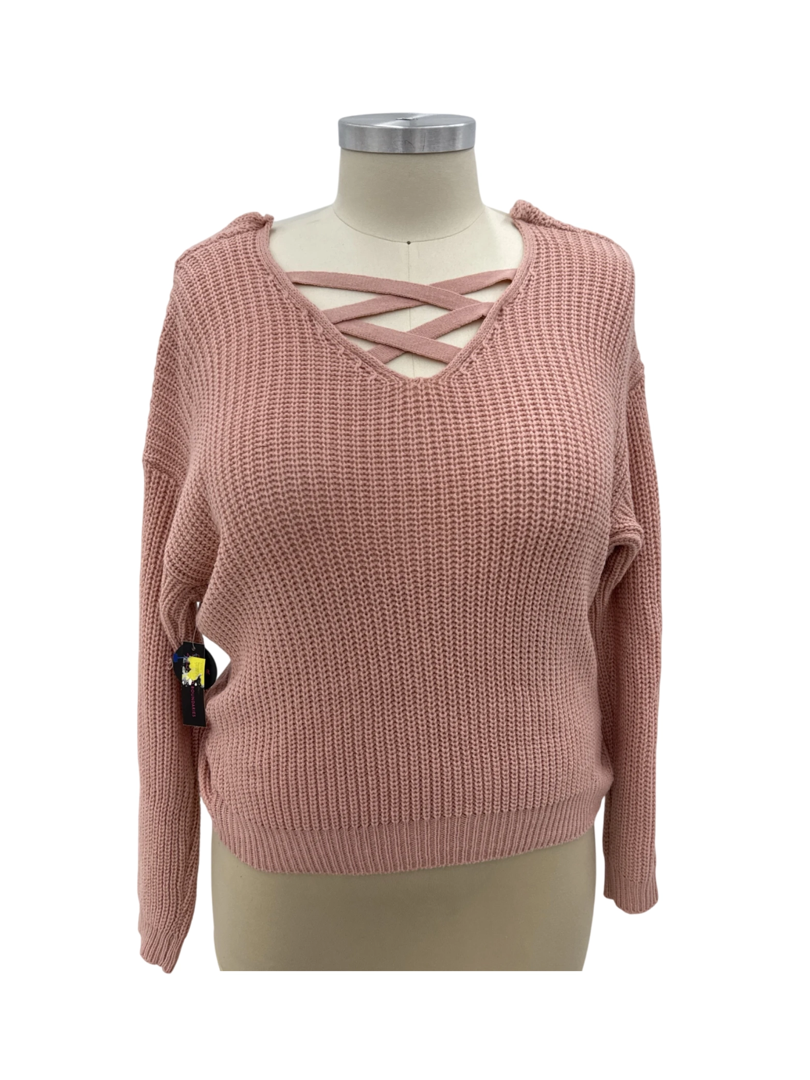 This pre-owned No Boundaries sweater is a stylish addition to any wardrobe. Featuring a beautiful pink color and a unique design, this sweater is perfect for staying cozy and fashionable during the fall and winter seasons. Made from a blend of acrylic and recycled polyester, it offers a comfortable fit. With a flattering V-neck, this sweater is versatile enough to be dressed up or down. Get ready to make a statement with this pre-loved gem!