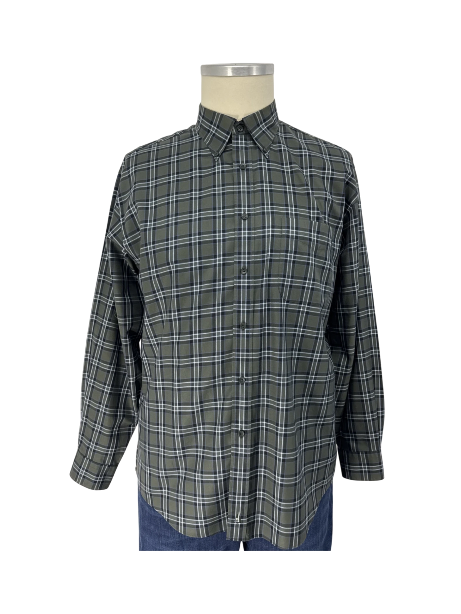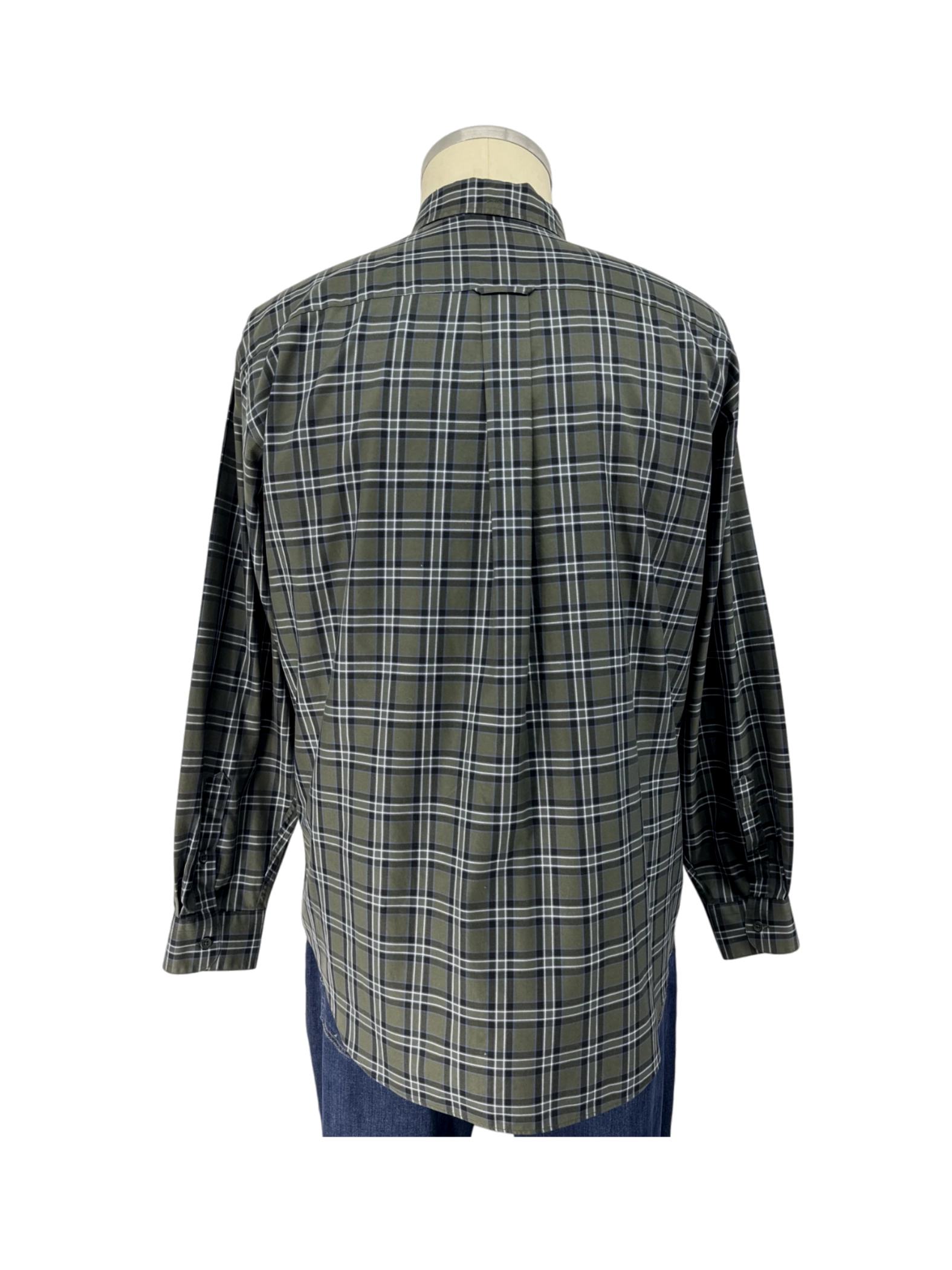 This pre-owned Nordstrom men's long sleeve shirt is a stylish and comfortable addition to any wardrobe. Featuring a classic plaid pattern in shades of green and blue, this button-up shirt is made from a high-quality cotton blend, offering both durability and a soft feel. Ideal for casual wear or a more polished look, this XL shirt is in great condition, making it a perfect blend of style, quality, and value for the discerning buyer.