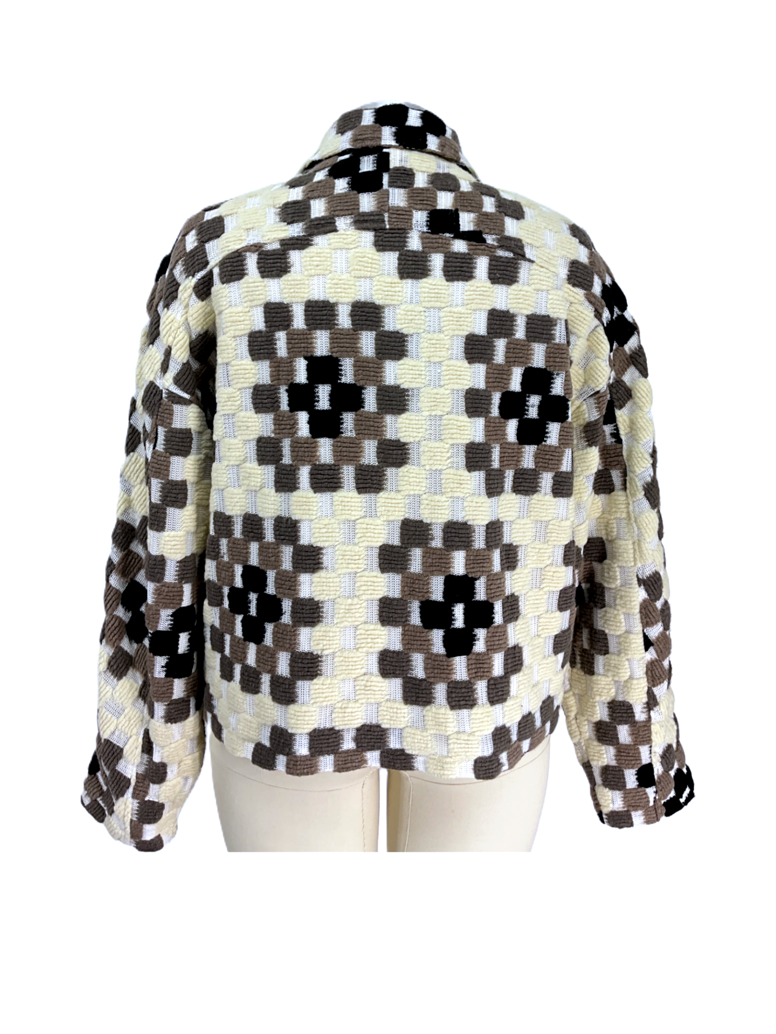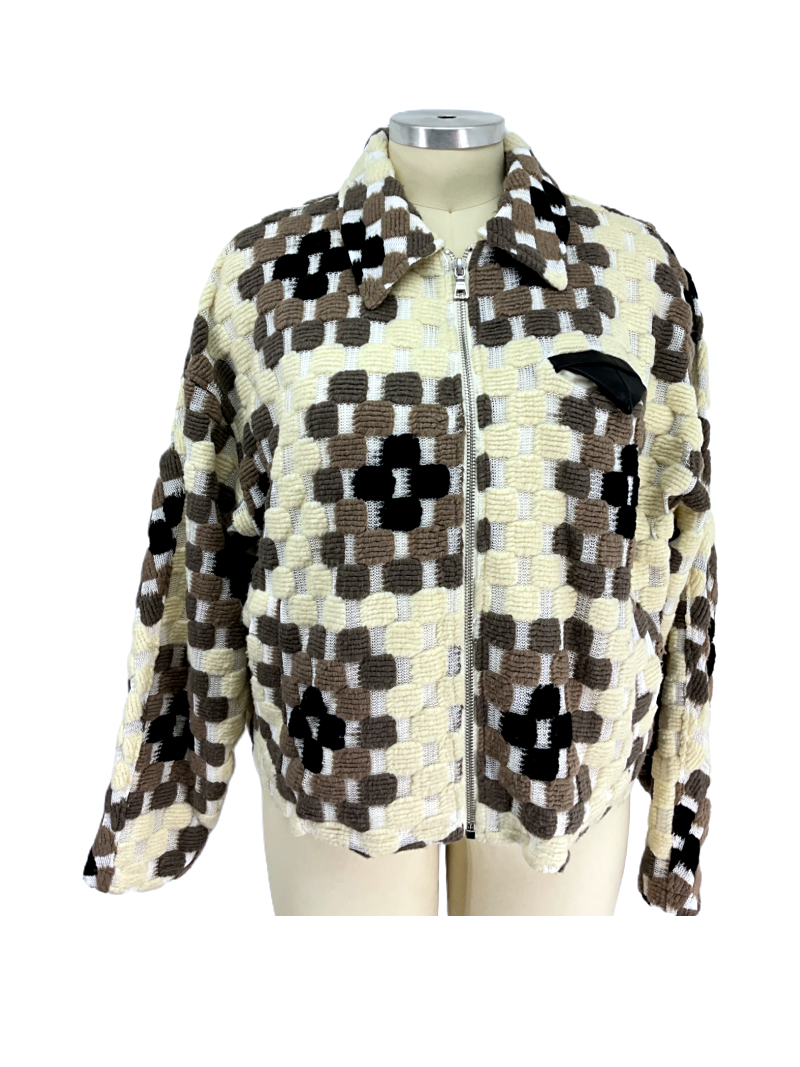 The Nova Men Gaston Jacquard Cropped Jacket is available in size xxxl in white and brown colors.