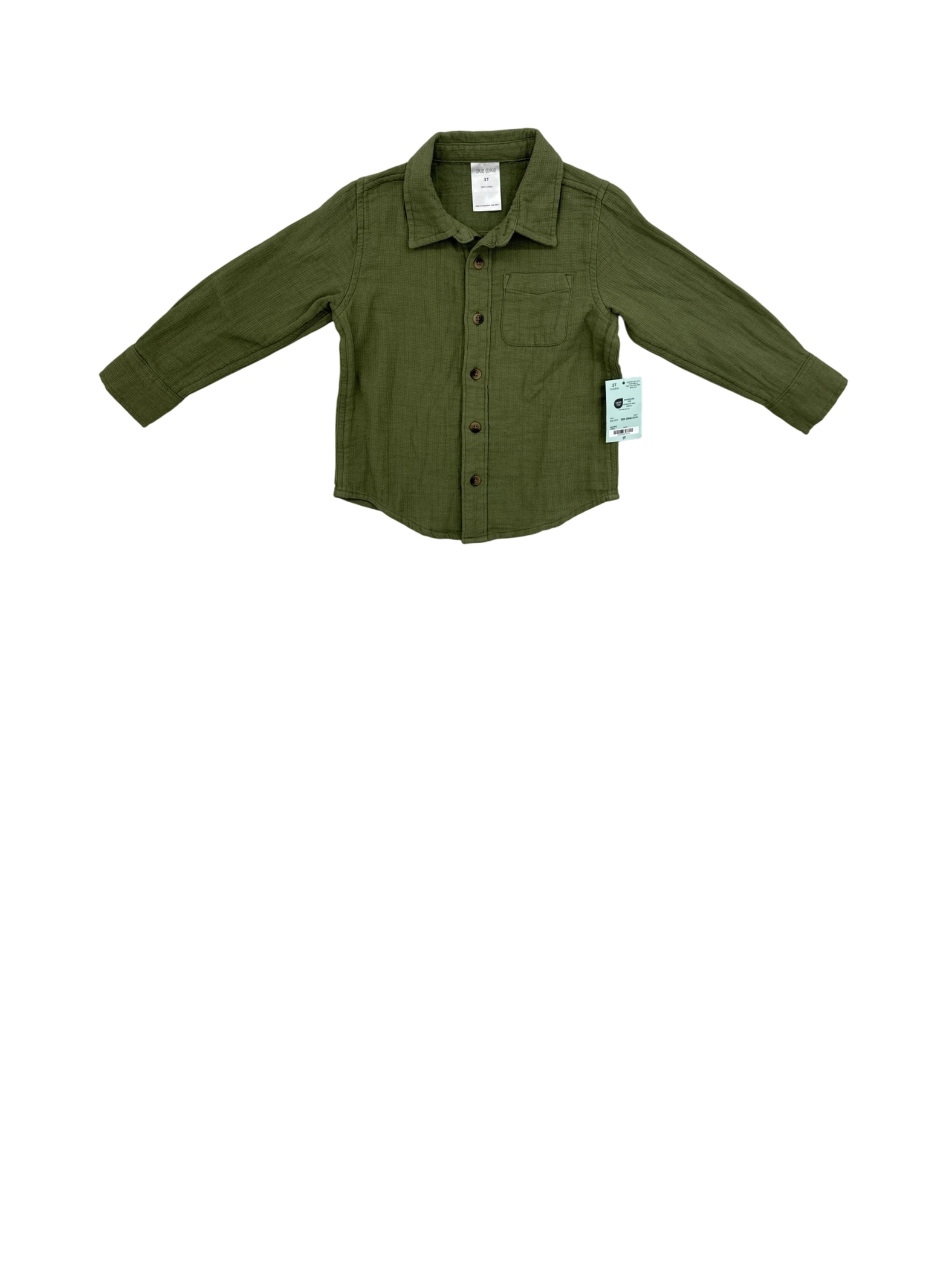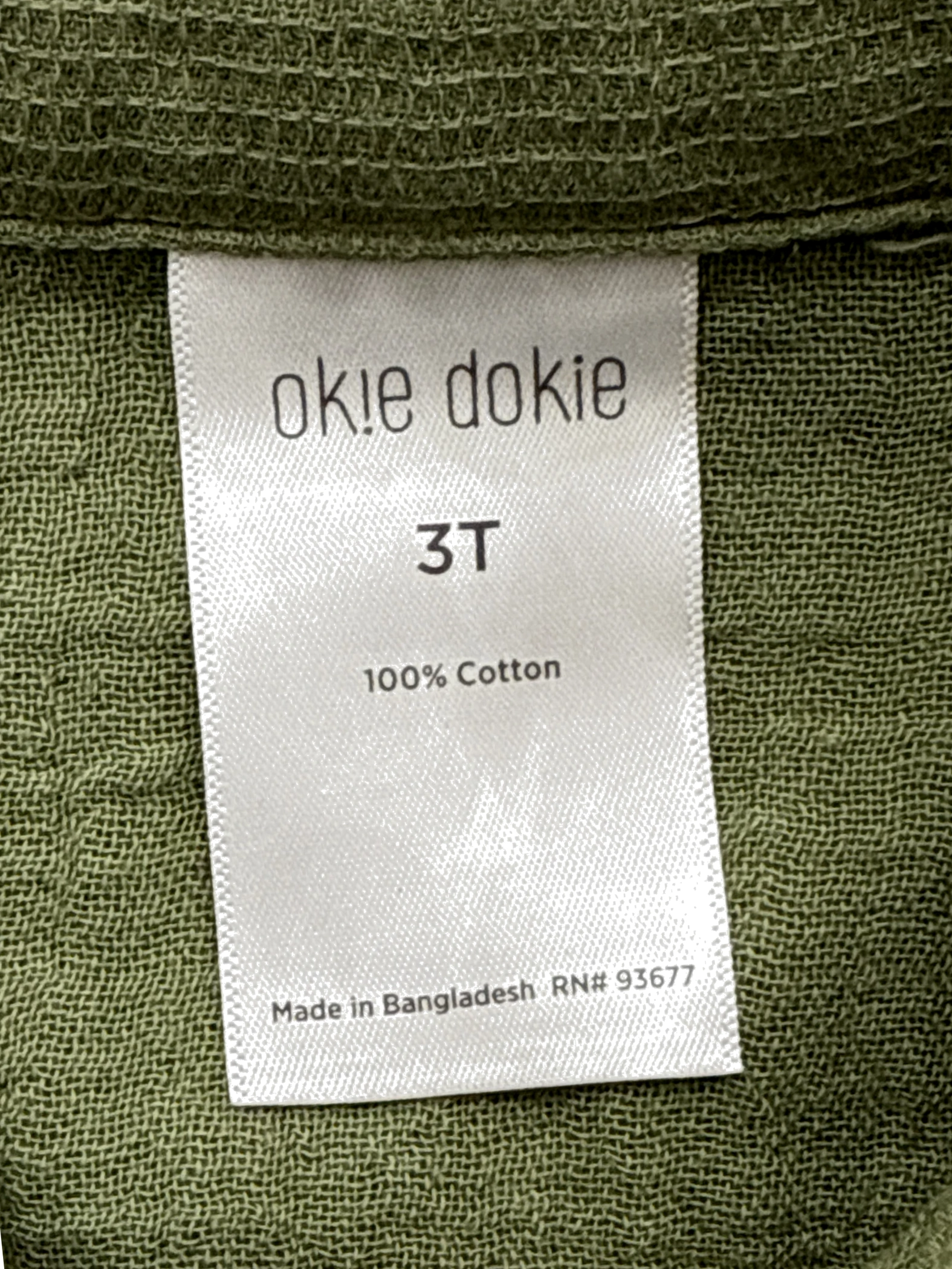 This gently used Okie Dokie dress shirt is perfect for your little boy! Made from 100% cotton, this long-sleeved shirt features a classic collar and button-down closure. It comes in a stylish green color and is perfect for various seasons. Your child can wear it in a stylish way.