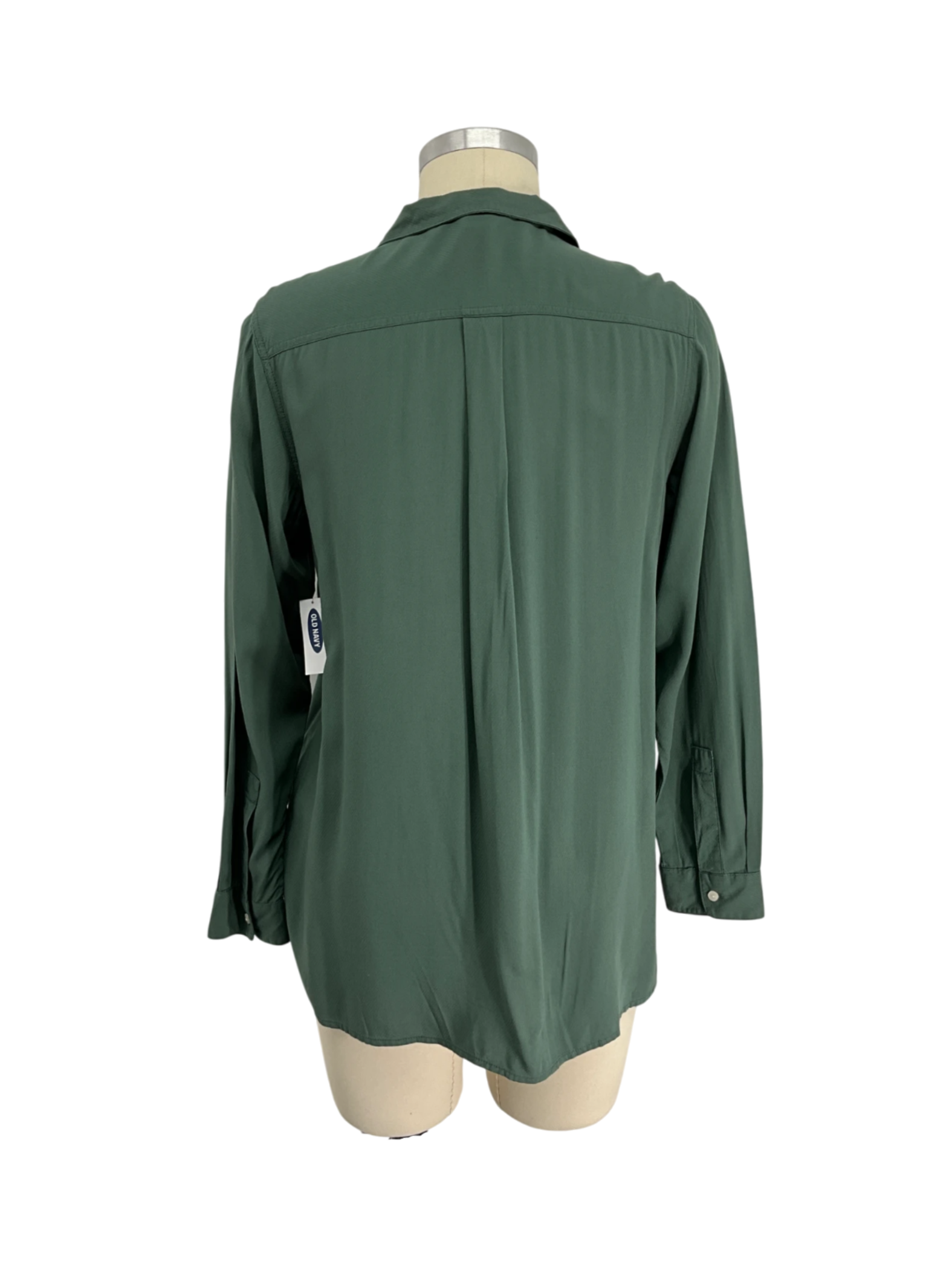 Long-sleeved women's shirt with collar, button closure, in green, size L, with front pockets, by Old Navy.
