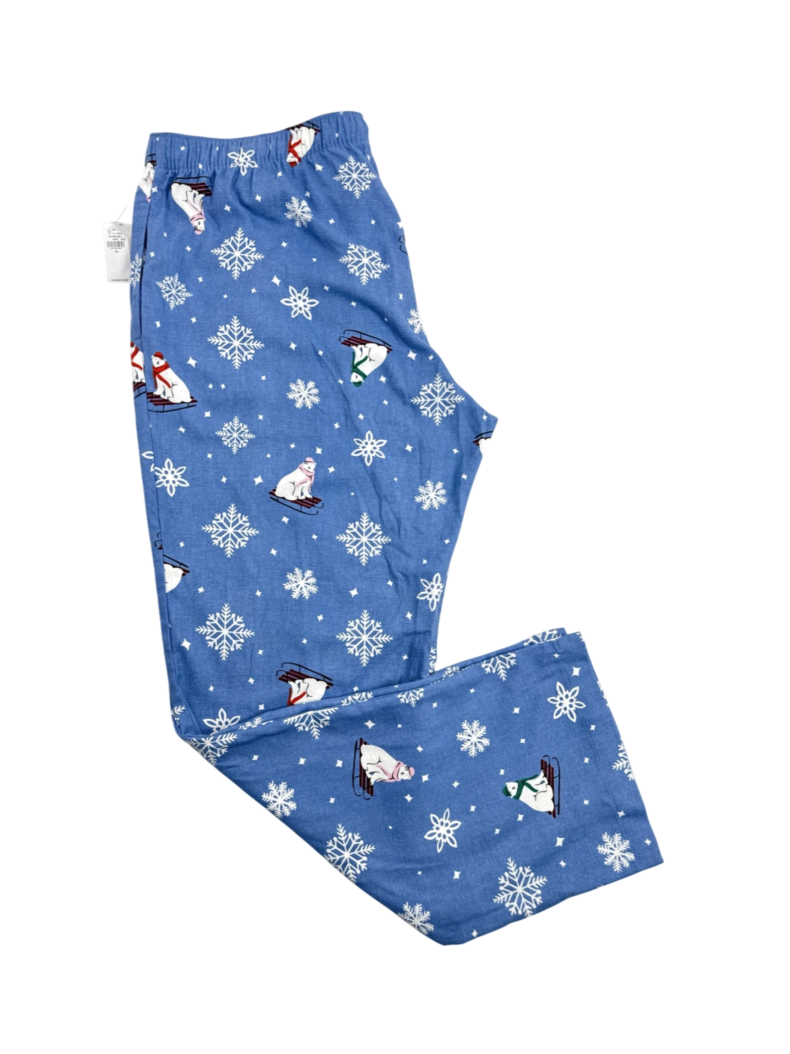 Cozy up this winter with these gently used Old Navy pajama pants! Featuring a festive blue print with adorable polar bear and snowflake designs, these XL pajama pants are perfect for a comfortable night's sleep or lounging around the house. Made from soft cotton, these pants offer both style and warmth. A fun addition to any sleepwear collection, ideal for the holiday season. These pants offer a relaxed fit and are a great gift.