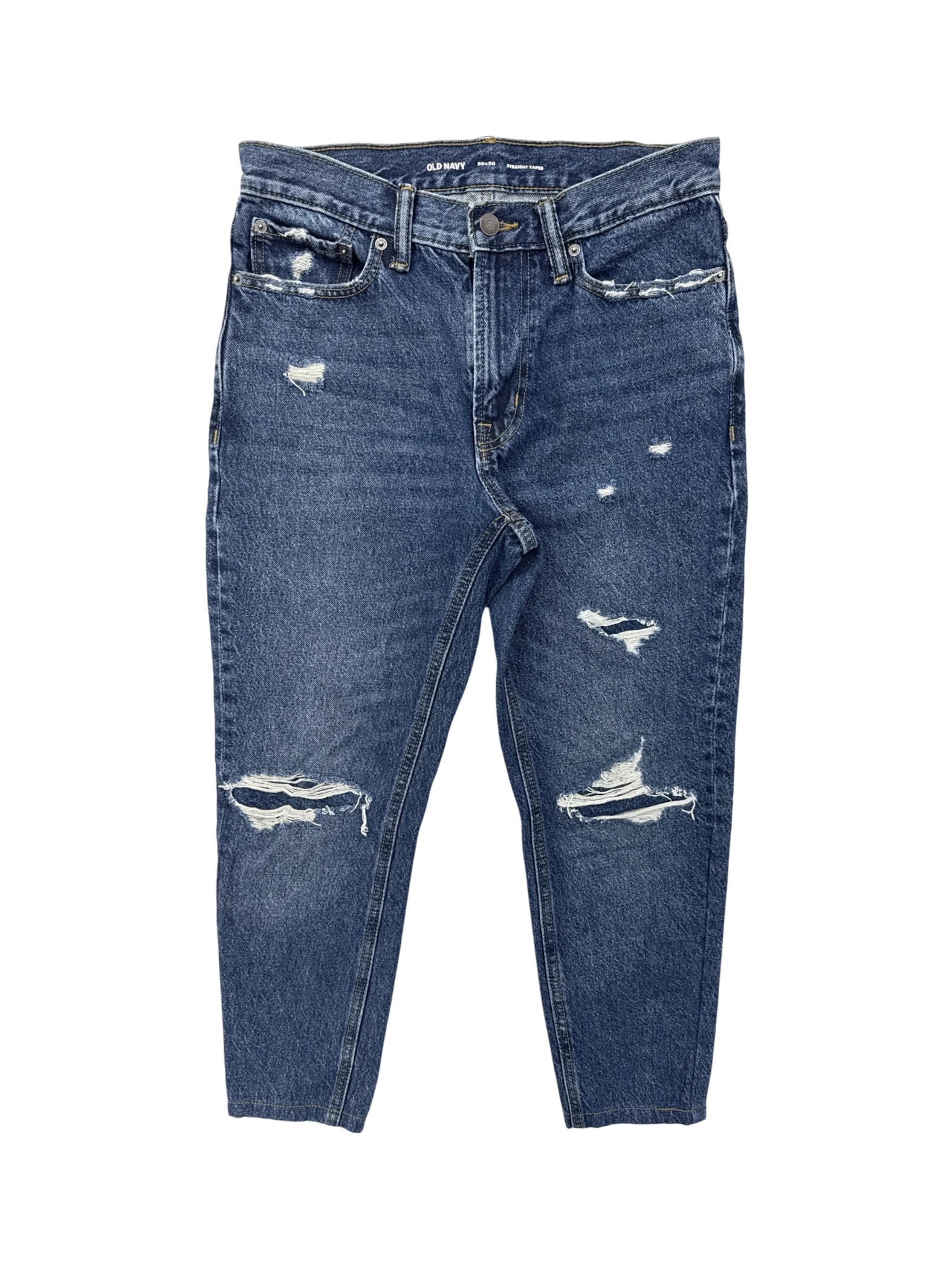 These pre-owned Old Navy men's jeans are a stylish and comfortable choice. Featuring a classic straight leg fit and trendy distressed detailing, they're perfect for everyday wear. Made from 100% cotton, these jeans offer both durability and comfort. The medium wash denim adds a versatile touch to your wardrobe, easily pairing with various outfits. A great addition for a fashionable and practical style. - These pre-owned Old Navy men's jeans are a stylish addition to any wardrobe. Featuring a classic straight leg cut and a comfortable fit, these jeans are perfect for everyday wear. The medium wash denim and distressed detailing add a touch of modern edge, while the durable cotton blend ensures long-lasting quality. These versatile jeans can be dressed up or down, making them a great choice for any occasion.