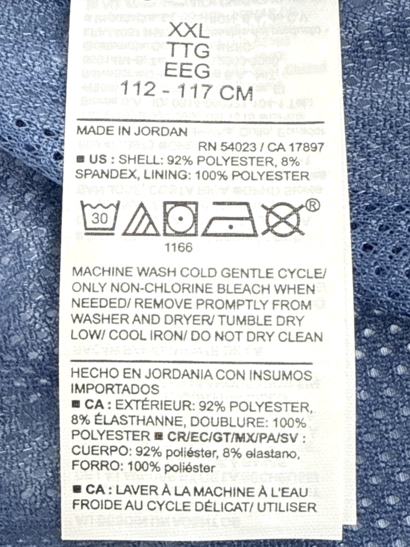 These pre-owned Old Navy swim trunks are perfect for a day at the beach or pool. Featuring a vibrant blue floral print, they're designed for comfort and style. The shorts are a size XXL and are made of a blend of polyester and spandex, making them lightweight and quick-drying. With a classic Bermuda shorts cut, these swim trunks are ideal for any summer adventure. They are a great find for anyone looking for durable and fashionable swimwear.