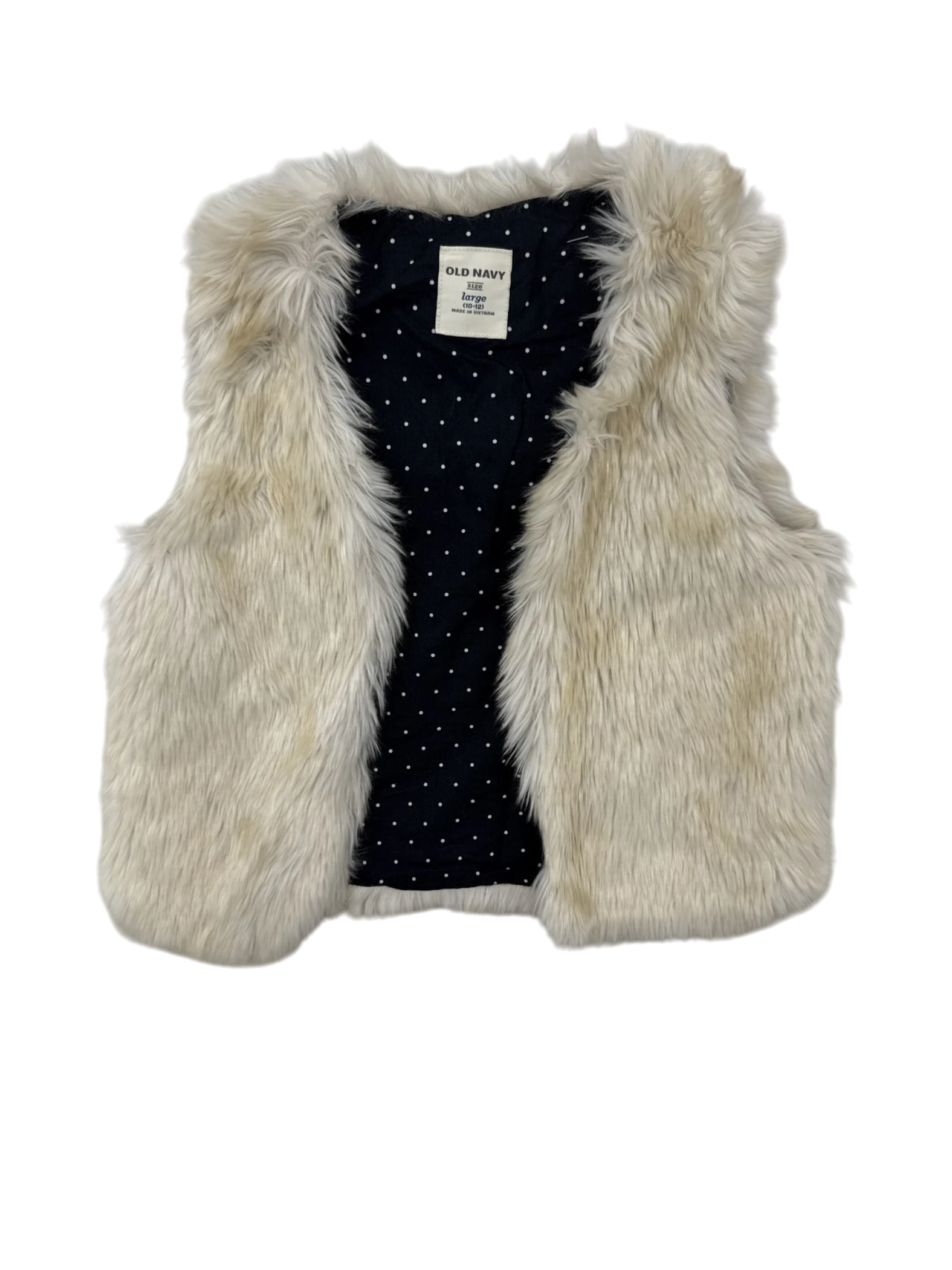 This adorable Old Navy vest for girls is perfect for adding a touch of cozy flair to any outfit. The ivory faux fur exterior and polka dot lining create a stylish look. Made from a blend of acrylic, polyester, and cotton, this vest is soft and warm. It's a great layering piece for fall and winter. This vest is in excellent condition and is ready to be a cherished addition to a young girl's wardrobe.