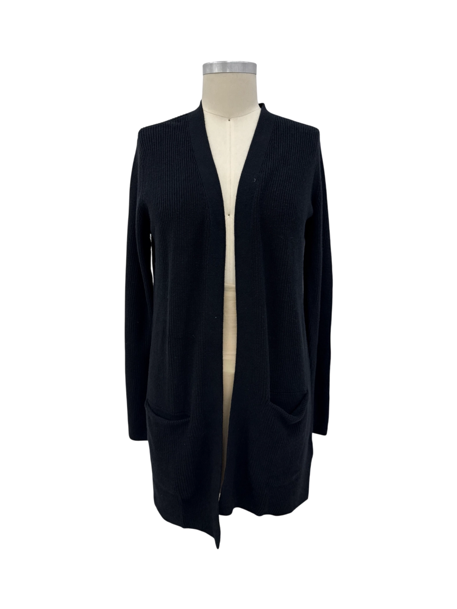 This pre-owned Old Navy cardigan sweater is the perfect addition to any wardrobe. Crafted from a comfortable blend of cotton, polyester, rayon, viscose, and nylon, this sweater offers a flattering silhouette and versatile style. Featuring a classic V-neck and a timeless solid black color, it can be dressed up or down for any occasion. Perfect for layering during cooler seasons, this sweater provides both comfort and style. Ideal for everyday wear, this is a great item to add to your collection.