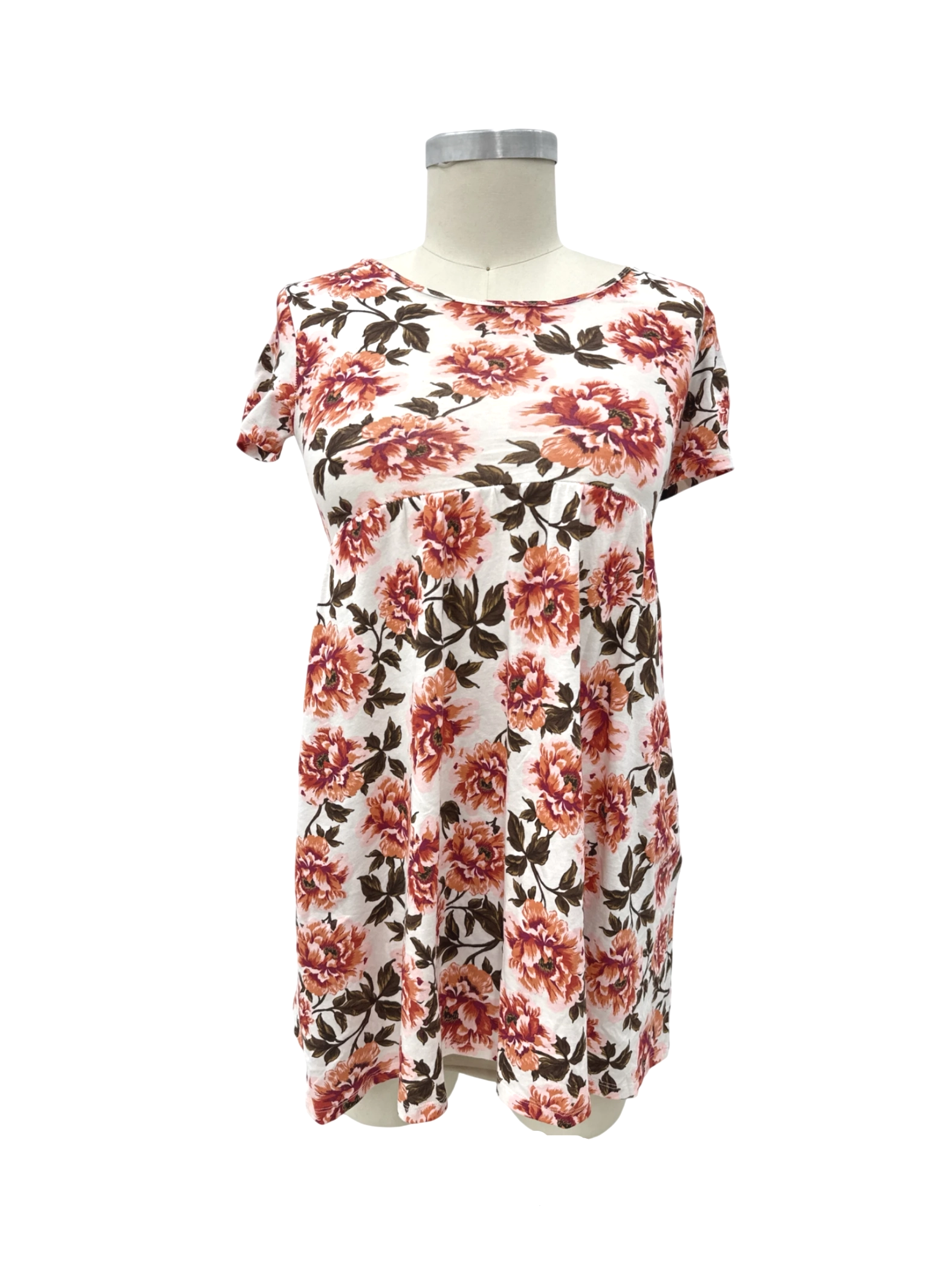 This adorable floral print dress from Old Navy is perfect for a casual summer day. It features a flattering A-line silhouette, short sleeves, and a round neckline. The dress is made from soft, breathable cotton and is designed with a mini skirt length. Ideal for everyday wear, this dress is sure to become a go-to piece in your wardrobe. Get yours today!