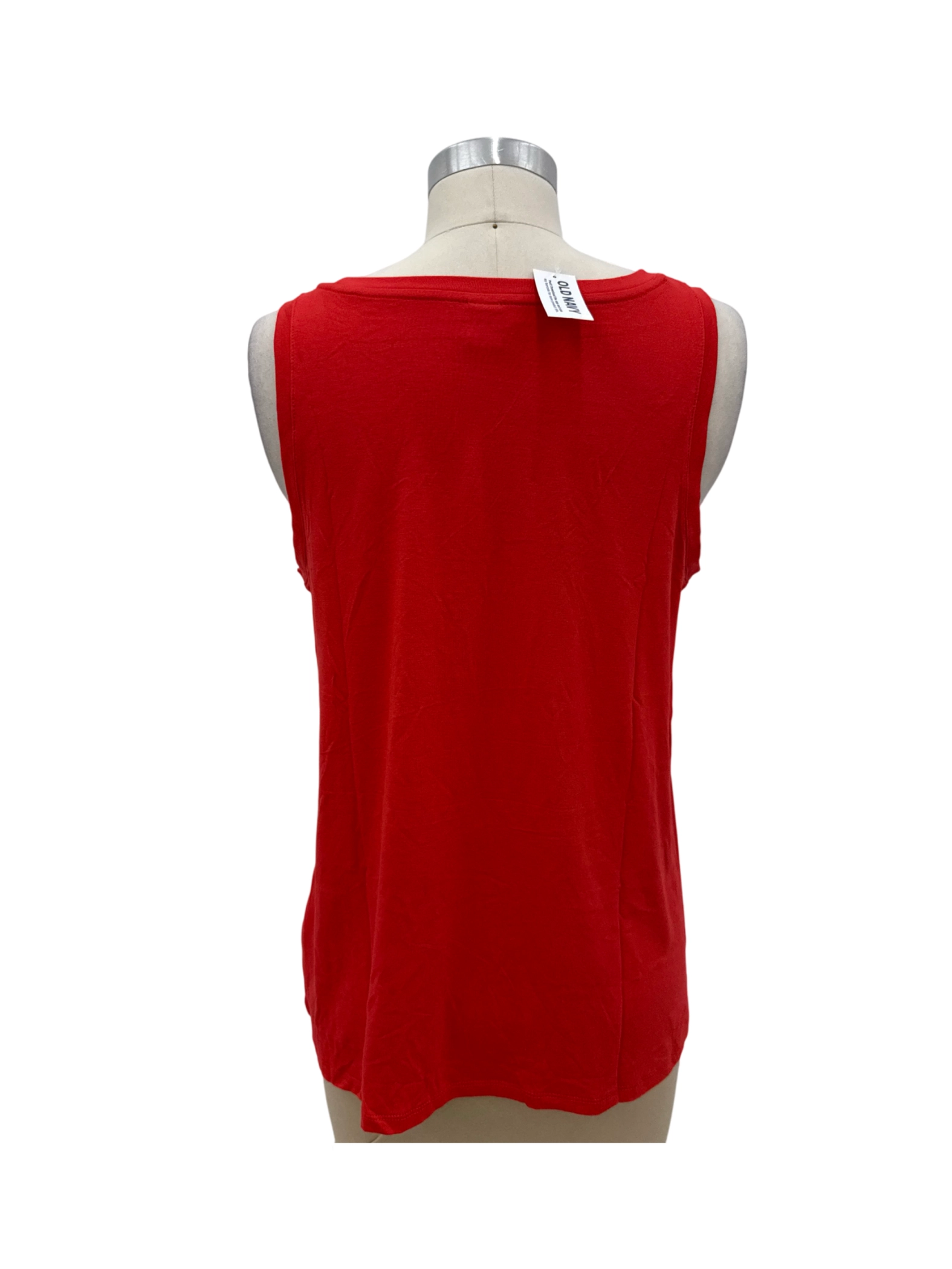 Elevate your casual wardrobe with this stylish pre-owned Old Navy tank top. This vibrant red tank top is perfect for summer days or layering. Crafted with a soft blend of rayon and spandex, it offers a comfortable and flattering fit. Features a classic scoop neckline and sleeveless design. Great for everyday wear or a night out. This tank top is a versatile addition to any closet.