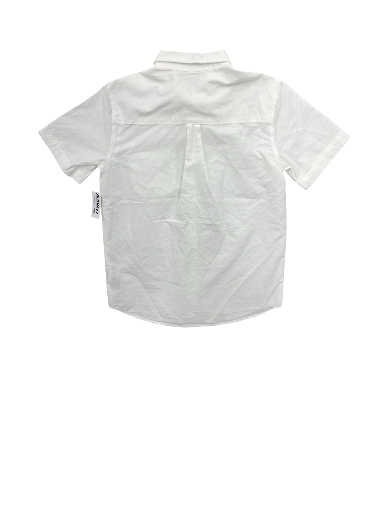 This gently used Old Navy boy's dress shirt is perfect for any occasion. The classic white color and button-down style make it easy to dress up or down. Crafted from 100% cotton, it offers comfort and breathability. Size L (10-12). This shirt is in great condition, ready for its next adventure. A versatile addition to any young man's wardrobe. - This pre-owned Old Navy button-down dress shirt is the perfect addition to any young boy's wardrobe. Made from 100% cotton, it's comfortable and breathable, ideal for warmer weather. Featuring a classic white color, short sleeves, and a traditional collar, this shirt offers a timeless style. It is perfect for both casual and semi-formal occasions, making it a versatile piece. Give your boy a polished look with this gently used and affordable Old Navy shirt.