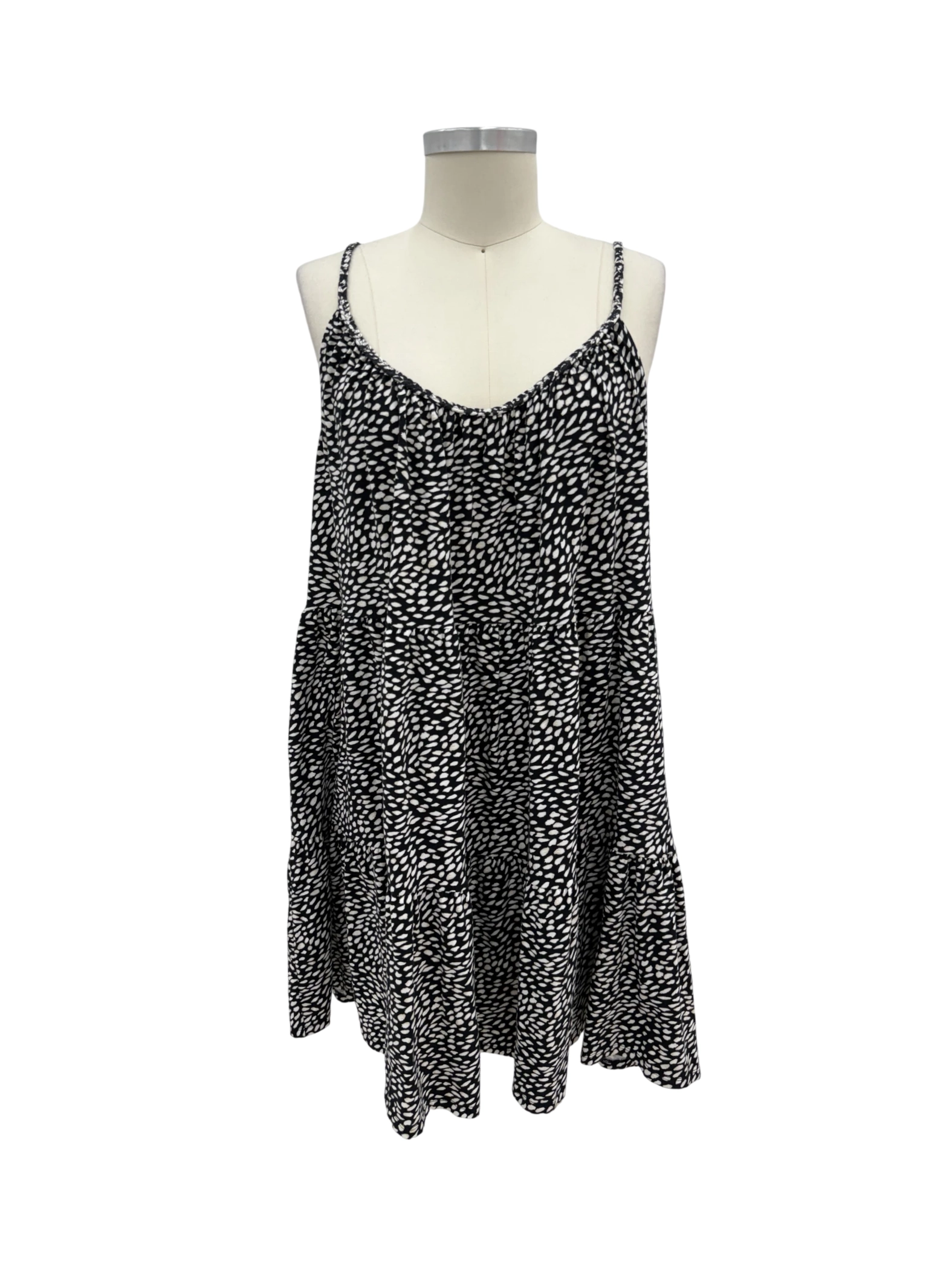 This used Old Navy dress is a perfect summer or spring essential. It features a flattering A-line silhouette, sleeveless design, and a stylish black and white dot pattern. Made from a comfortable blend of cotton and spandex, this dress is easy to care for and wear. Ideal for casual outings, it offers a chic and effortless style. This dress is a great addition to your wardrobe.