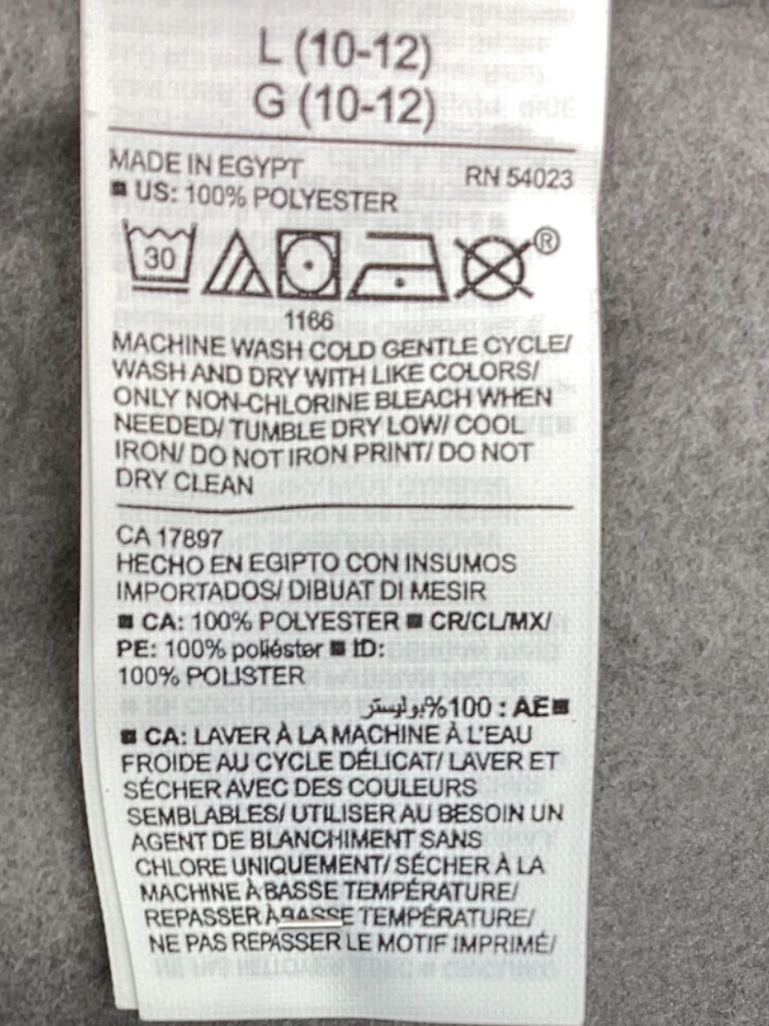 Boys' gray sweatpants with front pockets, size Large (10-12).