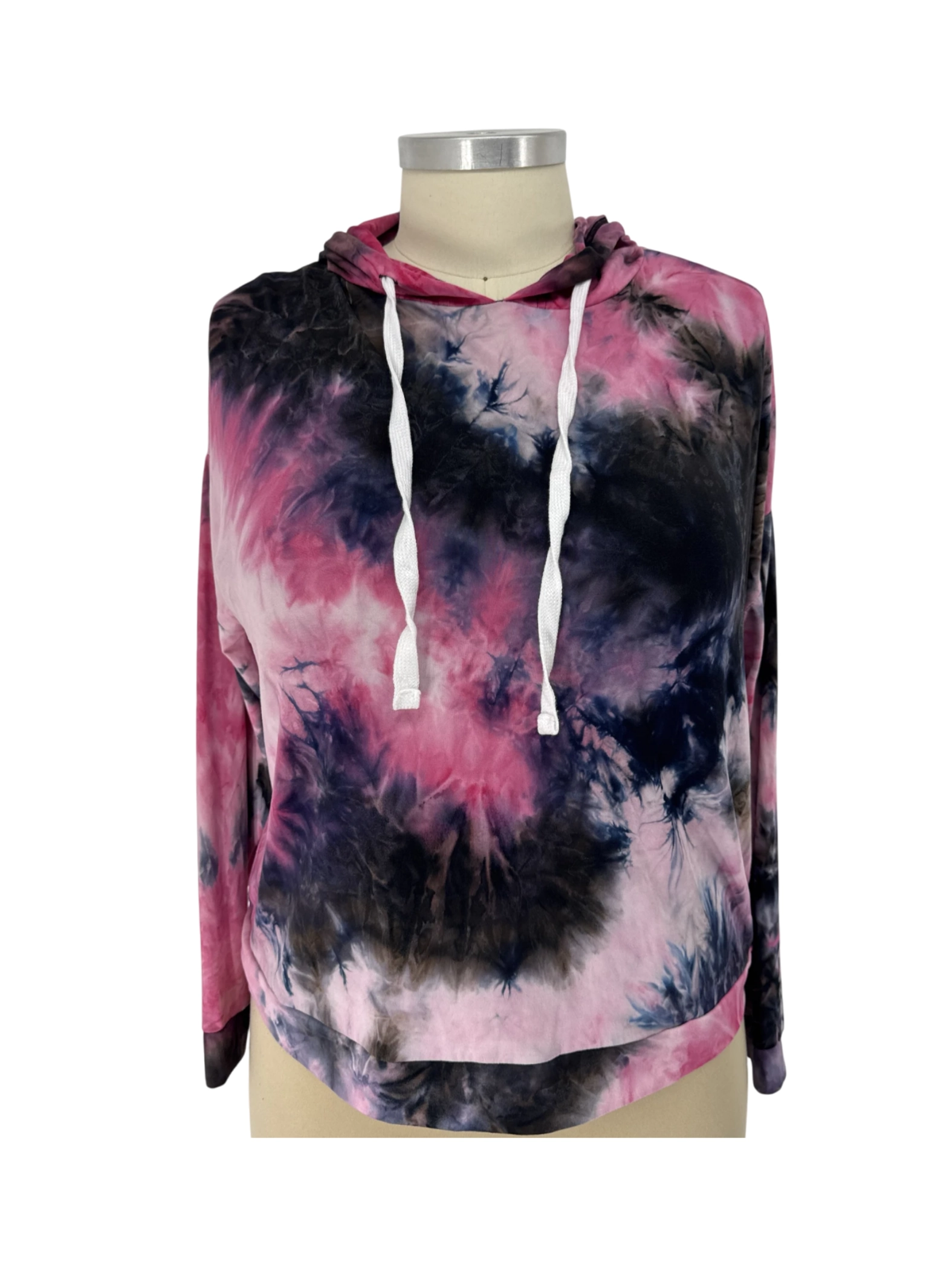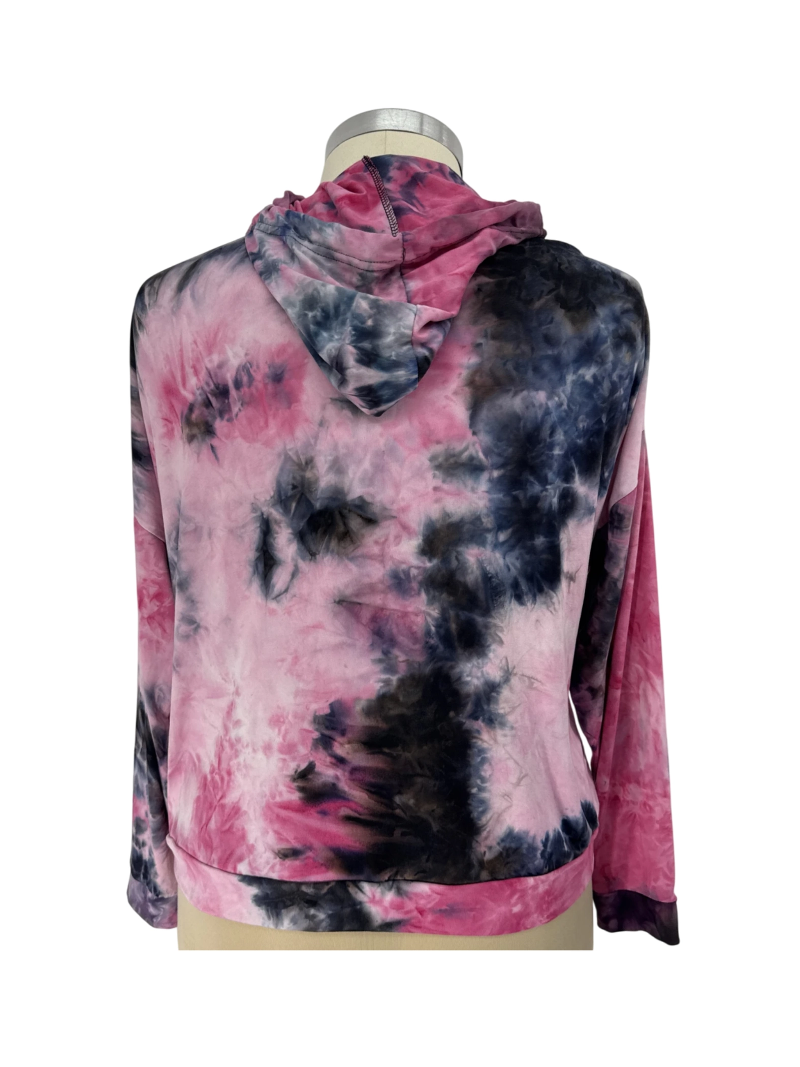 This pre-owned Orange Kiss hoodie is a vibrant addition to any wardrobe. Featuring a striking pink and navy blue tie-dye pattern, this casual sweater pullover is perfect for layering. Made from a comfortable blend of polyester and spandex, it offers a relaxed fit. The hood adds extra warmth and style, while the slip-on design ensures easy wear. Ideal for spring, summer and fall, this hoodie is a great find for those seeking a trendy and comfortable piece.