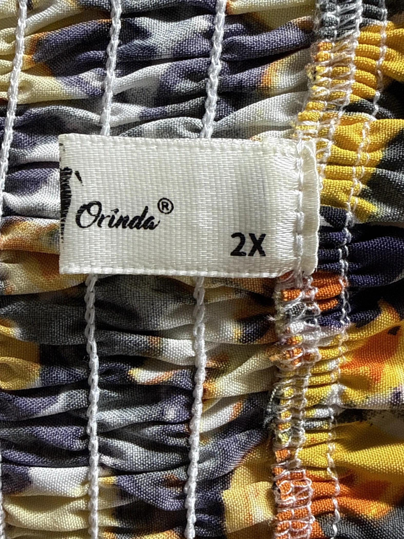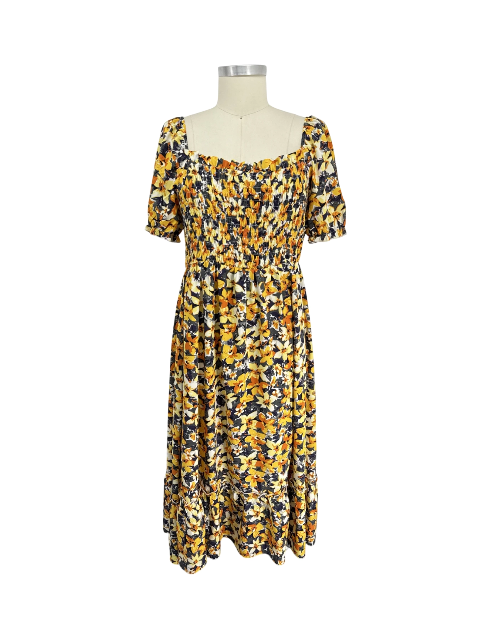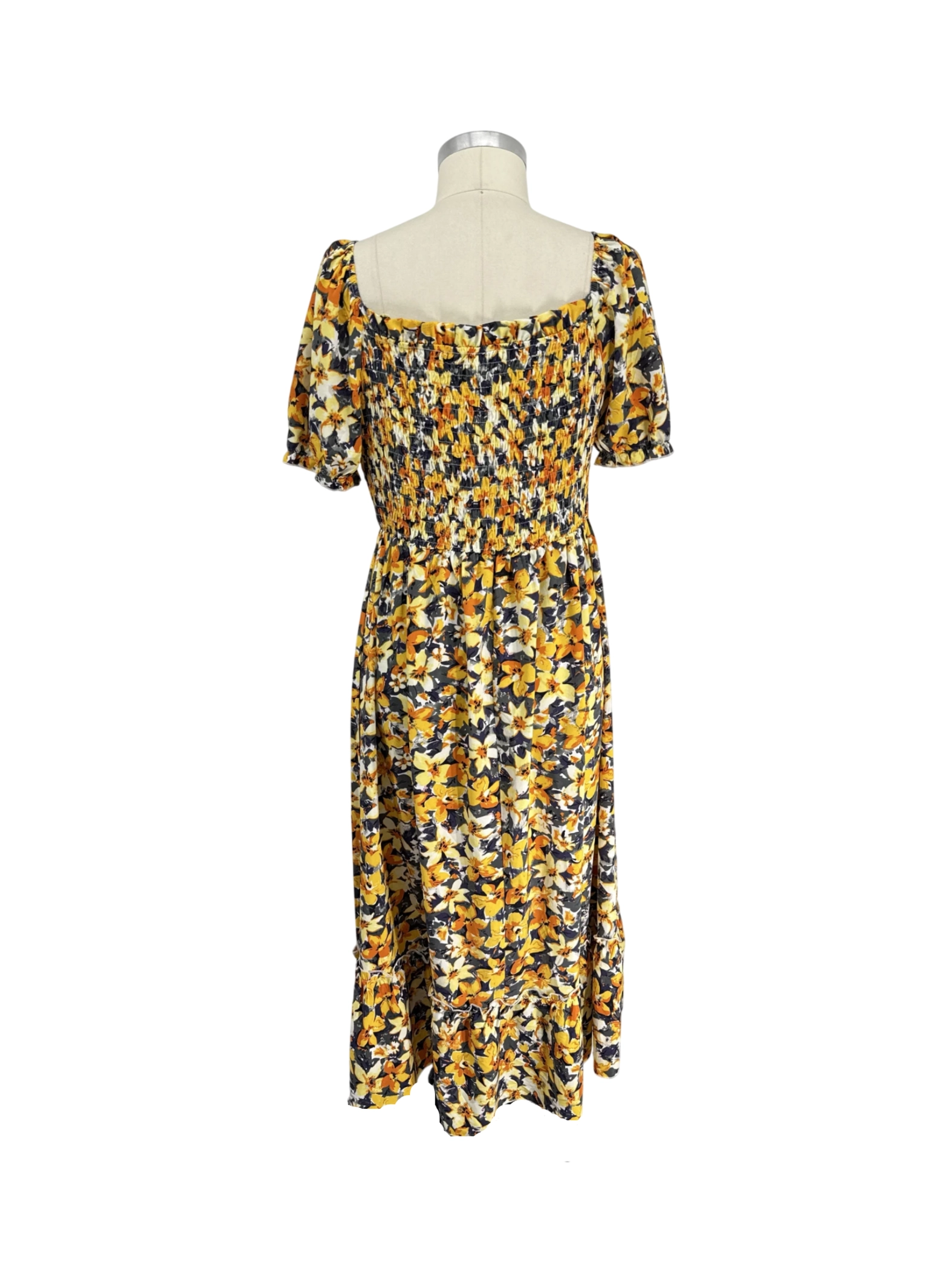 This beautiful pre-owned Orinda maxi dress features a vibrant floral pattern, perfect for a sunny day. The dress is designed with a flattering A-line silhouette, a square neckline, and short sleeves. Made from 100% polyester, it offers both comfort and durability. Ideal for casual outings, this dress brings a touch of elegance with its flowing design and lively print.