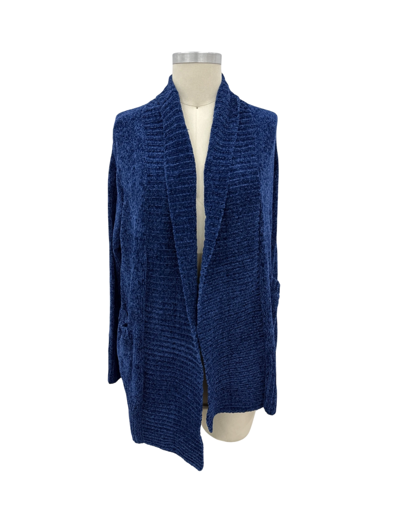 Cozy up in this pre-owned ORVIS cardigan sweater. This sweater is perfect for fall and winter with its soft, plush texture and long sleeves. The open front design adds to its relaxed fit, while the classic color allows for versatile styling. Made from 100% polyester, it offers both comfort and easy care. A stylish and comfortable addition to any wardrobe.