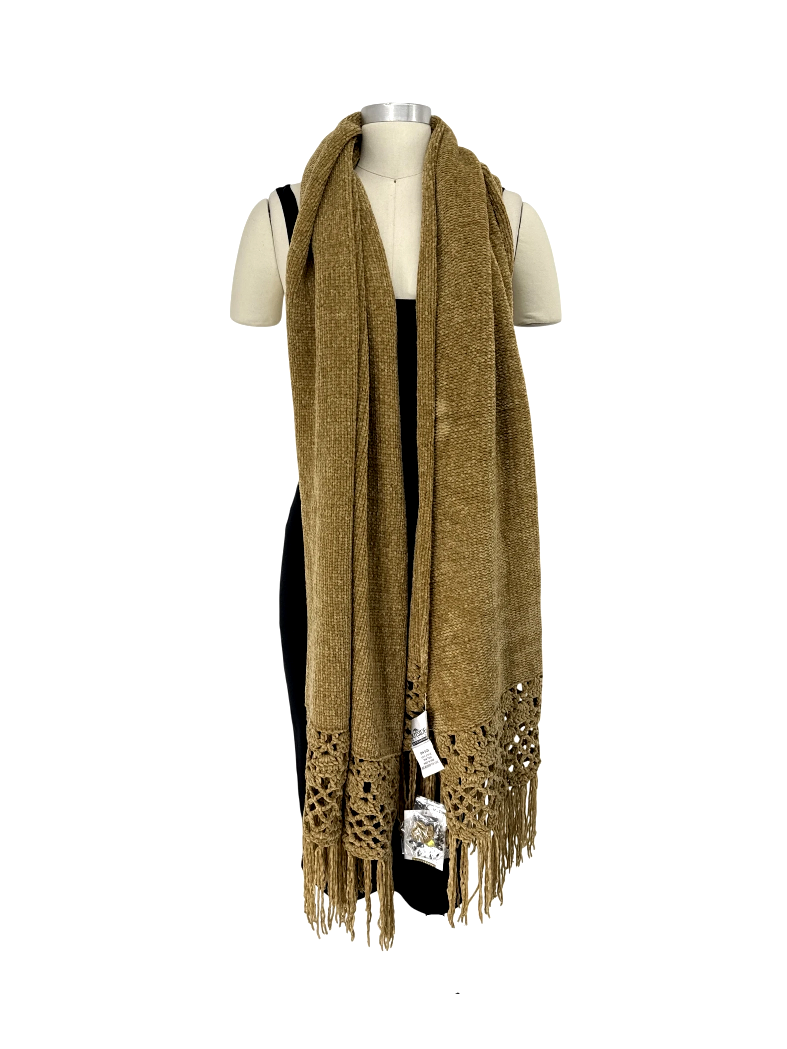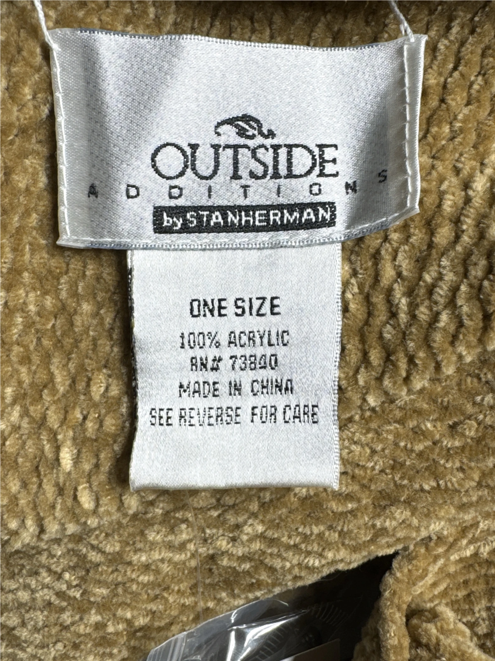 This cozy, pre-owned OUTSIDE ADDITIONS by STANHERMAN scarf is the perfect accessory for cooler weather. Made from soft acrylic, it features a warm brown hue and a stylish design with fringe detailing. The One Size fit ensures a comfortable wear for everyone, adding a touch of elegance to any outfit. Ideal for fall or winter, this scarf is a must-have addition to your wardrobe.