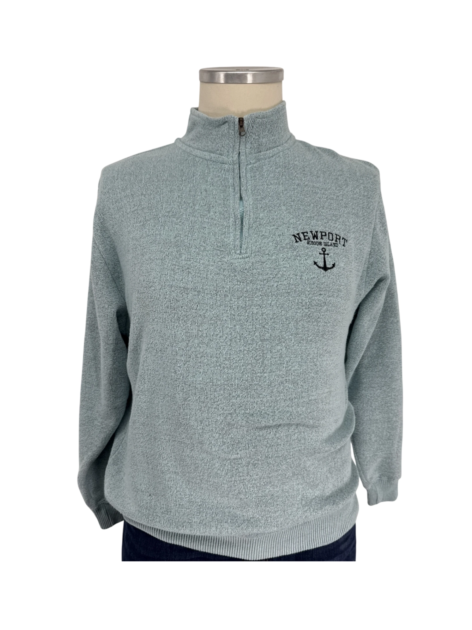 This pre-owned men's Pacific & Co sweater is a stylish addition to your wardrobe. It features a zip-up front, long sleeves, and a classic mock neck design. Made from a comfortable cotton and polyester blend, this sweater offers both warmth and durability. The Newport Rhode Island design gives it a touch of coastal charm. Perfect for cooler weather, it's an easy-to-wear piece that can be dressed up or down. This sweater is a great value. It is perfect for fall and winter.