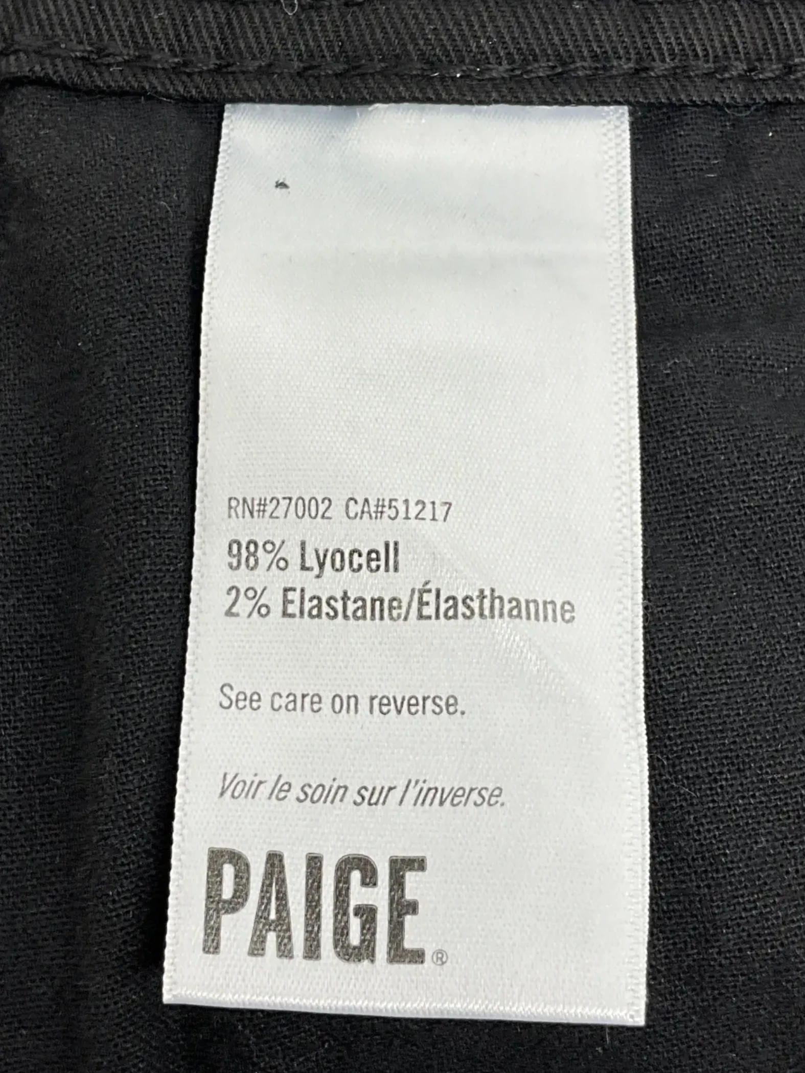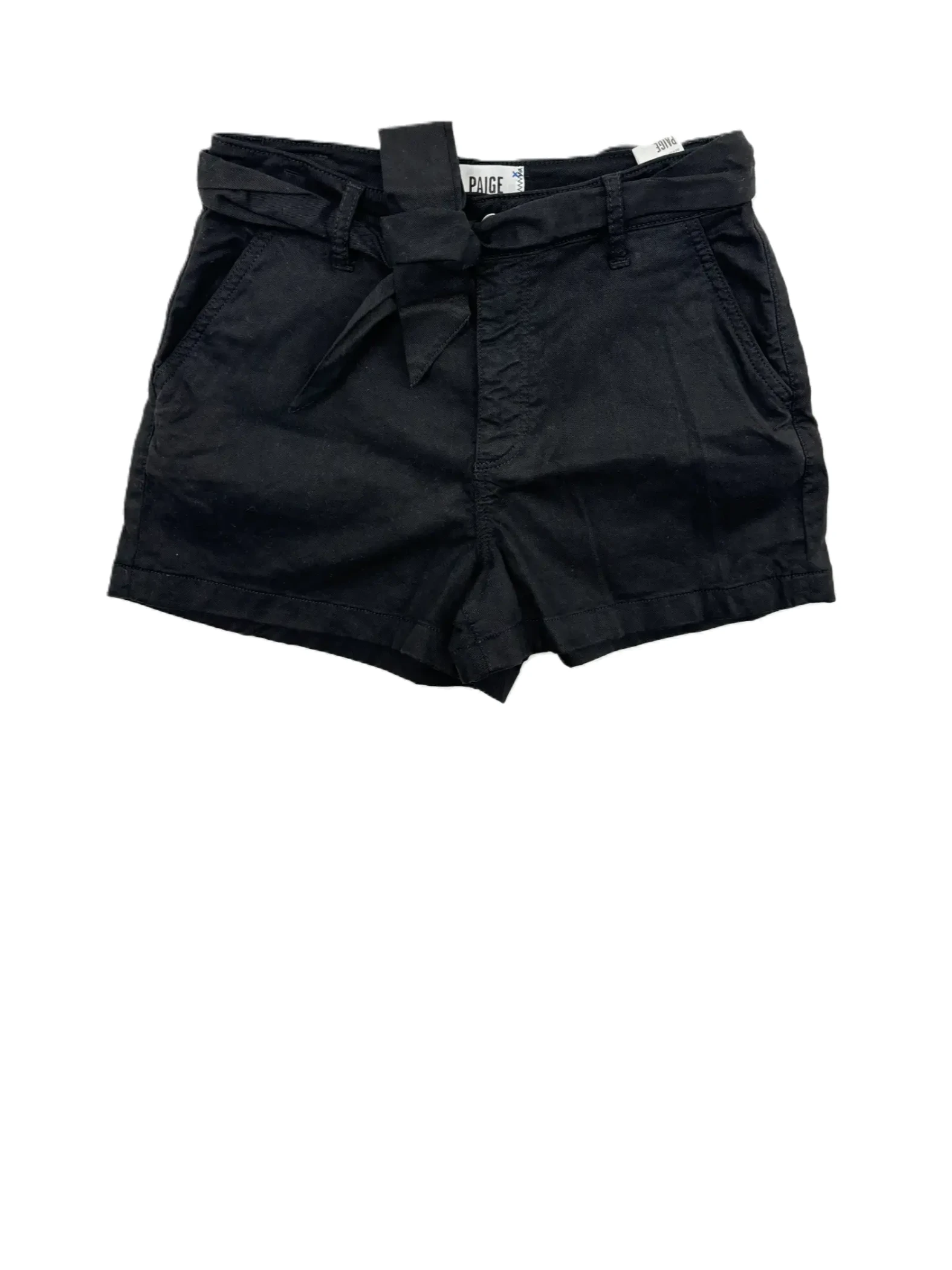 The black women's shorts with a high waist and a tie belt, named Paige Anessa Shorts, are in excellent condition and are made from biodegradable Lyocell.