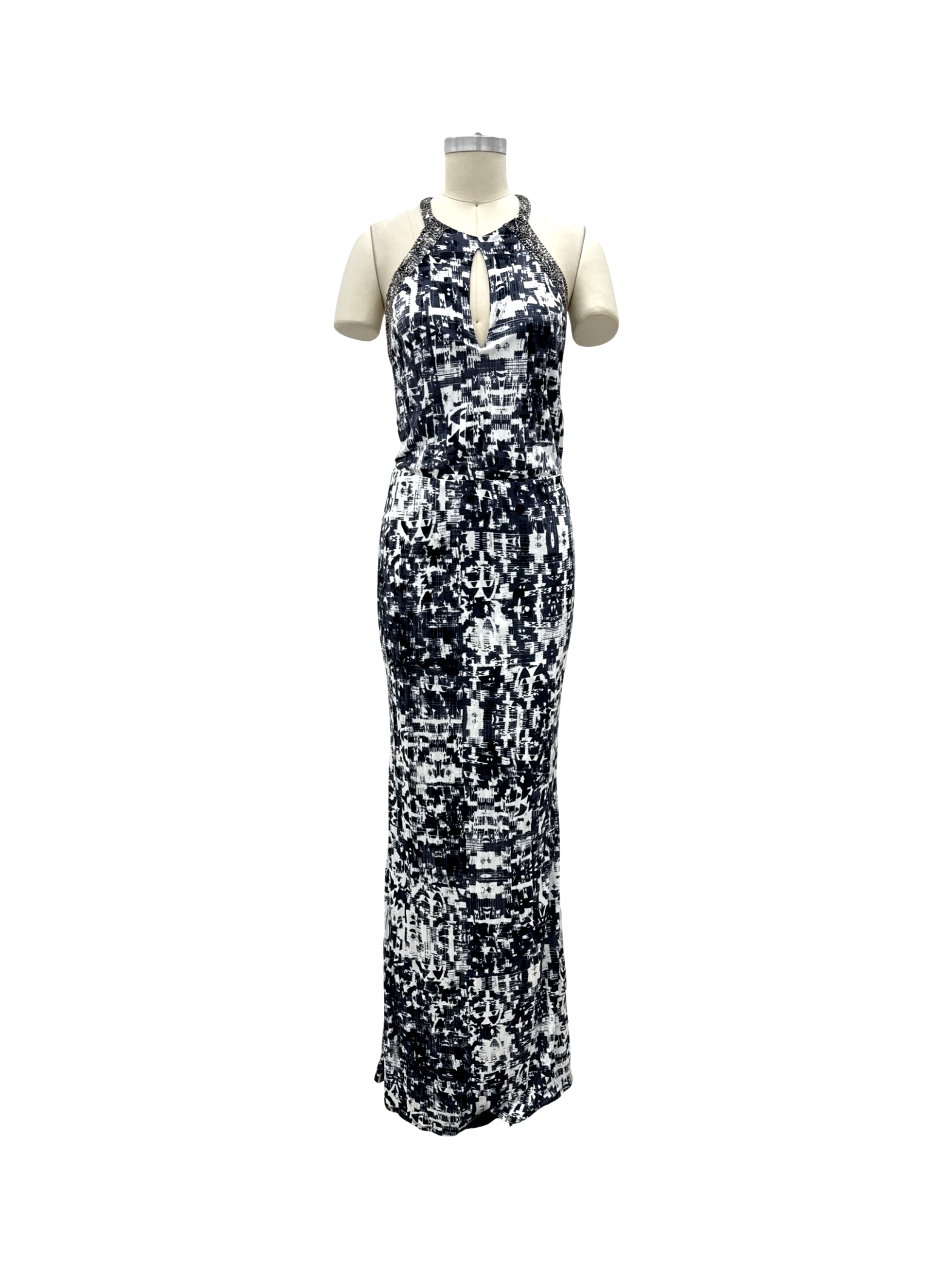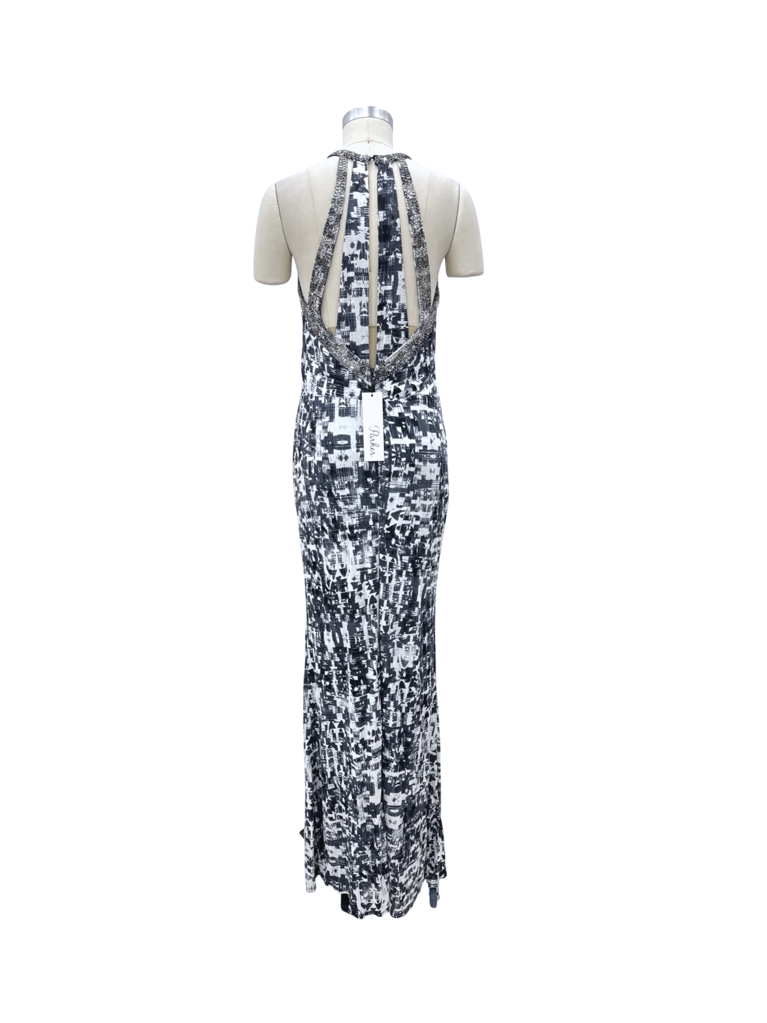 This stunning Parker maxi dress is the perfect statement piece for any special occasion. The dress features a flattering halter neckline and a sheath silhouette, creating a sleek and elegant look. The geometric black and white print adds a modern touch, while the lightweight fabric ensures comfort. Made with high-quality materials, this dress is ideal for cocktail parties, evenings out, or any event where you want to make a lasting impression.