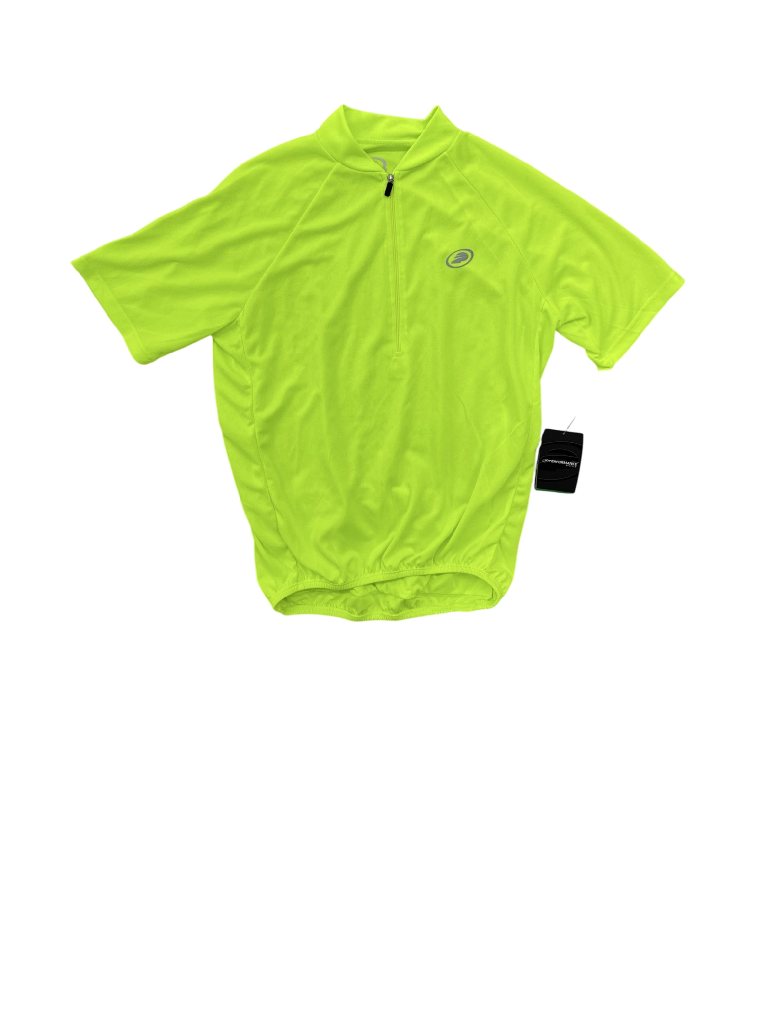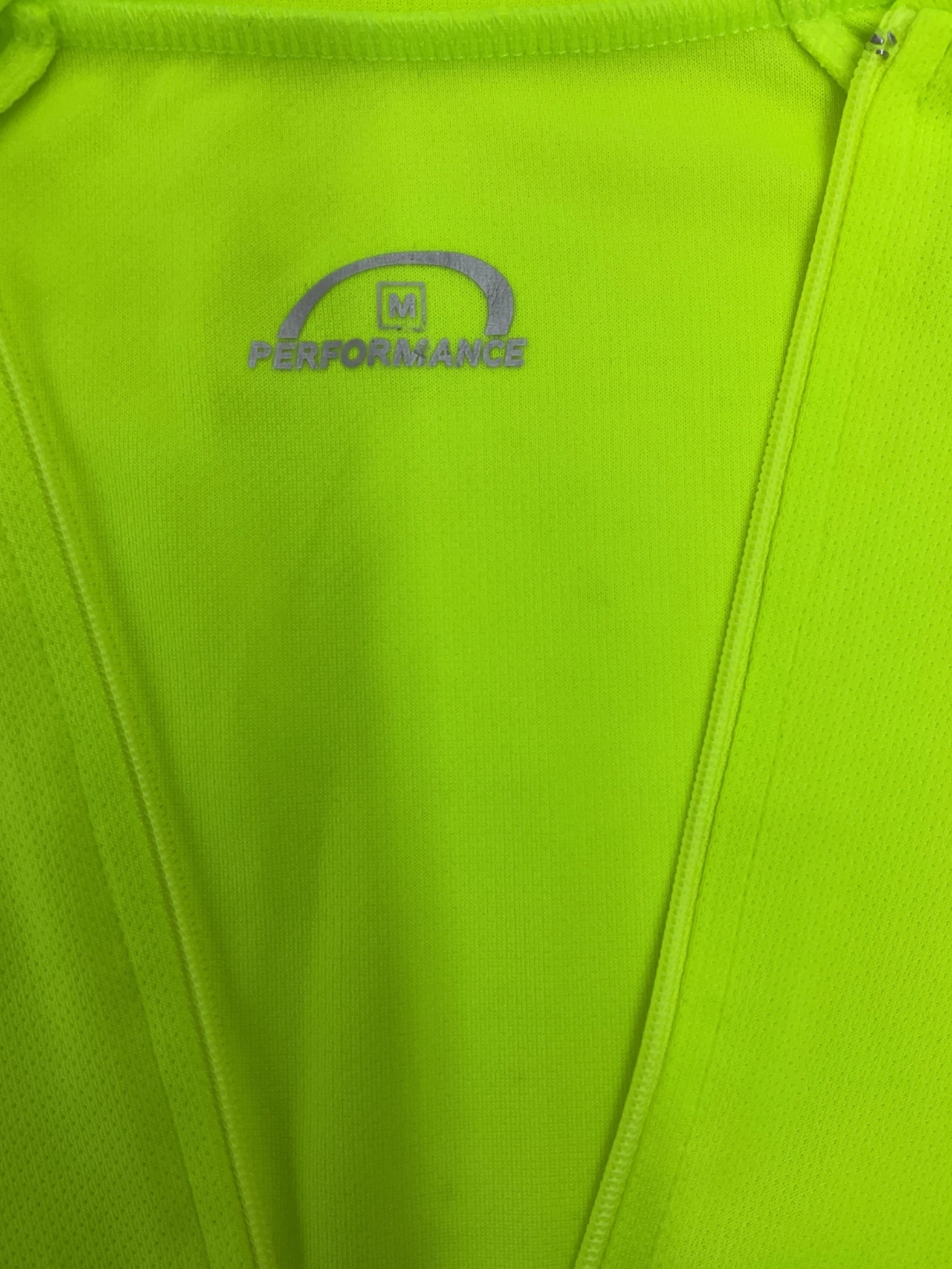 This vibrant PERFORMANCE cycling jersey is a great addition to any cyclist's wardrobe. Made from 100% polyester, this neon yellow short-sleeved top is perfect for warm weather rides, ensuring comfort and breathability. Featuring a zip-up front and a stylish design, this pre-owned jersey offers both functionality and flair. It's machine washable for easy care, making it an excellent choice for regular use. A must-have for any active man seeking quality activewear at an affordable price.